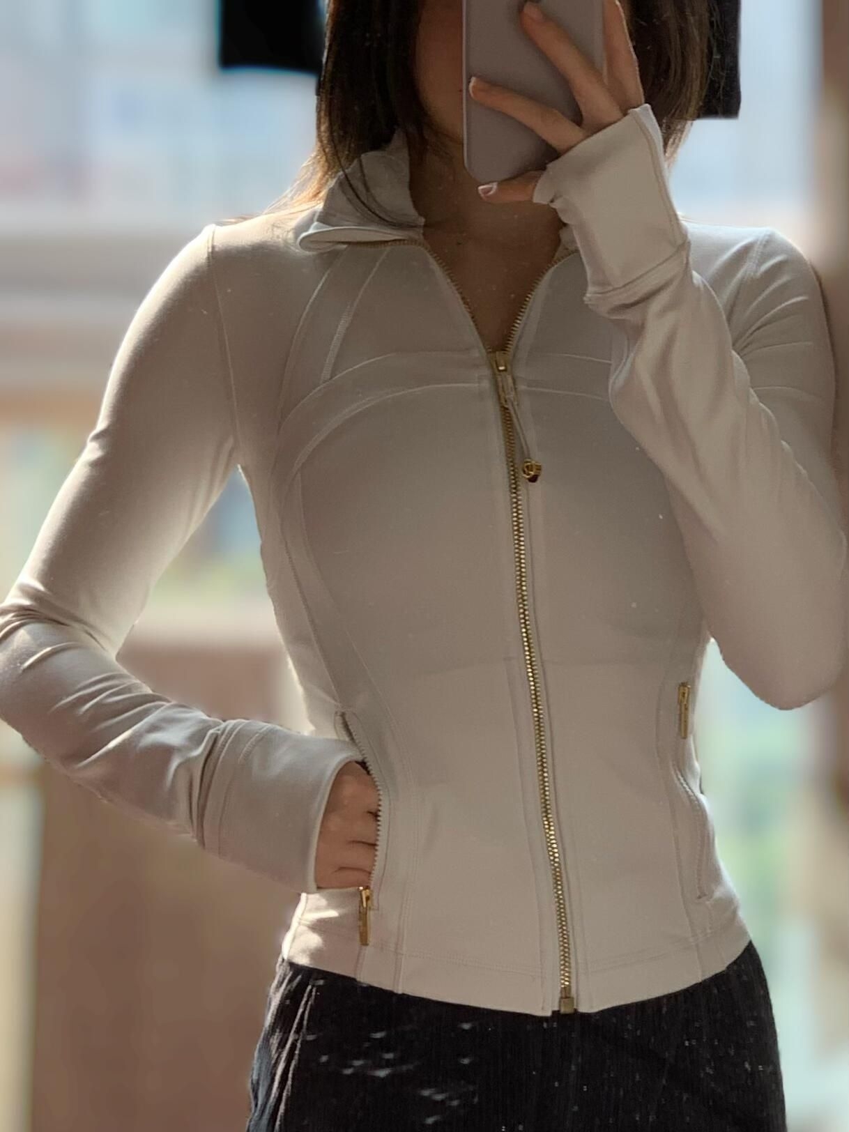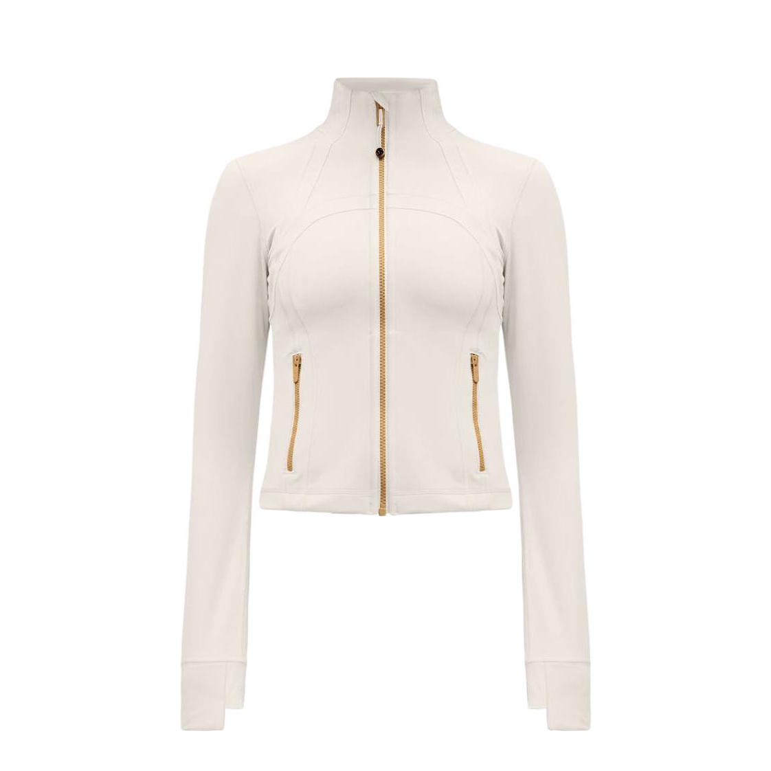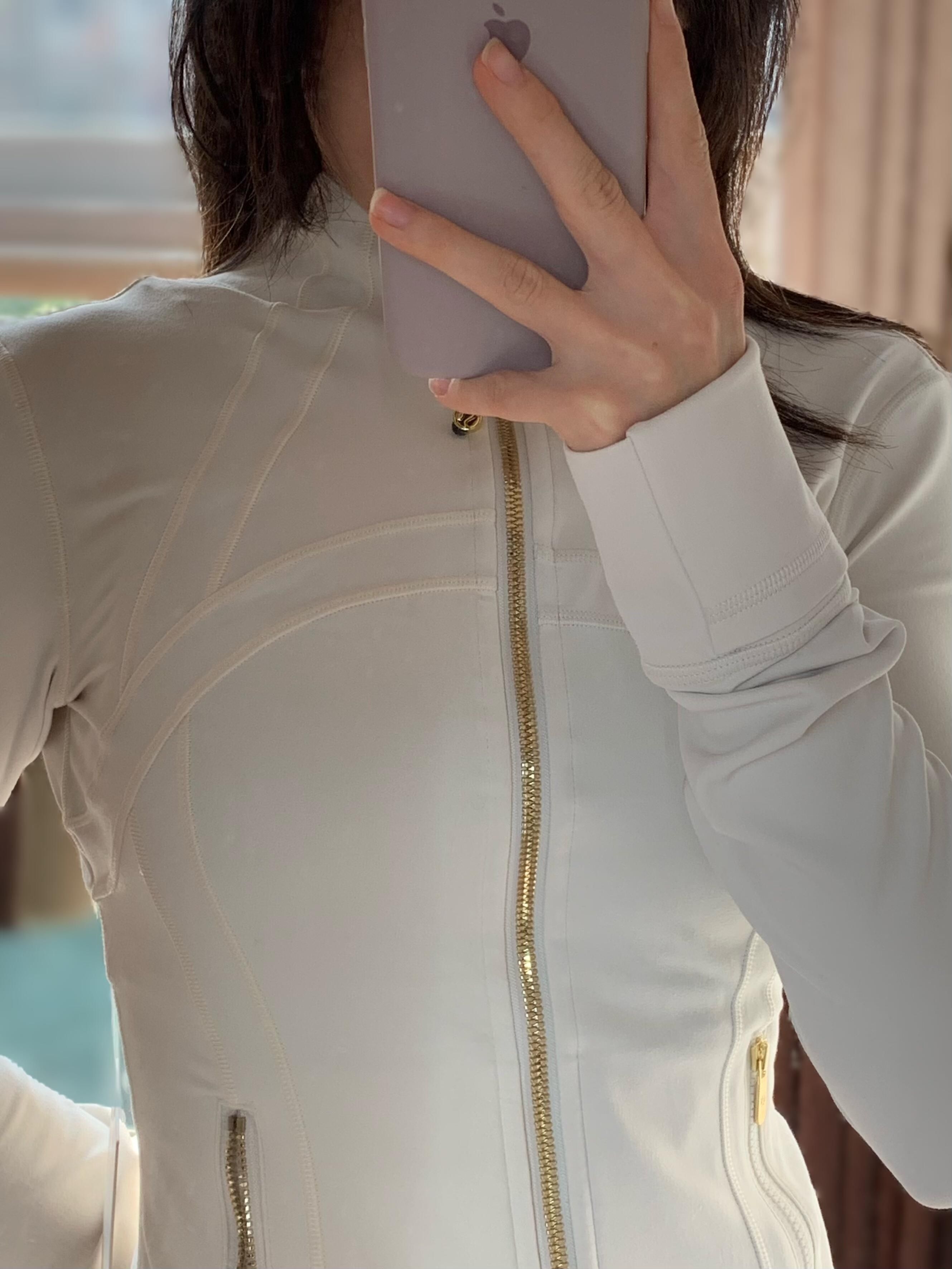 ✨Lululemon Define系列骨白金标短款外套,采用Nulu面料,柔软高弹,修身显瘦,运动日常都能穿!金色拉链+骨白冷灰调,简约高级感满满💫。短款设计优化身材比例,搭配高腰裤超显腿长!面料透气舒适,支持机洗,健身、瑜伽、通勤都OK,是功能与时尚兼具的百搭单品~
