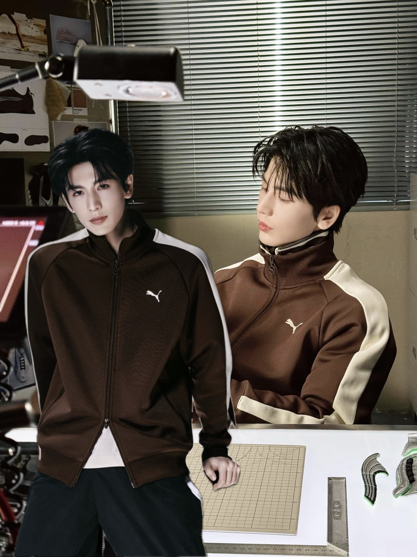 被张凌赫这组大片狠狠种草! ✅ 上衣:T7经典复古立领夹克 • 配色:深棕主色+米白插肩袖,复古感拉满,不挑肤色,黄皮也能轻松驾驭 • 面料:高弹针织面料,柔软亲肤,同时挺括有型,不会软塌塌贴在身上 • 设计:经典T7立领+侧边拉链口袋,细节感拉满,日常放手机、钥匙超方便 • 版型:合身不紧绷,对身材包容度高,微胖男生也能轻松驾驭 ✅ 裤子:复古阔腿运动卫裤 • 版型:阔腿直筒设计,完...