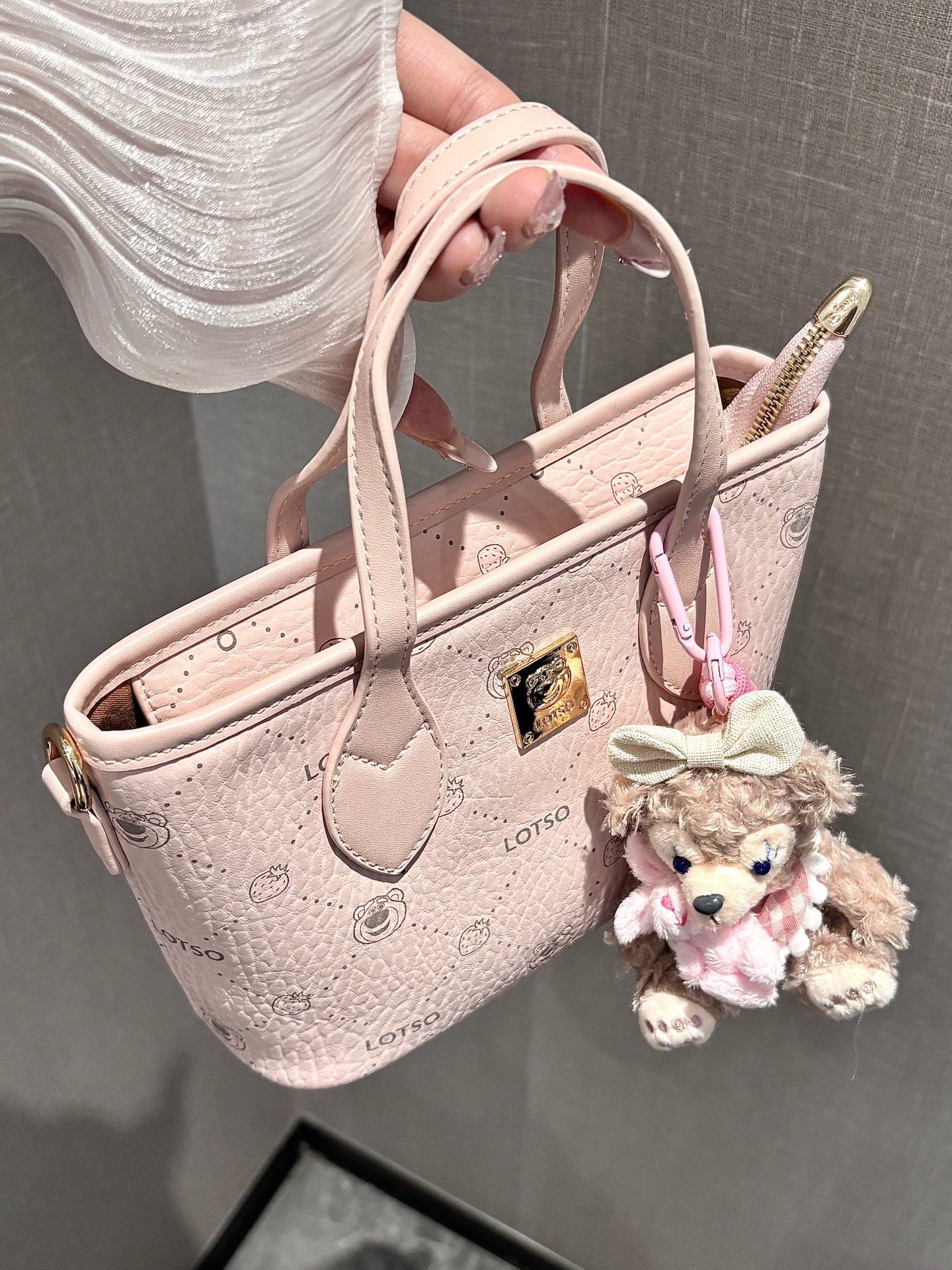 除了手提 还可以腋下背哟 别看小小一只 还挺能成! 图4手机钱包气垫bb 耳机都能放下 容量着实惊呆我了 乖乖 完全不废啊!好用好用 老花元素也很经典 没有不入的理由呀 配上豹纹小kitty 可爱鼠了