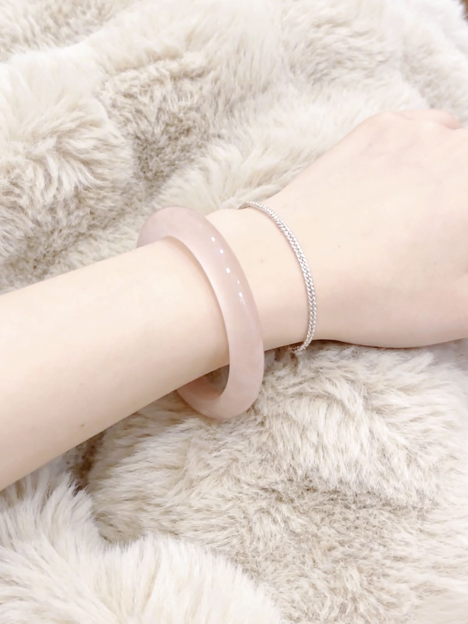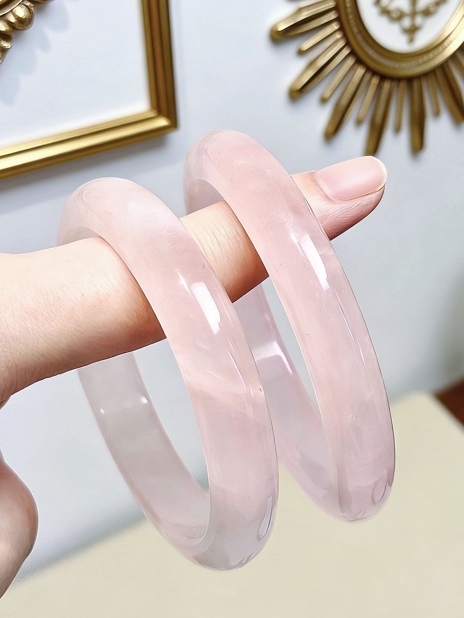 谁懂啊!这只粉水晶镯真的把温柔焊在手腕上了🥹 周大生这只西柚桃花粉水晶镯,颜色是那种清透的嫩粉色,像把春日的桃花酿揉进了水晶里,通透又显白,黄皮姐妹戴也完全不挑皮! • ✨ 质感拉满:圆条镯型很衬手型,摸起来润润的,阳光下还能看到细细的冰裂纹,自带温柔滤镜,走路的时候轻轻晃动手腕,波光粼粼的超灵动~ • 💖 寓意超甜:粉水晶招桃花、旺人缘,日常通勤戴不夸张,约会戴又甜又温柔,配汉服、连衣裙、通...