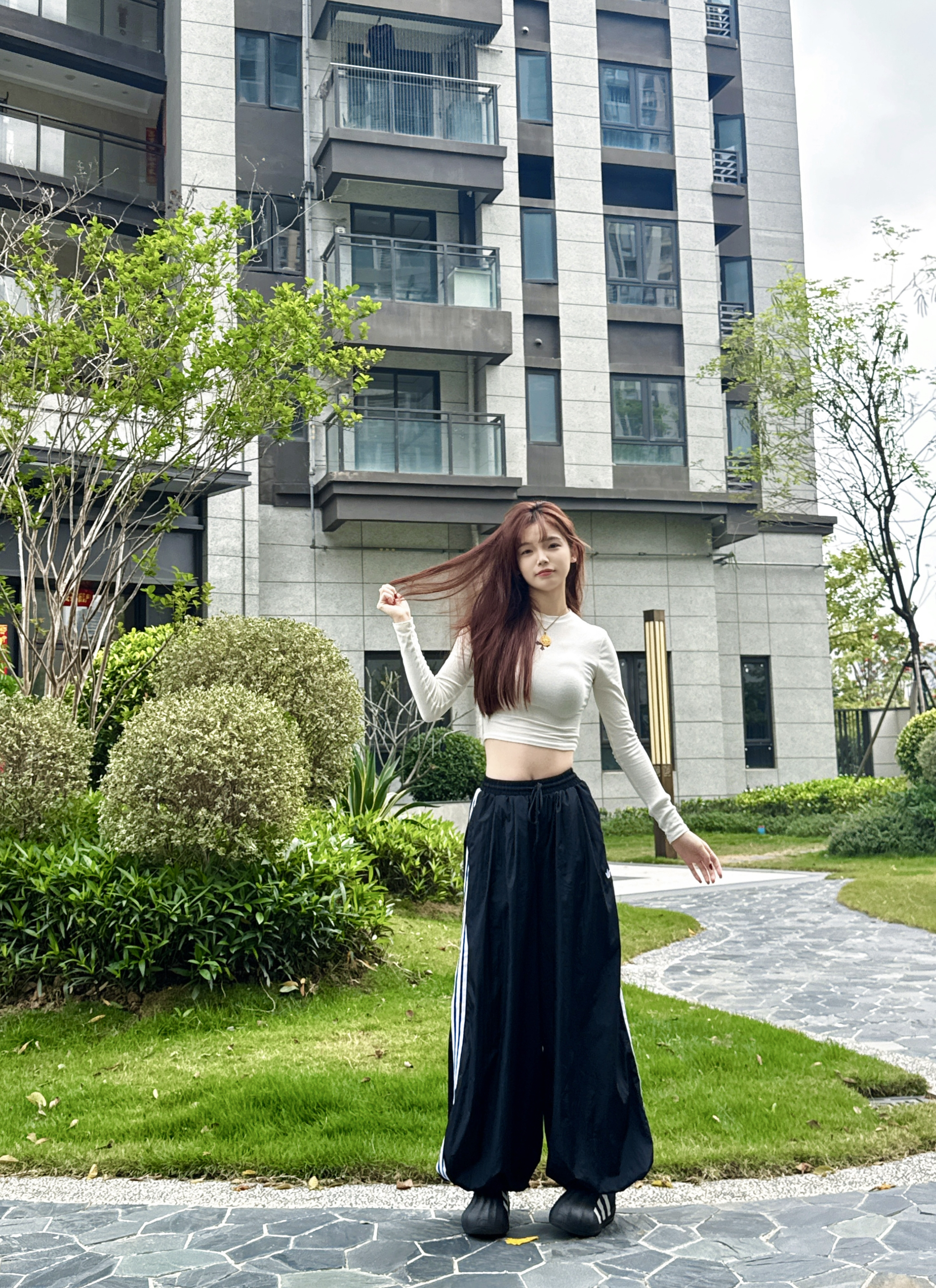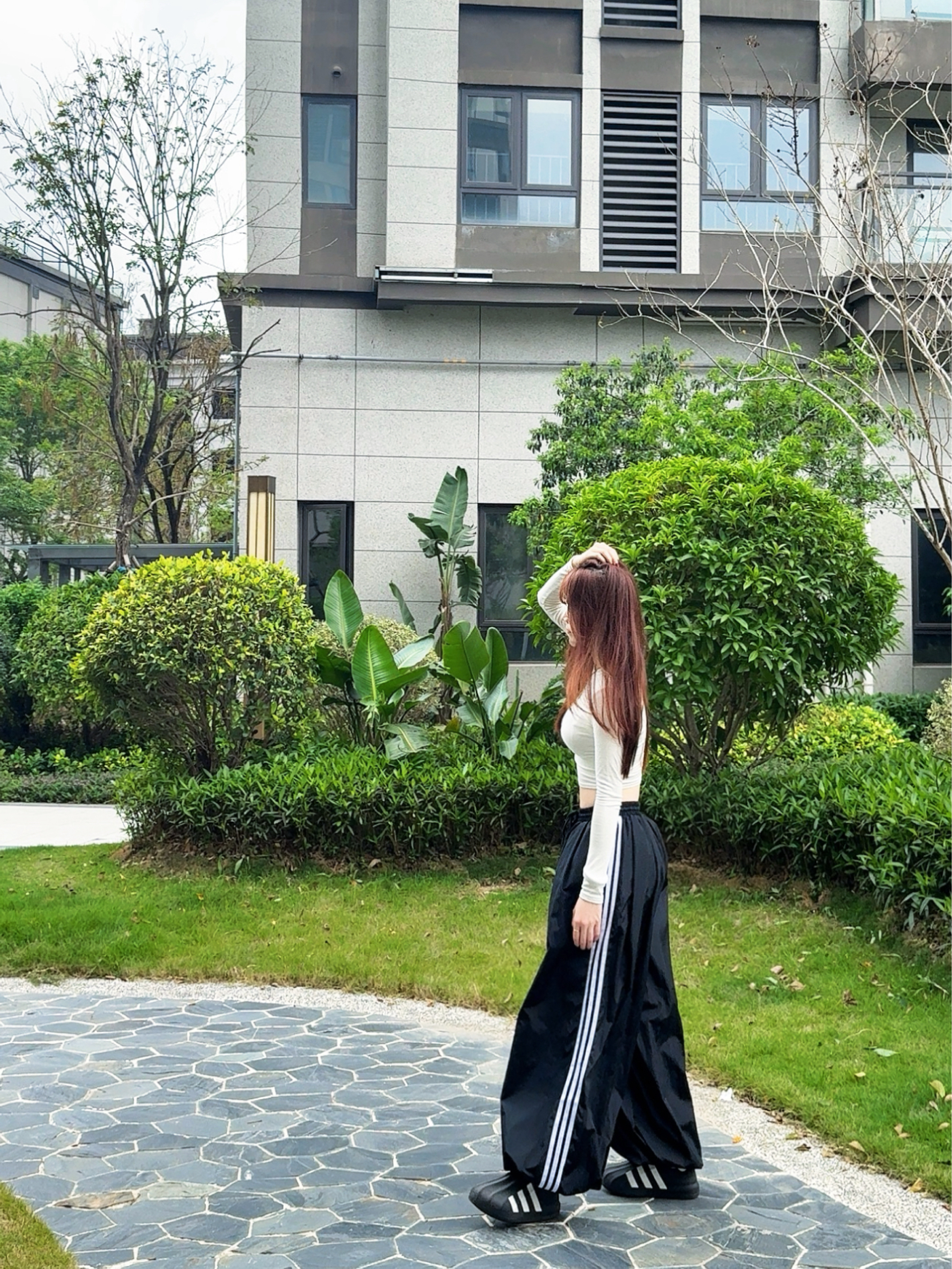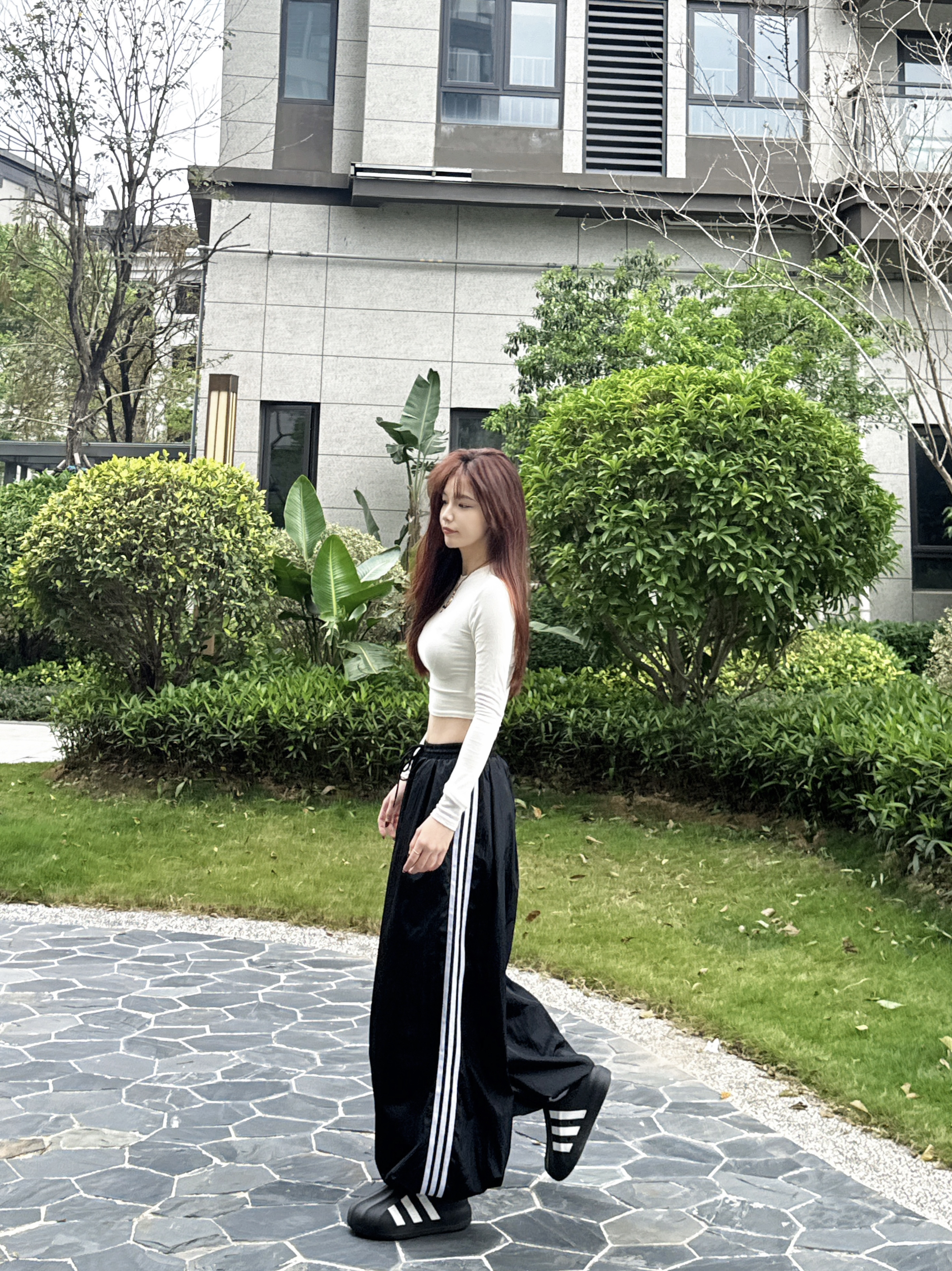 今日穿搭白色T➕阿迪裤子 这套上身太酷😎啦~ 不得不说这套舒适又百搭 👖上身太舒适了 宽松版型 直接修饰腿型 夏天穿也很nice👍 日常穿这套去约会跟姐妹喝咖啡☕️拍照很出片 👧166/43kg 穿的是XS码 这版型比较偏大呢!