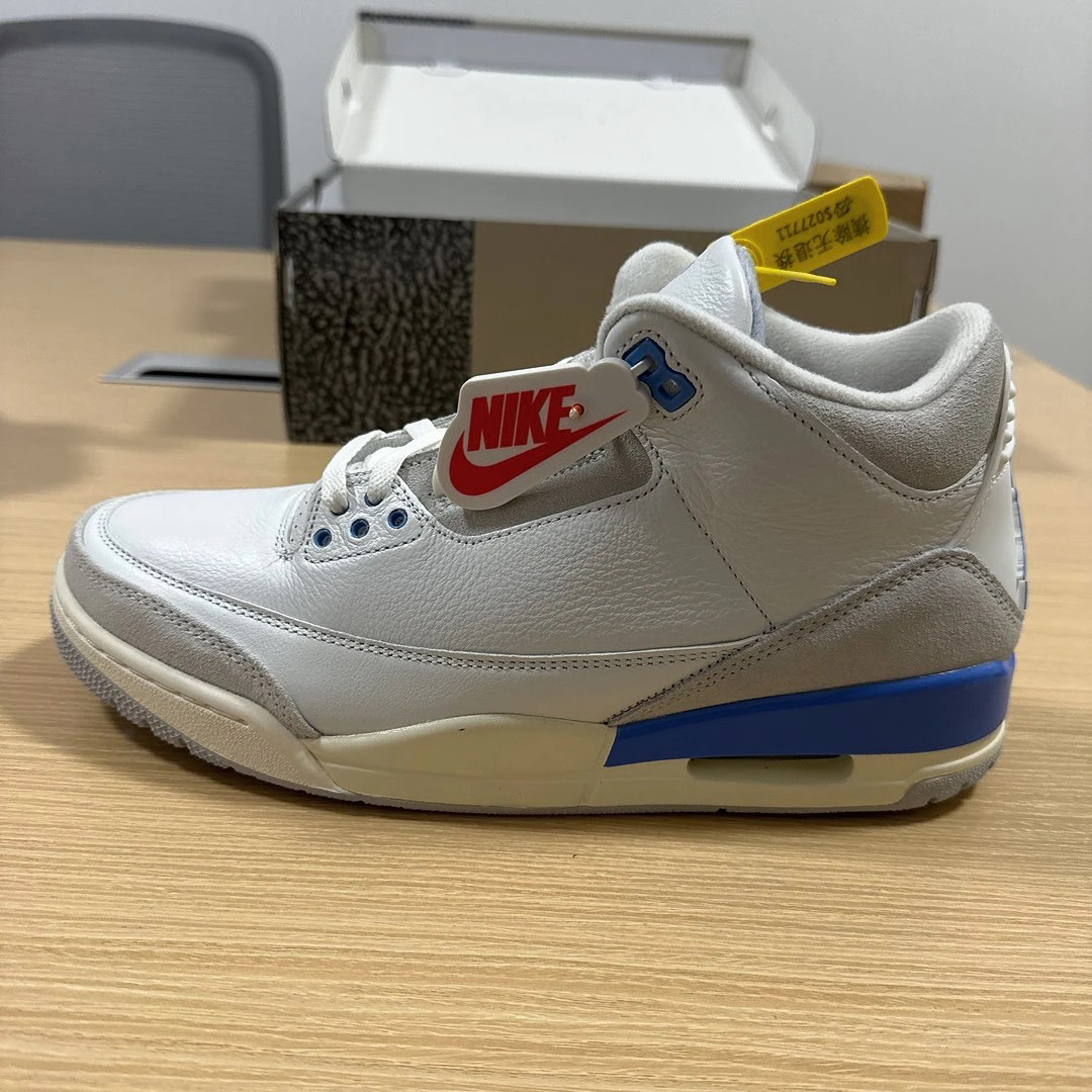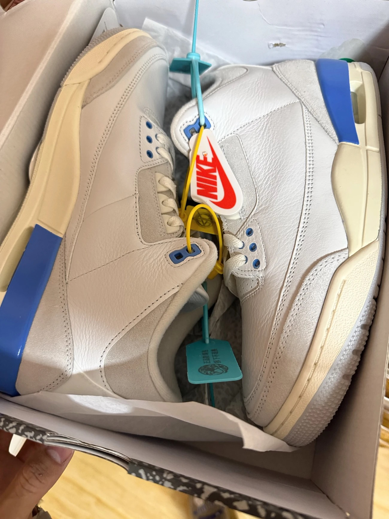本篇笔记关联了Air Jordan 3 运动休闲鞋 潮流复古抓地支撑缓震合成革圆头 天蓝色/白色等商品,为用户提供真实的使用体验和购买参考。
