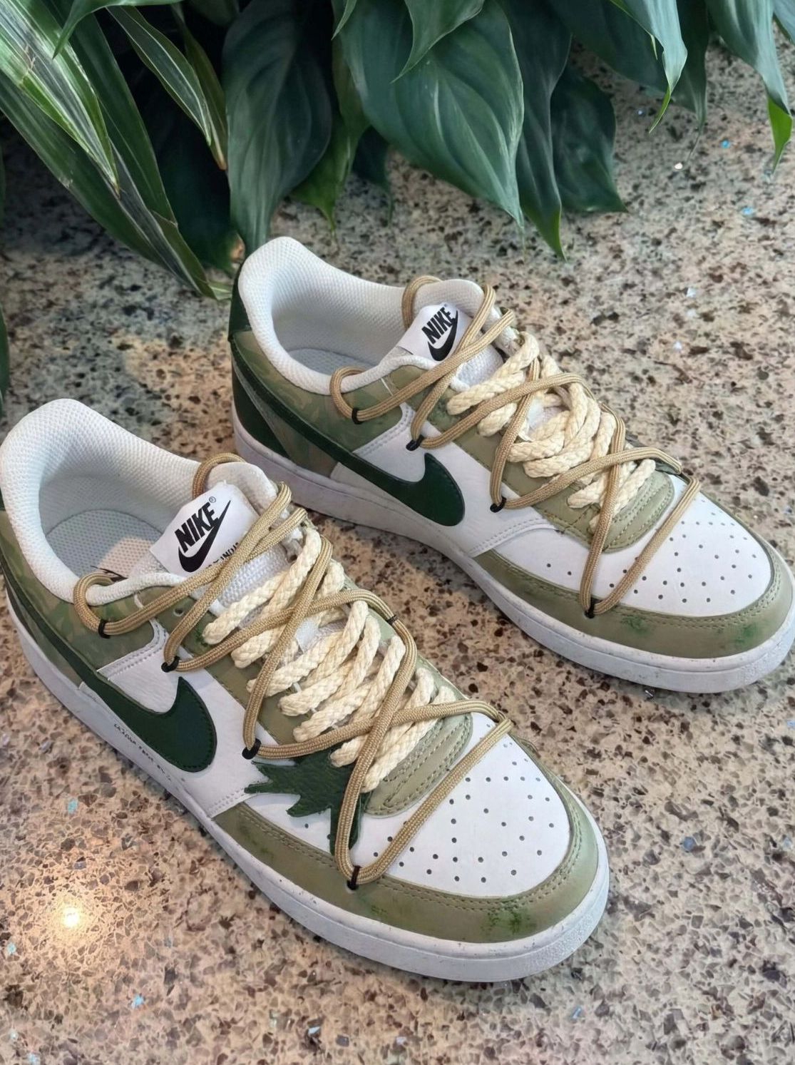 白绿拼色自带复古滤镜,枫叶装饰 + 粗麻绳鞋带超有个性,上脚舒服又显脚型,通勤、出街都适配,随便一套都很有腔调,穿上整个人都慵懒又时髦,喜欢这个好久了,开完工资,终于让我拿下了
