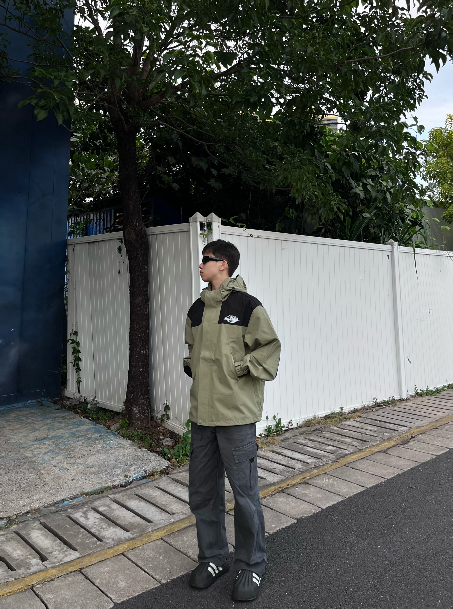 今日份运动户外风ootd来啦✨ 主打一个「户外感+日常实穿」的平衡思路,选了橄榄绿拼黑的冲锋衣当核心单品,防水面料+撞色设计,既能应对多变天气,又自带街头时髦感。 下装搭深灰工装裤,多口袋设计增加户外机能感,宽松裤型刚好中和冲锋衣的利落感,再踩一双黑底白条面包鞋,整套舒服又上镜。 不管是citywalk还是短途户外都适配,把户外单品融入日常穿搭,才是穿搭本身的意义!