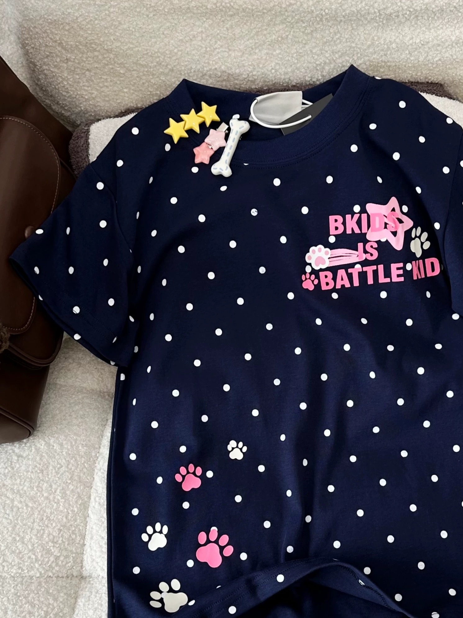 超可爱的薄荷绿波点T恤,自带元气少女感,粉粉的爪印和字母印花太戳心啦,穿上它瞬间变身甜酷小甜心,夏日氛围感直接拉满!这种高饱和度的多巴胺配色,绝对是今年穿搭的流量密码。不管是搭配浅色牛仔做旧,还是配黑色工装裤,都能轻松穿出韩系慵懒感,回头率爆表!💥