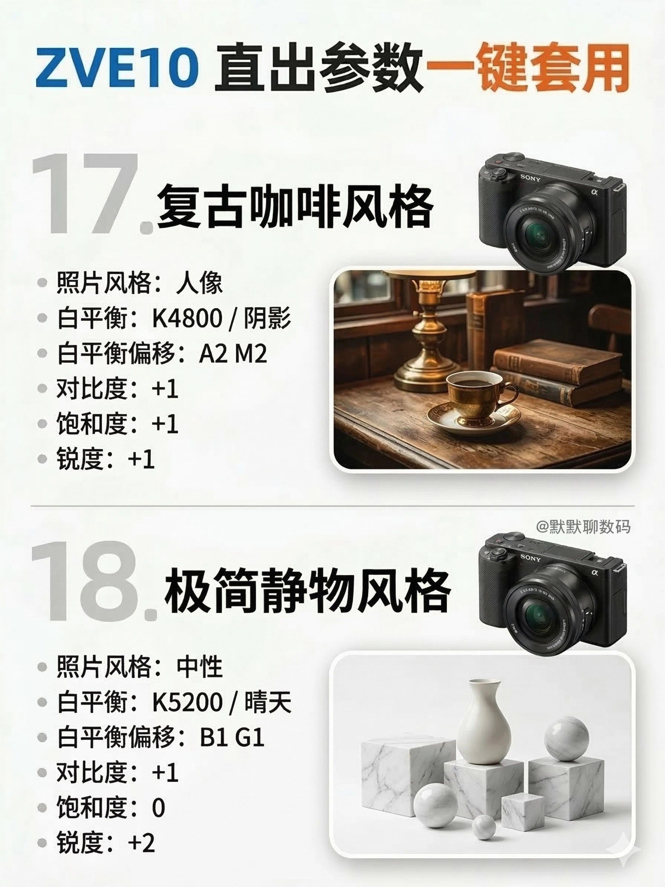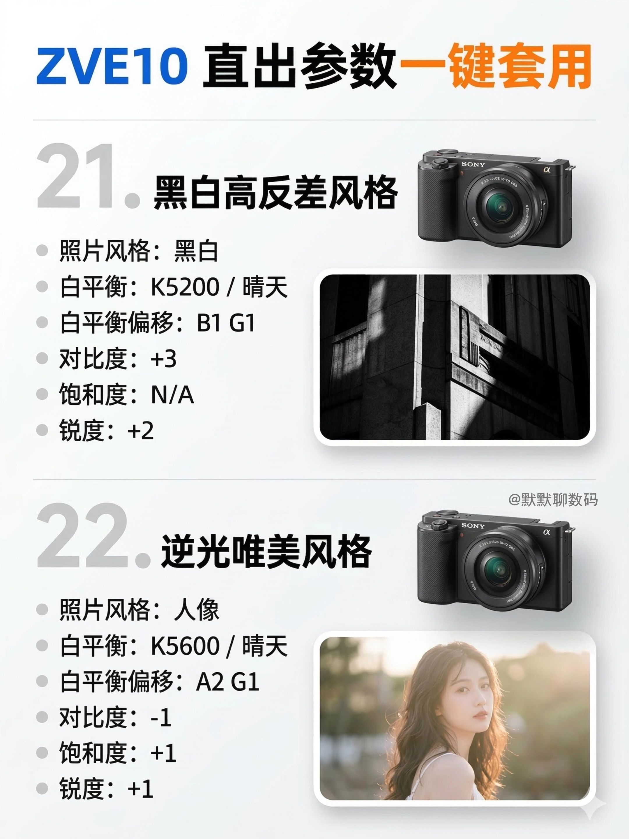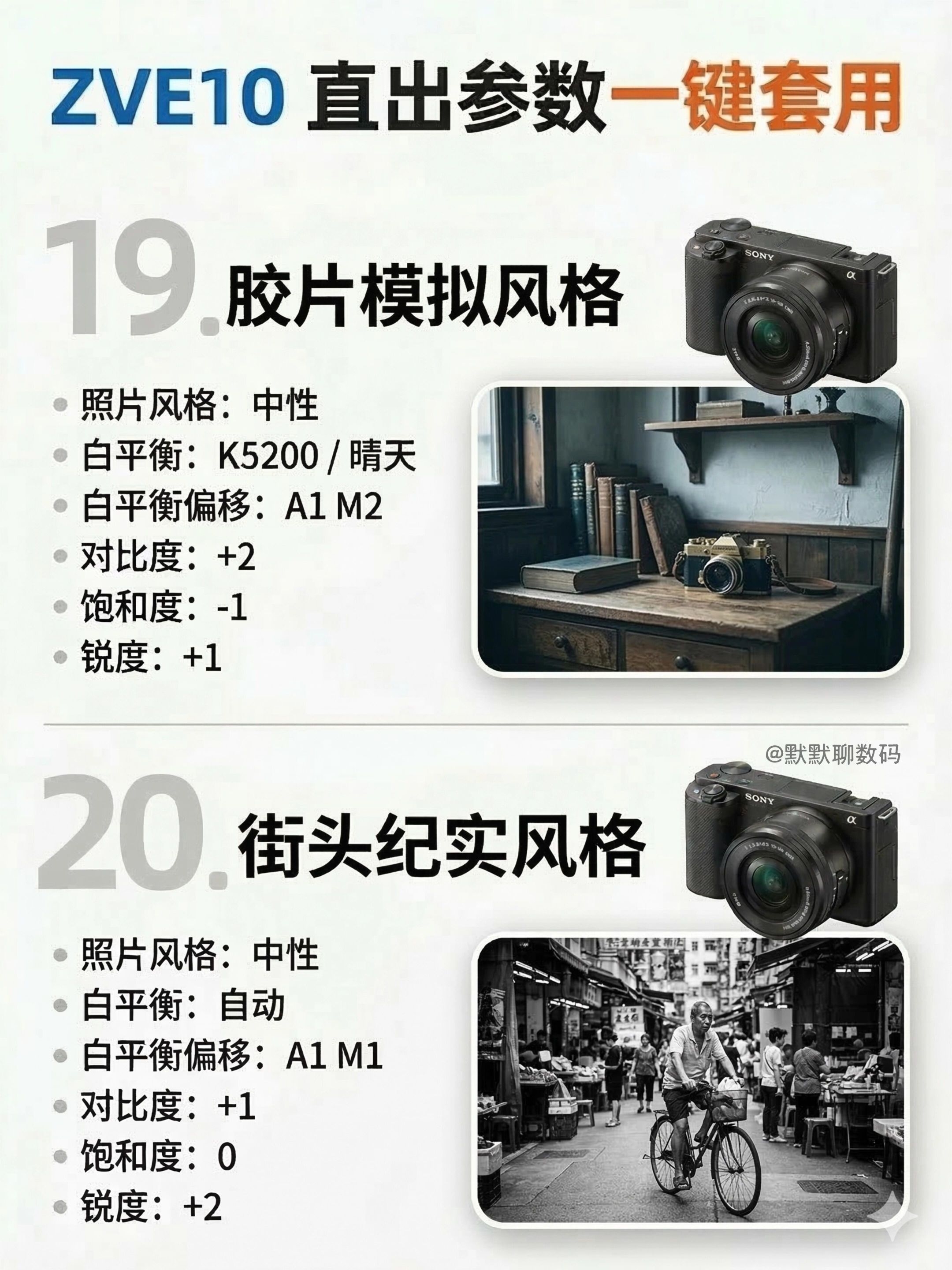 【直出神了|索尼ZVE10风格参数(下篇)】,由用户 默默聊数码 分享,来自上海。这是一篇来自识货社区的真实用户分享笔记。
