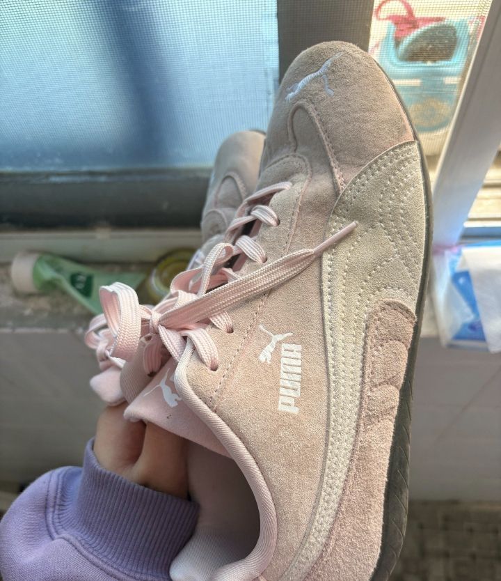 这款PUMA板鞋在品牌鞋里属于颜值超高的一款,这款价位目前在七百开,有喜欢的学生党可以入手哦🌈🌈 外表 外表是超温柔的樱花粉拼浅杏色,少女感直接拉满,鞋身是细腻的翻毛皮材质,鞋侧经典的PUMA美洲狮标志简约又精致,搭配同色系鞋带和鞋舌标,穿上感觉就是很甜美、很软萌,适配各种休闲穿搭。 质量 质量很靠谱,翻毛皮材质手感软糯还耐磨,鞋型走线工整没有多余线头,鞋底弹性适中,走路脚感很舒服,鞋面贴合脚型不...
