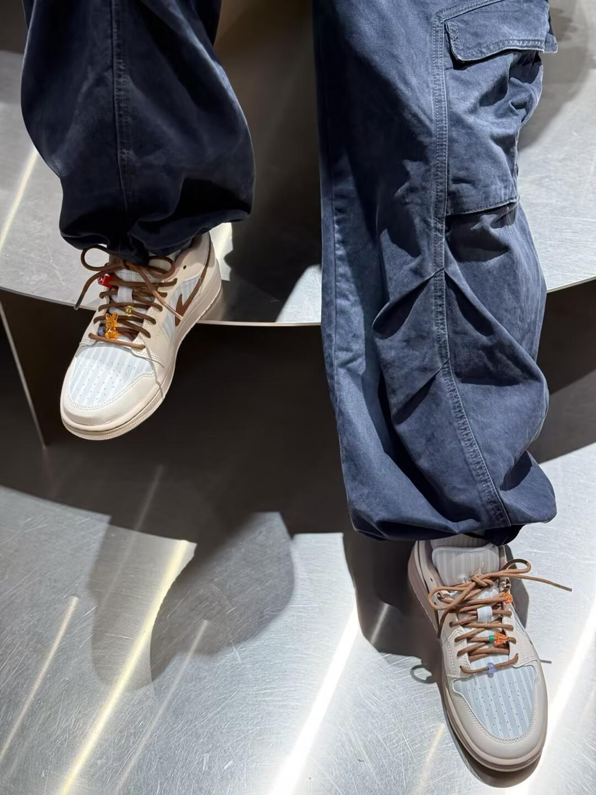 专柜一眼沦陷的梦中情鞋✨ 彻底打破AJ1固有的硬朗街头感,细条纹设计温柔又高级,细节感直接拉满💙 浅蓝撞棕褐色的配色超绝,复古腔调十足还巨显白,日常搭配零难度不挑衣。 宽松裤脚微微盖住鞋帮的穿法,遮肉显瘦还自带慵懒随性感,随便一套都很出片。 通勤出行利落大方,周末约会温柔吸睛,一双搞定多种场景。 马年开春穿搭质感全靠它撑住,低调精致不撞款,关键还是男女同款💑 情侣党直接安排上,氛围感直接拉满~