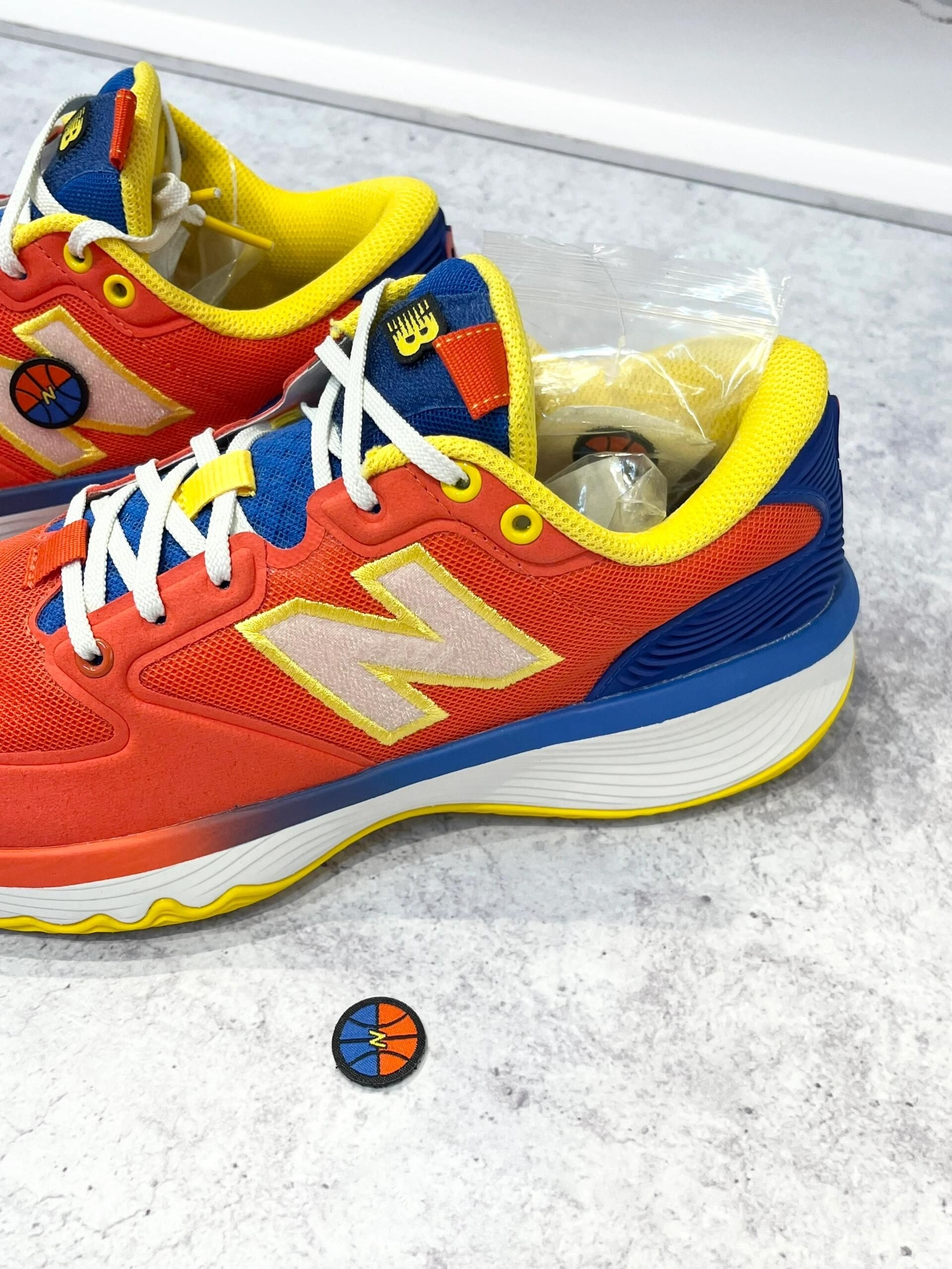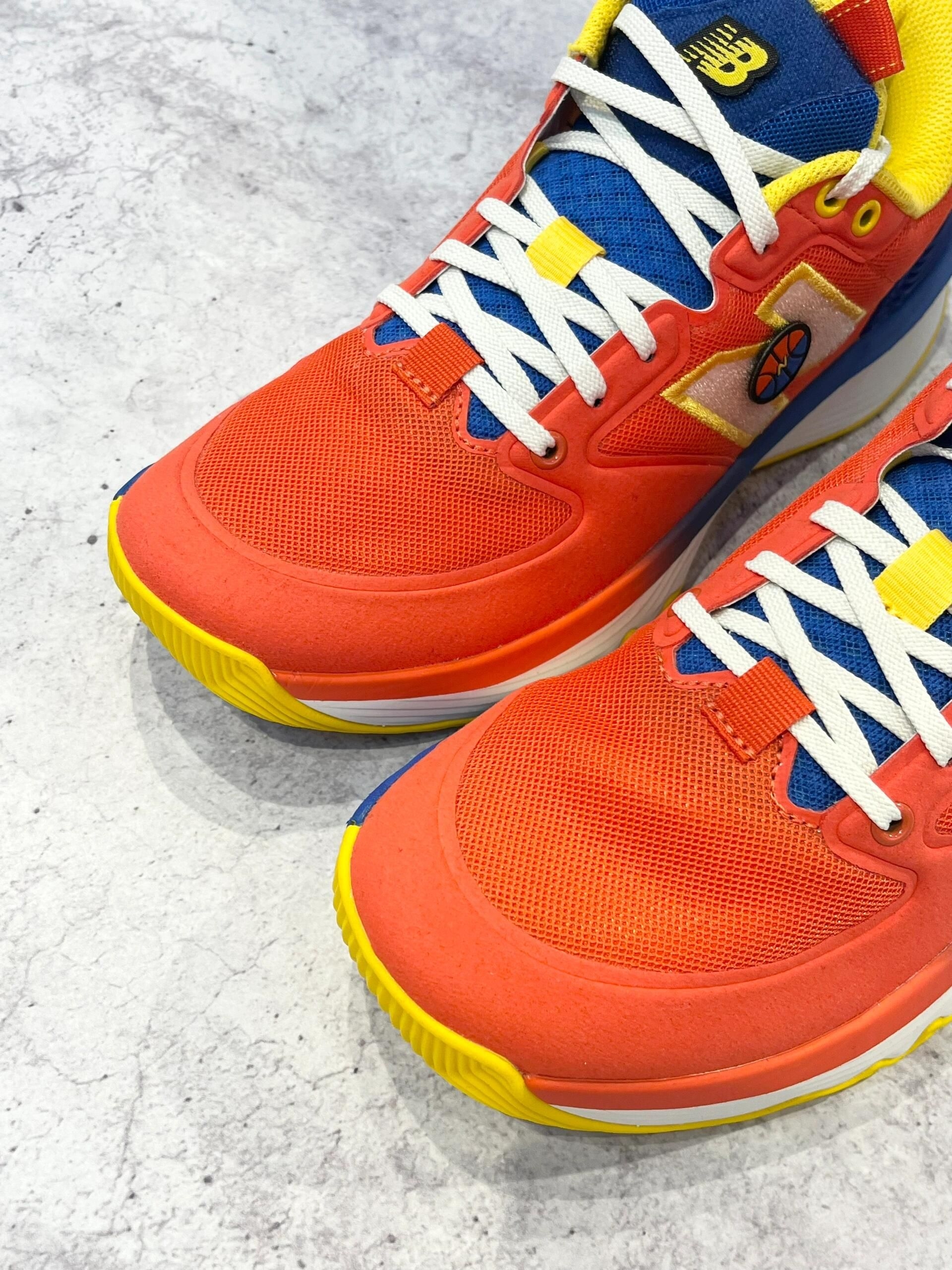 🔥N代篮球鞋红蓝配色,鞋面网布+合成革,透气又有支撑力!鞋侧“N”标志+篮球图案,运动感满满🏀。中底缓震,外底多向纹路,抓地力和灵活性都很棒,室内外球场都能轻松驾驭。红蓝黄撞色设计,活力十足,超适合喜欢个性穿搭的运动党✨。