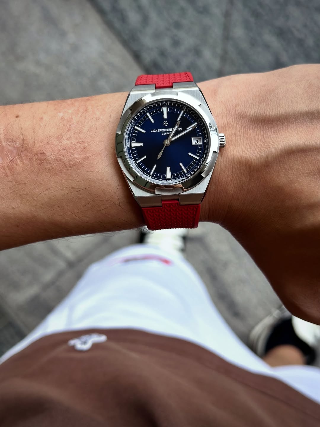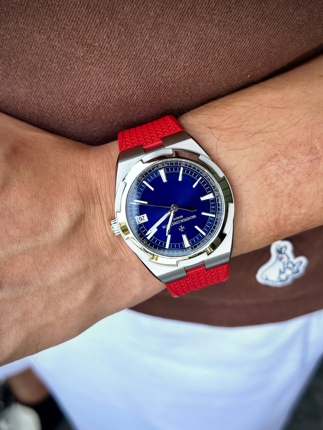 7天搞定纵横四海4500v,第一感受就是快拆表带的方便性和实用性!随时随地根据不同场合更换表带,超级方便!并且佩戴感一流放射纹的蓝色盘很沉稳显高级,搭配了红色表带,很鲜艳的撞色搭配绝了