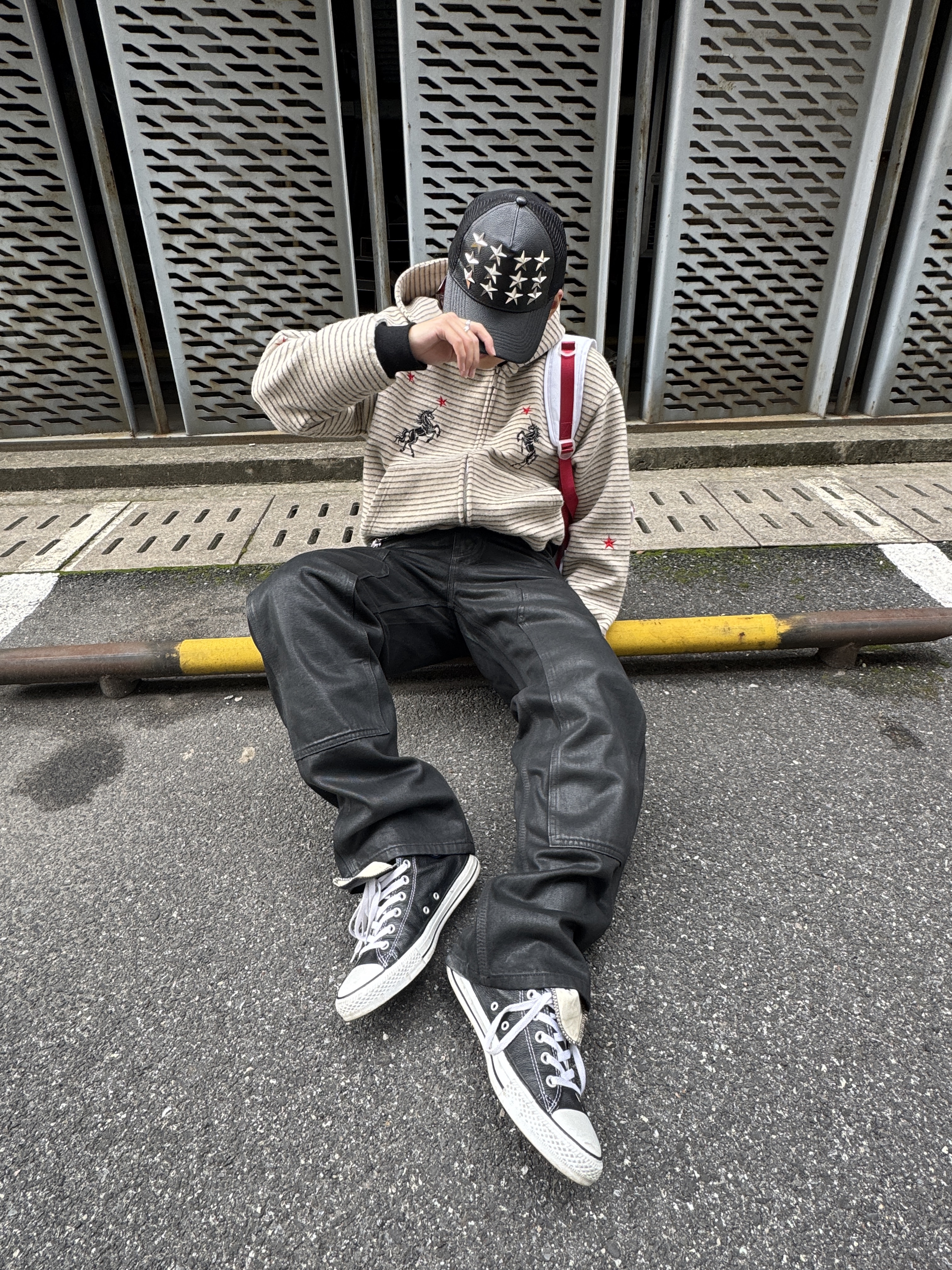 3月末 温度逐渐正式回暖 果断把厚衣服换掉 上衣直接选择一件卫衣👔 条纹+星星的元素把街头范精准拿捏 短版的设计也是丰富了整身的搭配 裤子选择一条版型不错的直筒刷蜡伐木裤 上身合身并且蜡面设计丰富整条裤子的可搭配性 再用一双这两年较火的街头球鞋👟all star搭配 整套穿搭就是街头的代名词!