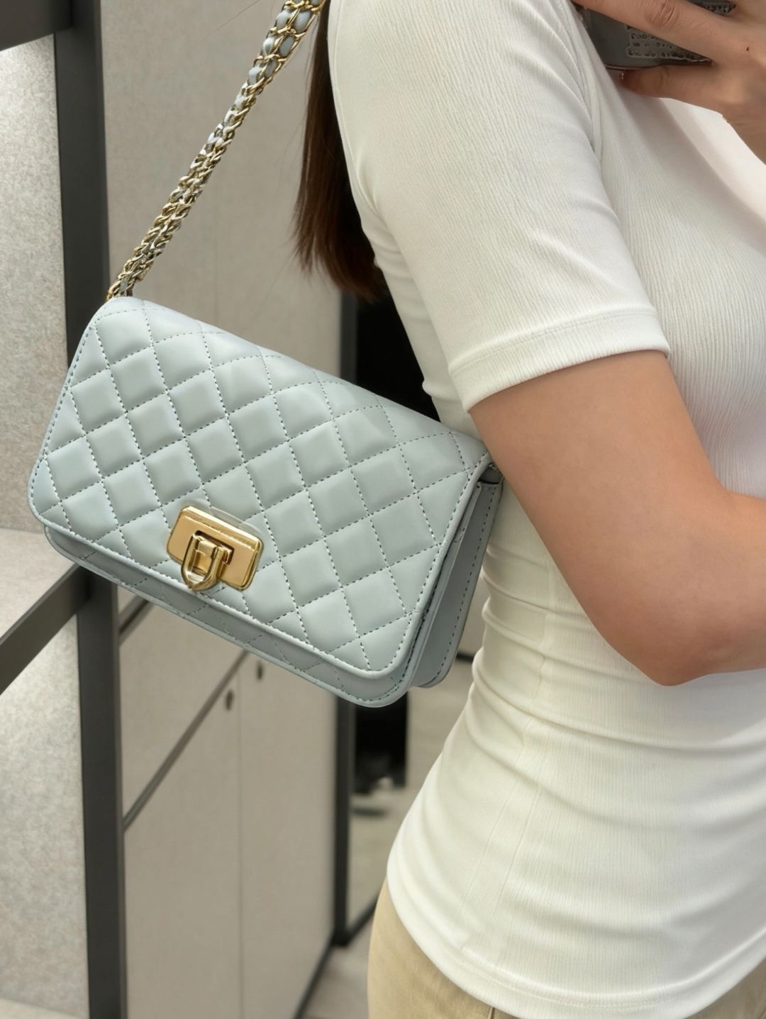 coach klare 小巧轻便 皮质(牛皮+PVC)耐磨硬挺不易翘边C 内里容量巨大,有拉链、分隔多迎链条包,可斜挎可单肩。温暖奶茶色、复古焦糖色都很百搭