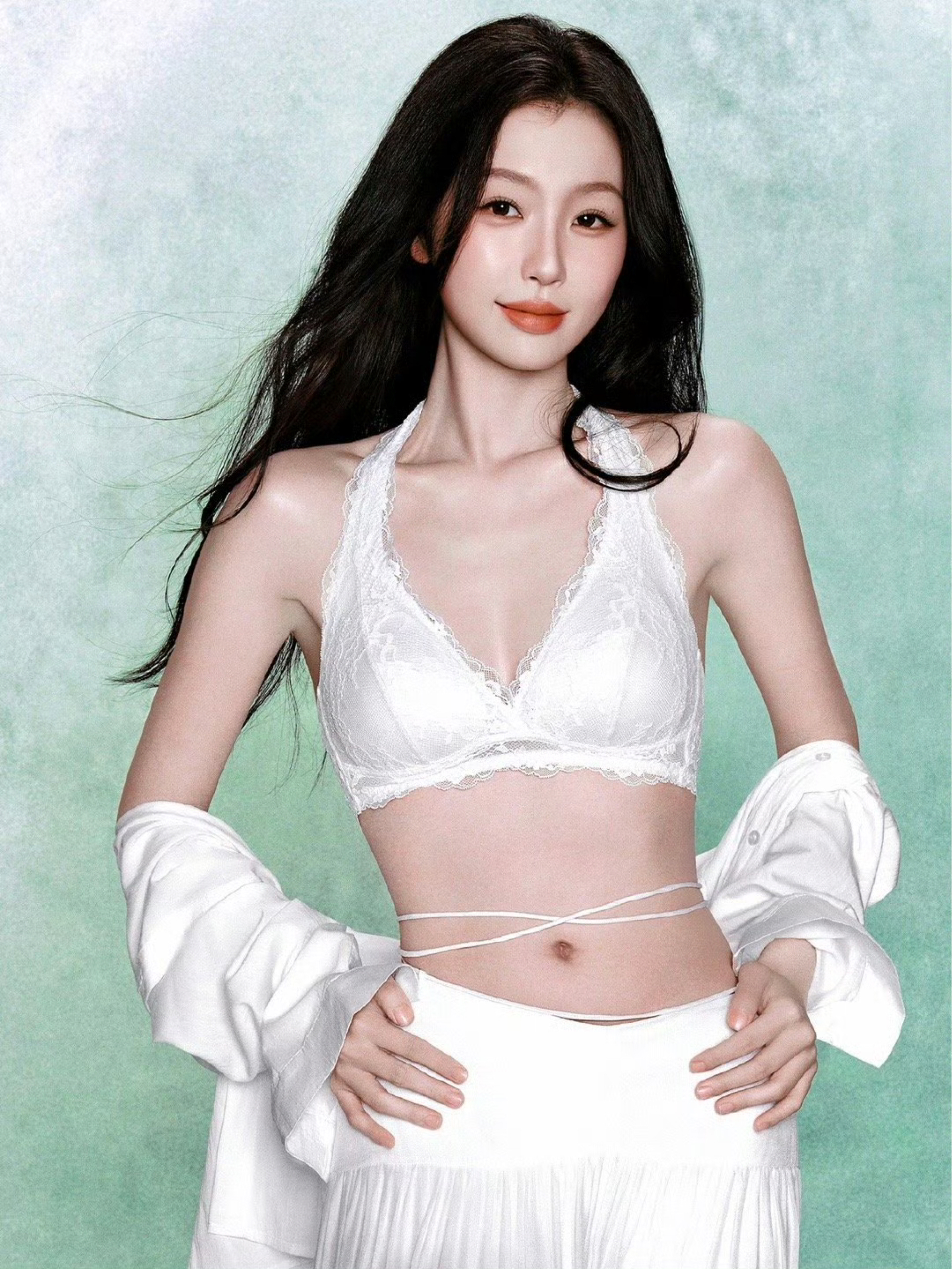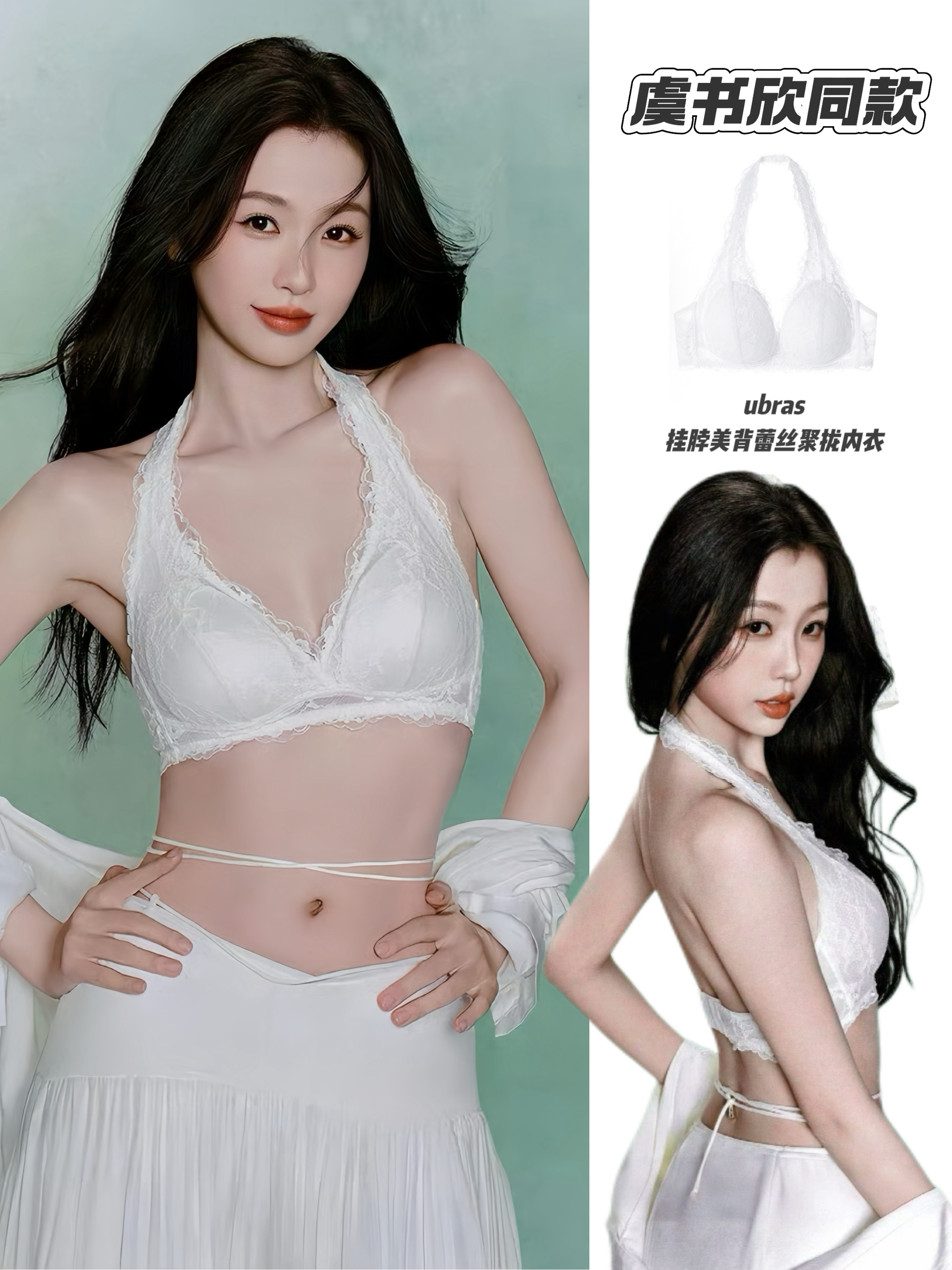 虞书欣这套造型把挂脖美背内衣穿成了时髦单品✨ 白色蕾丝精致又温柔,挂脖设计露出纤细肩颈,腰部细带巧妙勾勒腰线,纯欲感拉满。 搭配同色系下装,干净又高级,既可以作为内搭叠穿,也能直接外穿打造辣妹风,是兼具性感与实用性的宝藏单品。