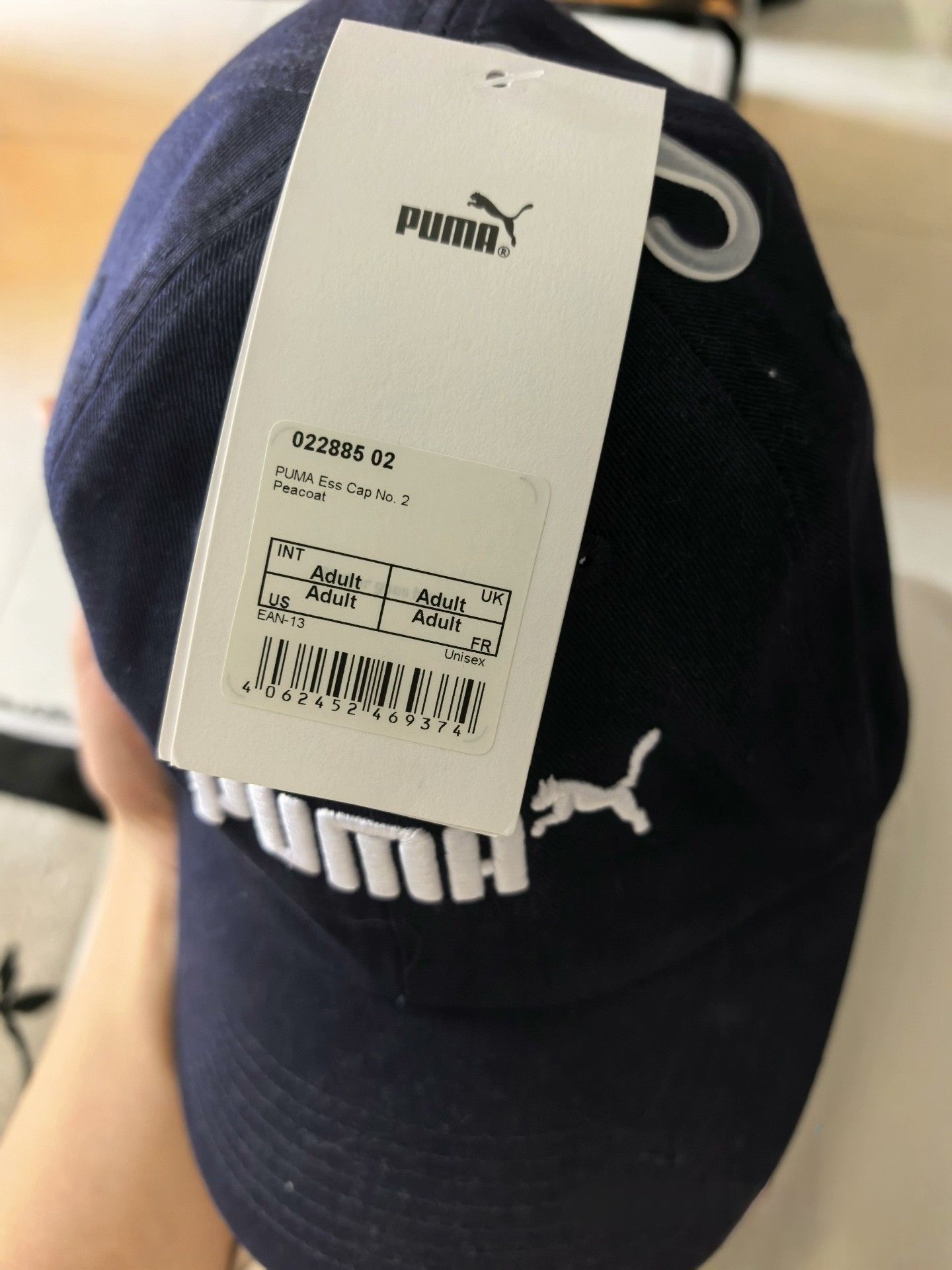 🧢PUMA藏青色棒球帽,经典软顶设计,棉质面料透气舒适,日常佩戴无压力。正面白色Logo刺绣,简约又有辨识度✨。帽围可调节,适合56-64cm头围,显脸小,大头围友好!藏青色百搭,运动、休闲、户外都能轻松驾驭,遮阳防晒又时髦,是实用与时尚兼具的必备单品👍。