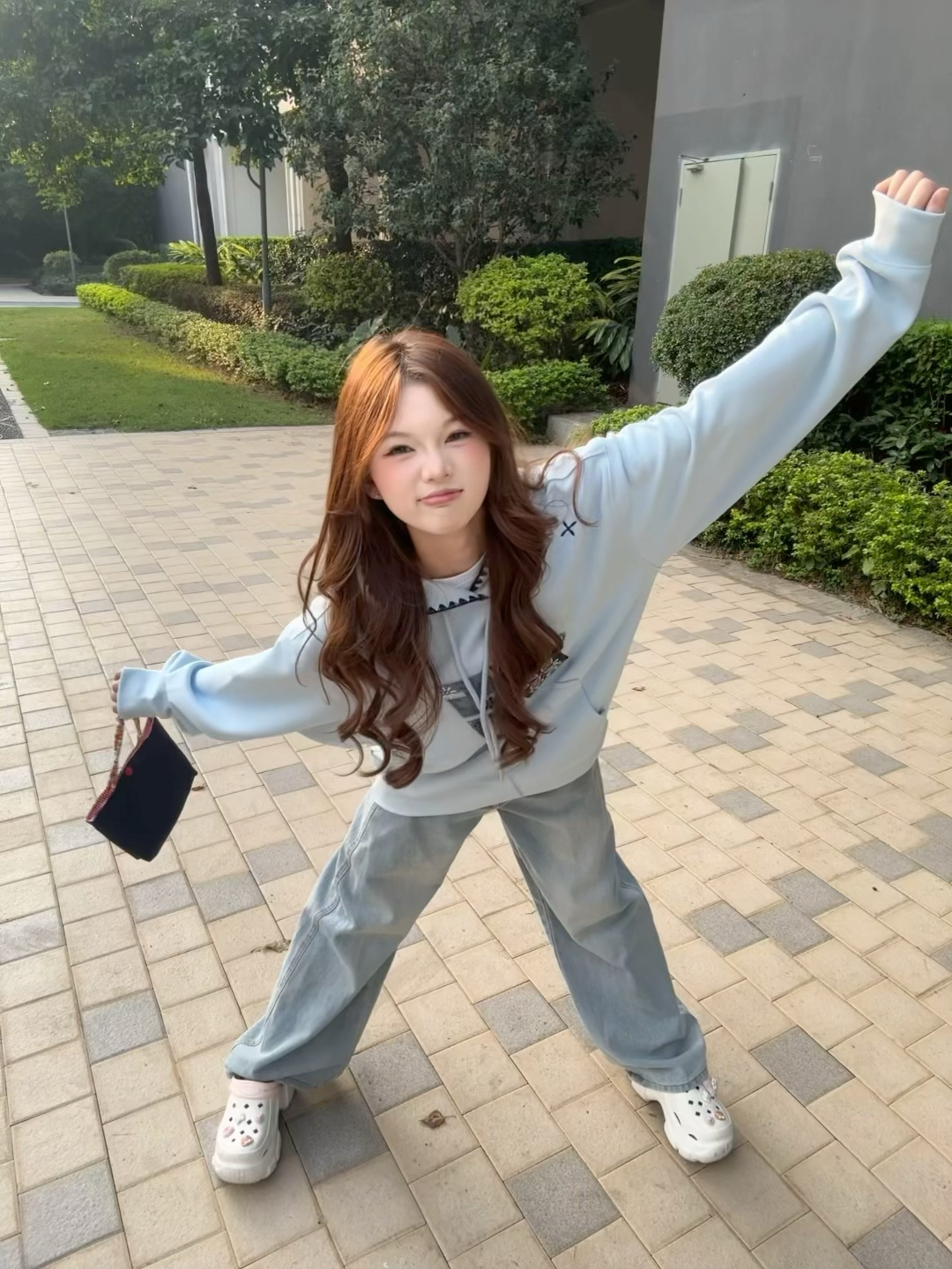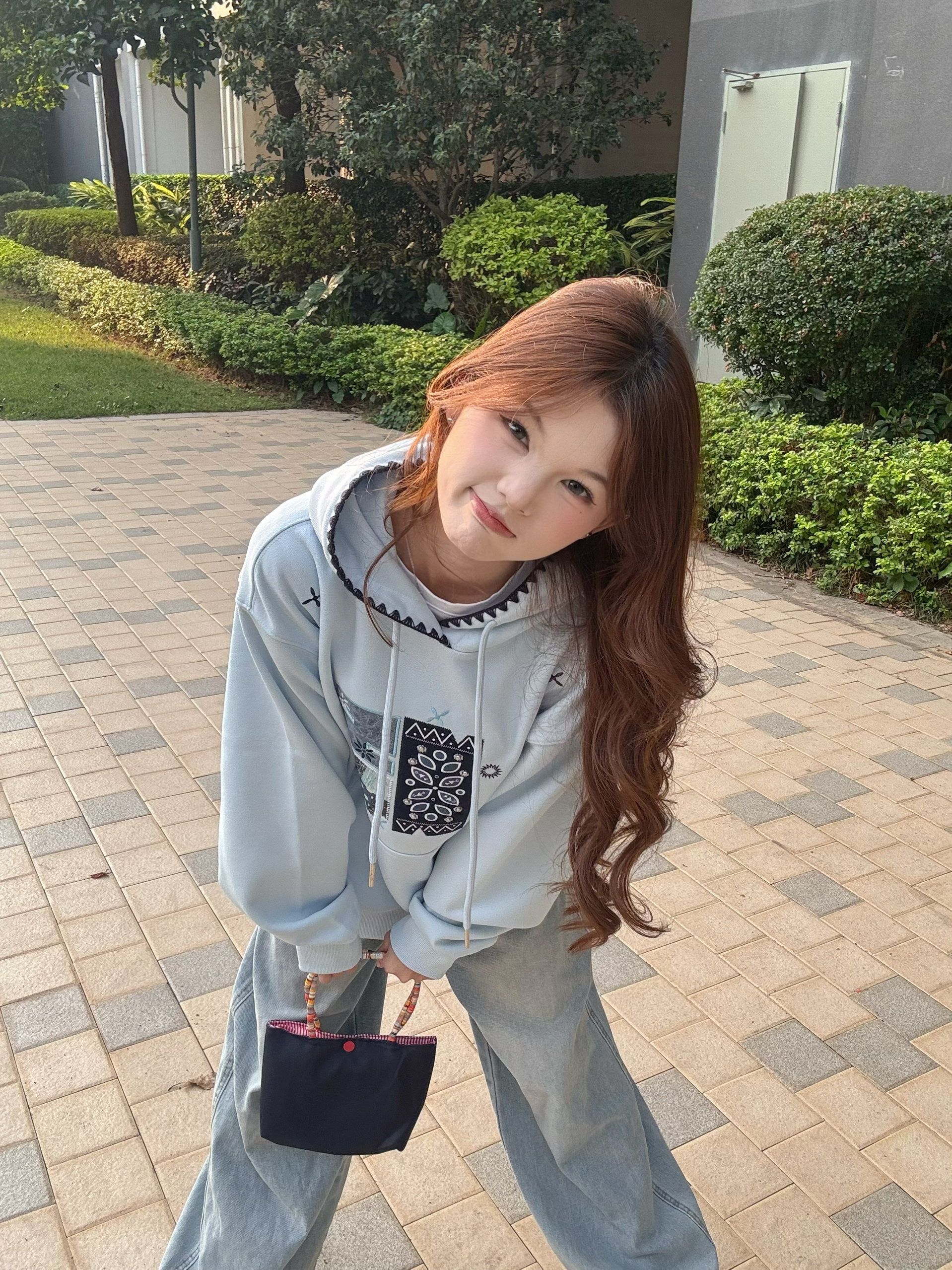 今天是奶fufu的浅蓝系女孩~连帽卫衣+阔腿牛仔裤,慵懒感直接拉满! 软乎乎的面料,带着一点民族风小刺绣,日常出街/上学都超舒服~ 随手拎个小布包,在阳光下晃悠,这才是春天该有的样子呀🌿 不费力的穿搭,也能拍出很有生活感的照片,温柔又元气~