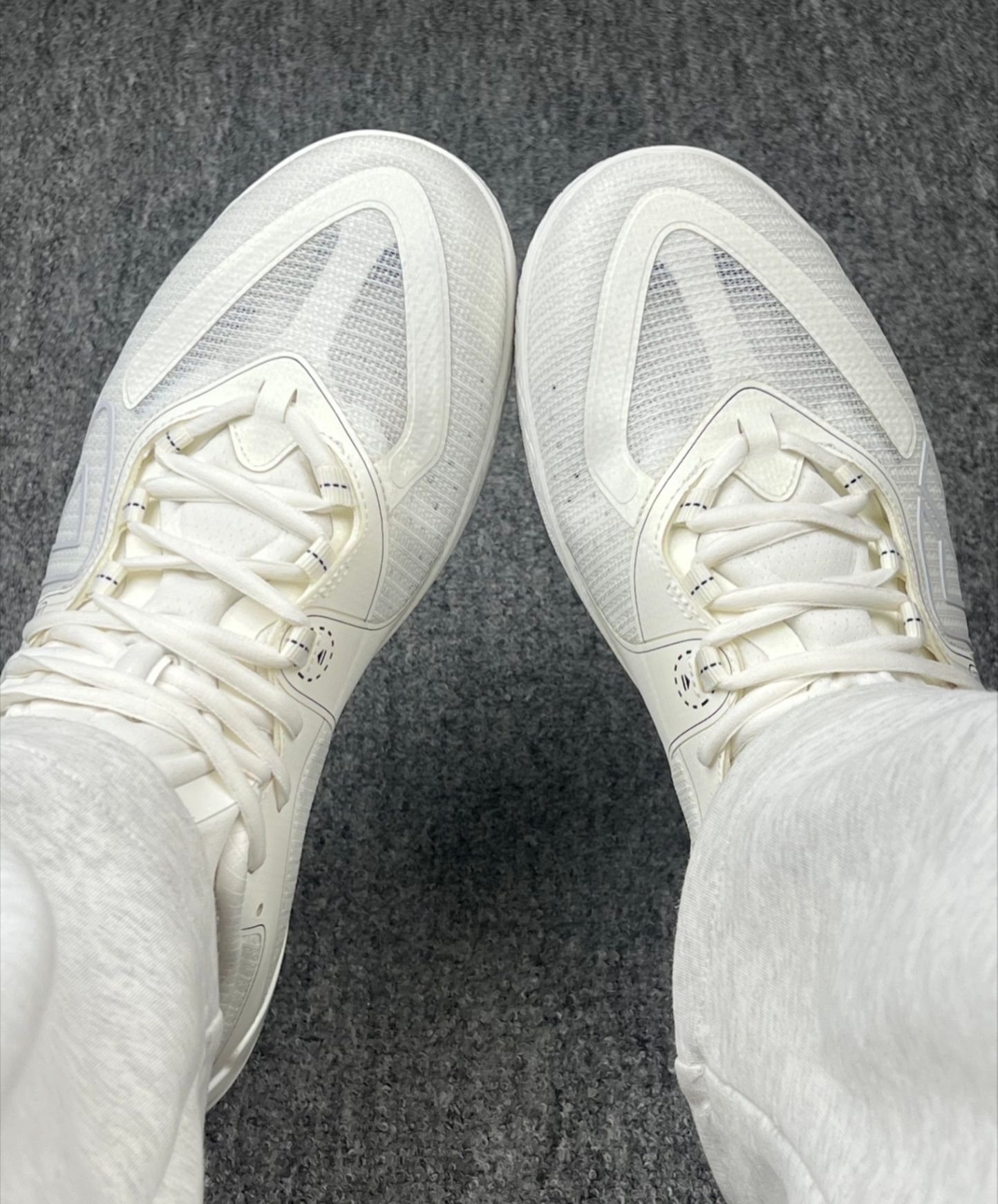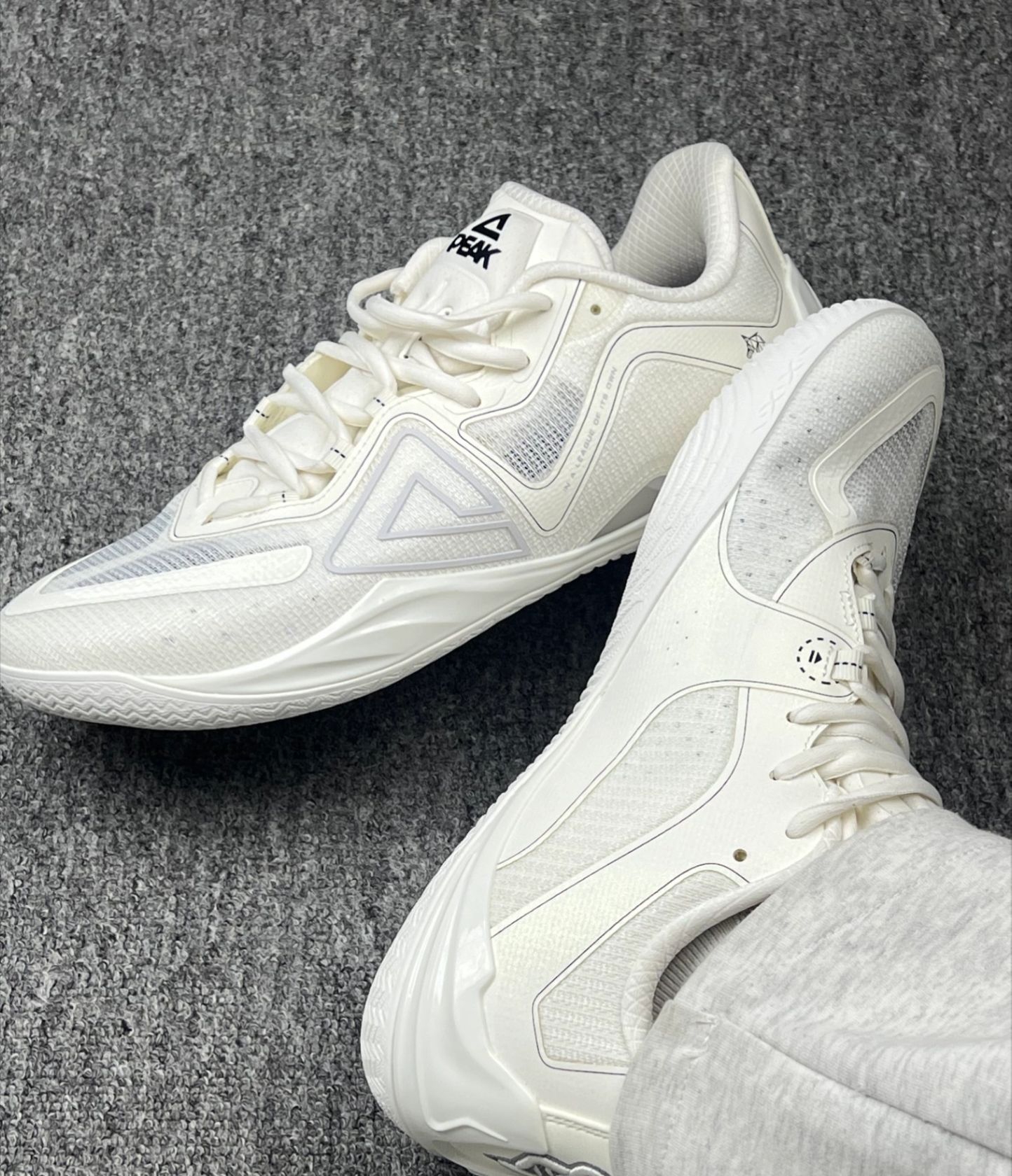 这双乳白配色的匹克态极无双,第一眼是干净耐看的低帮造型,网眼鞋面+热压条,夏天打球不闷脚👟。 上脚后最直观的是鞋脚一体感,薄底设计贴地感很强,变向和启动都很利落,态极水平缓震回弹不拖沓,抓地纹路在室内场很稳,急停急起很少打滑。 但缺点也很明显:鞋楦偏宽,瘦脚穿会有点晃,需要系紧鞋带;足弓支撑偏弱,打久了容易酸;抗扭性一般,高强度变向时安全感一般。 整体是一双偏后卫向的实战鞋,适合追求贴...