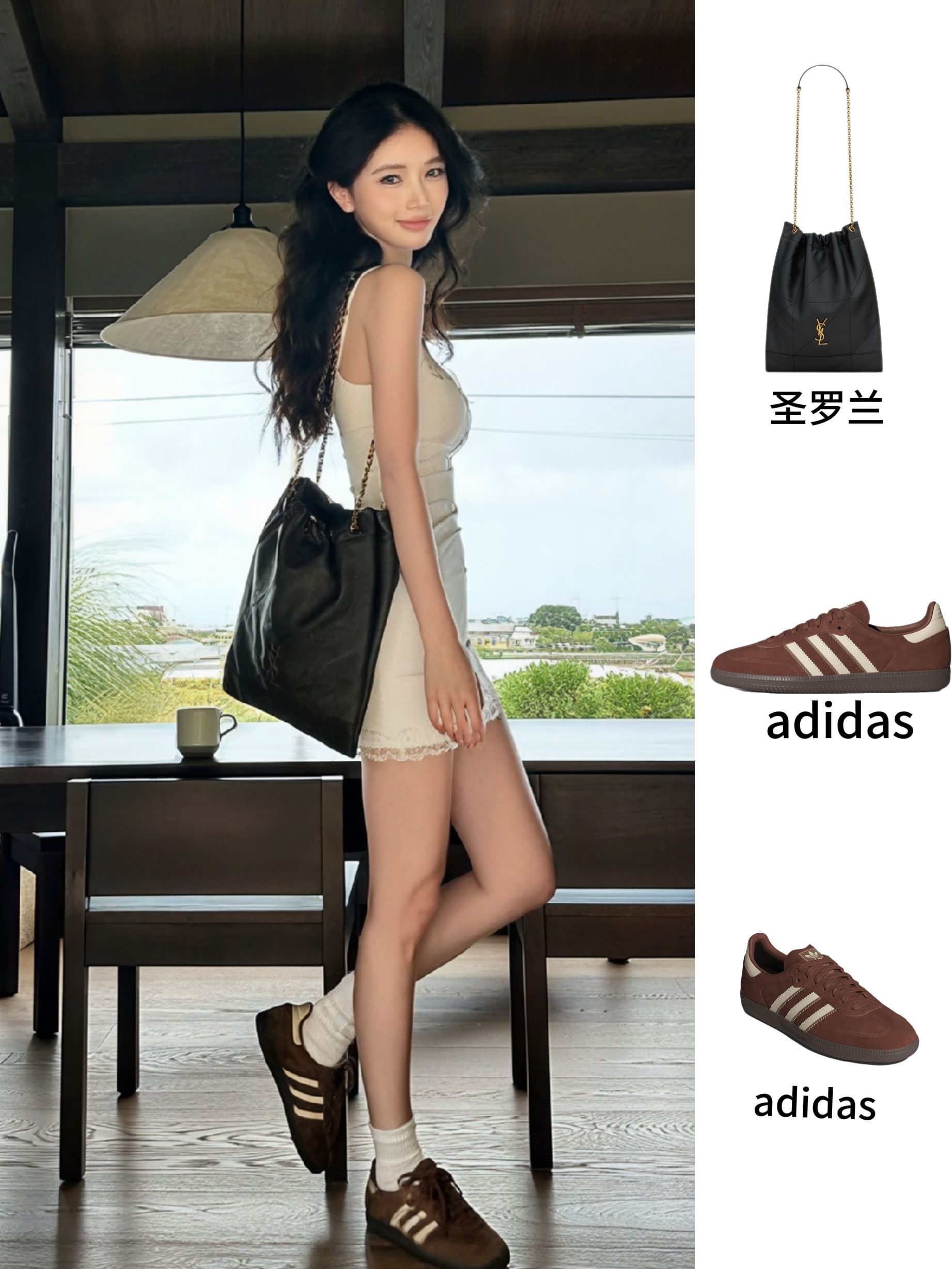 标题:温柔纯欲风拿捏了!白裙+德训鞋太绝了✨ 这套真的是我近期最爱!奶白吊带蕾丝裙把温柔感拉满,版型显腰细又不会太露,日常约会都能穿~ 搭配棕褐色阿迪德训鞋,复古感直接拉满,软乎乎的麂皮材质超舒服,配白袜还能藏住小粗腿。 背上圣罗兰黑桶包,酷感中和了甜腻,链条肩带也很显气质。 整体是那种松弛又精致的感觉,不费力的好看谁懂啊!完全是日常出门被问爆的一套,爱惨了这种轻熟纯欲挂~ cr:方圆
