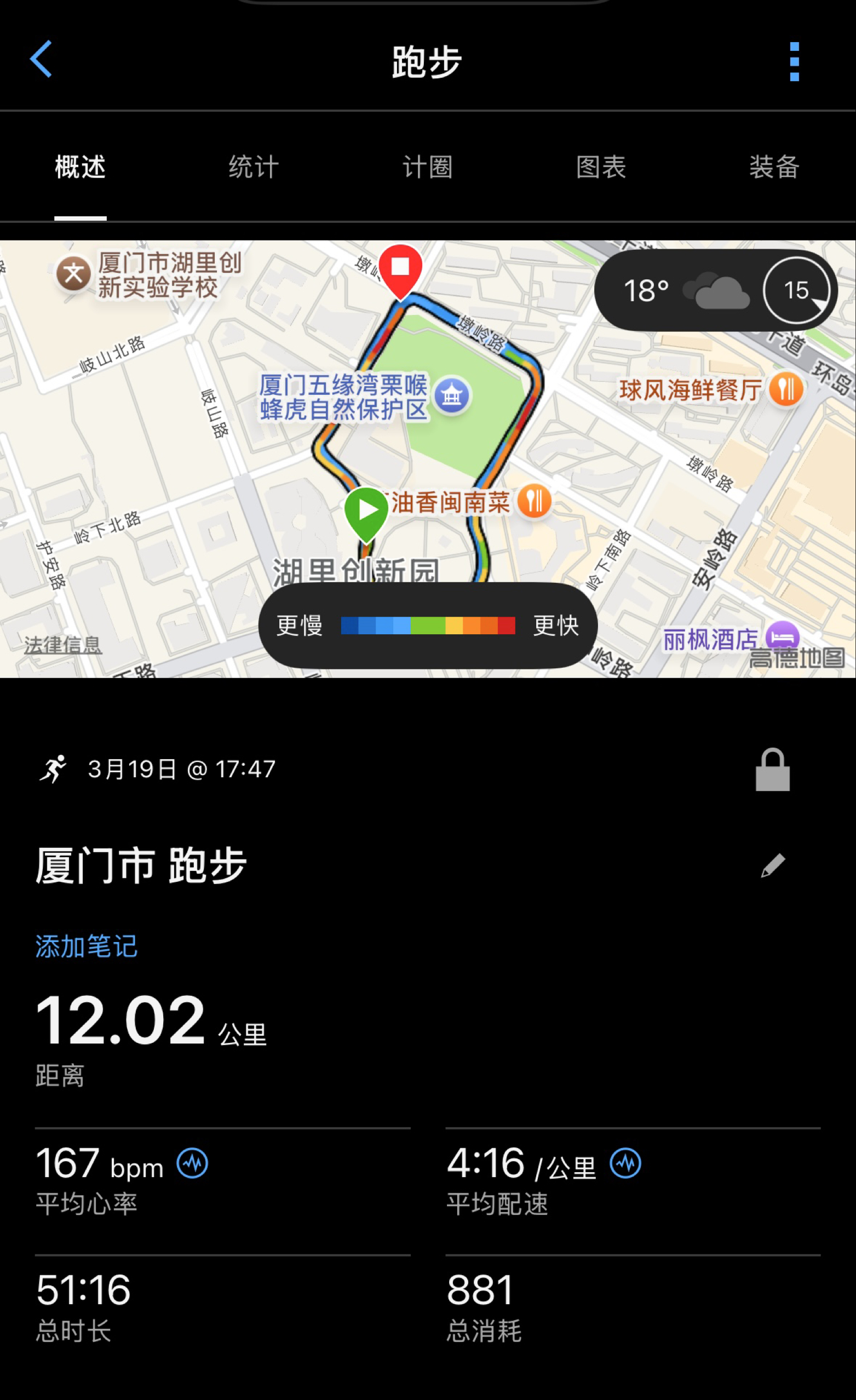今天直接上强度、提速度,12公里平均配速416拿下~ 前6公里稳住420配速慢慢找状态,后6公里直接压到415,越跑越顺 最后一公里咬牙想冲进330,还是差了点劲儿,心肺真的顶不住 但整体体感舒服又通透,每一步都踩在节奏上 训练不敷衍,恢复才有效果,继续冲就完事!