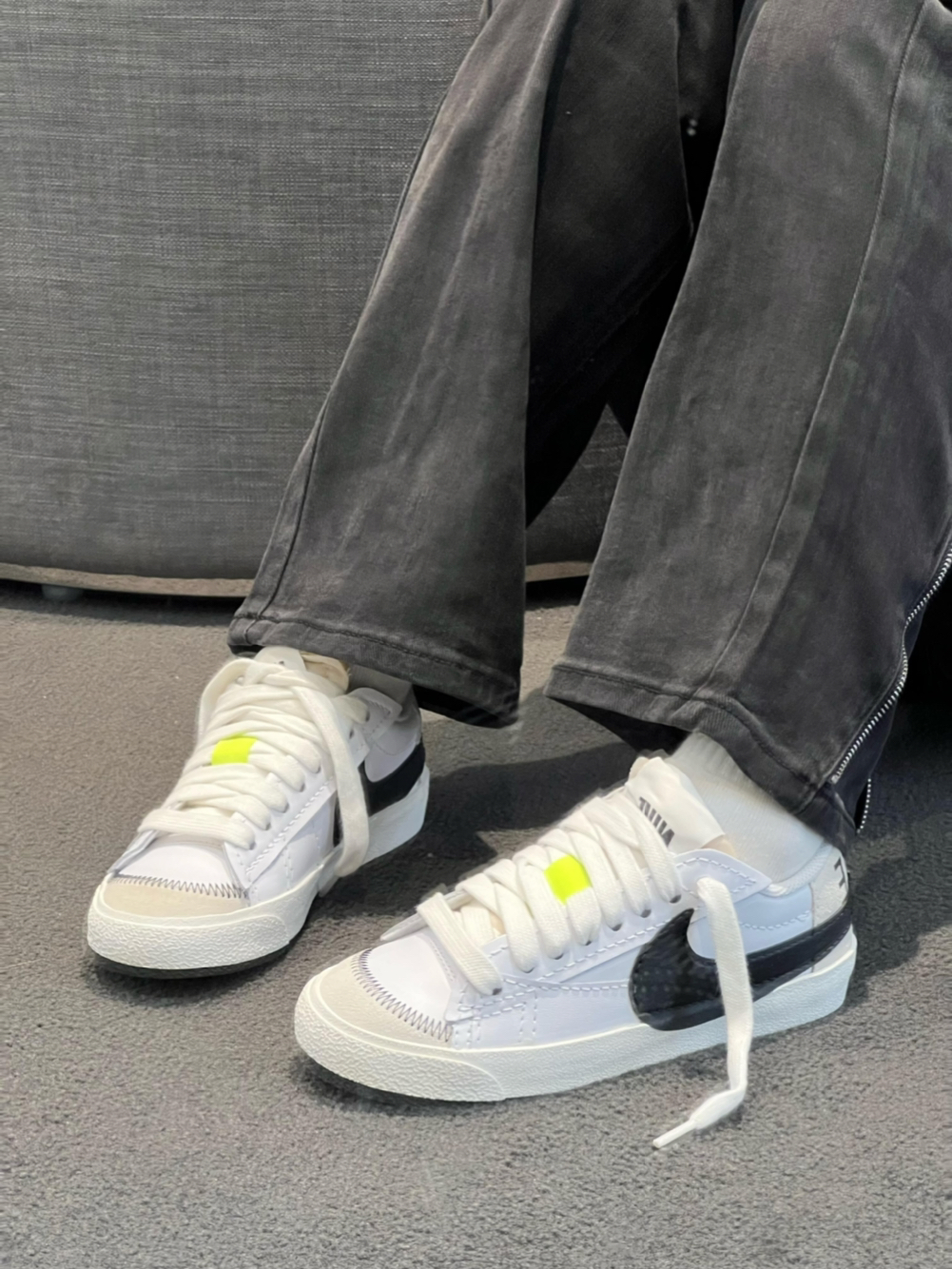 谁能拒绝这双自带街头感的Nike Blazer啊!🖤 经典白黑撞色搭配荧光绿小标,简约又不失个性,复古开边鞋头+粗旷车线,把美式复古氛围直接拉满,随性又潮酷。荔枝纹皮革质感在线,耐磨又好打理,久穿也不易变形。 标志性大Swoosh做了特殊纹理处理,辨识度直接拉满,搭配米白色中底和生胶外底,复古感与街头感完美融合。鞋型利落显脚小,包裹感舒适不磨脚,不管是配阔腿牛仔裤、工装裤还是运动裙,都能轻松拿...