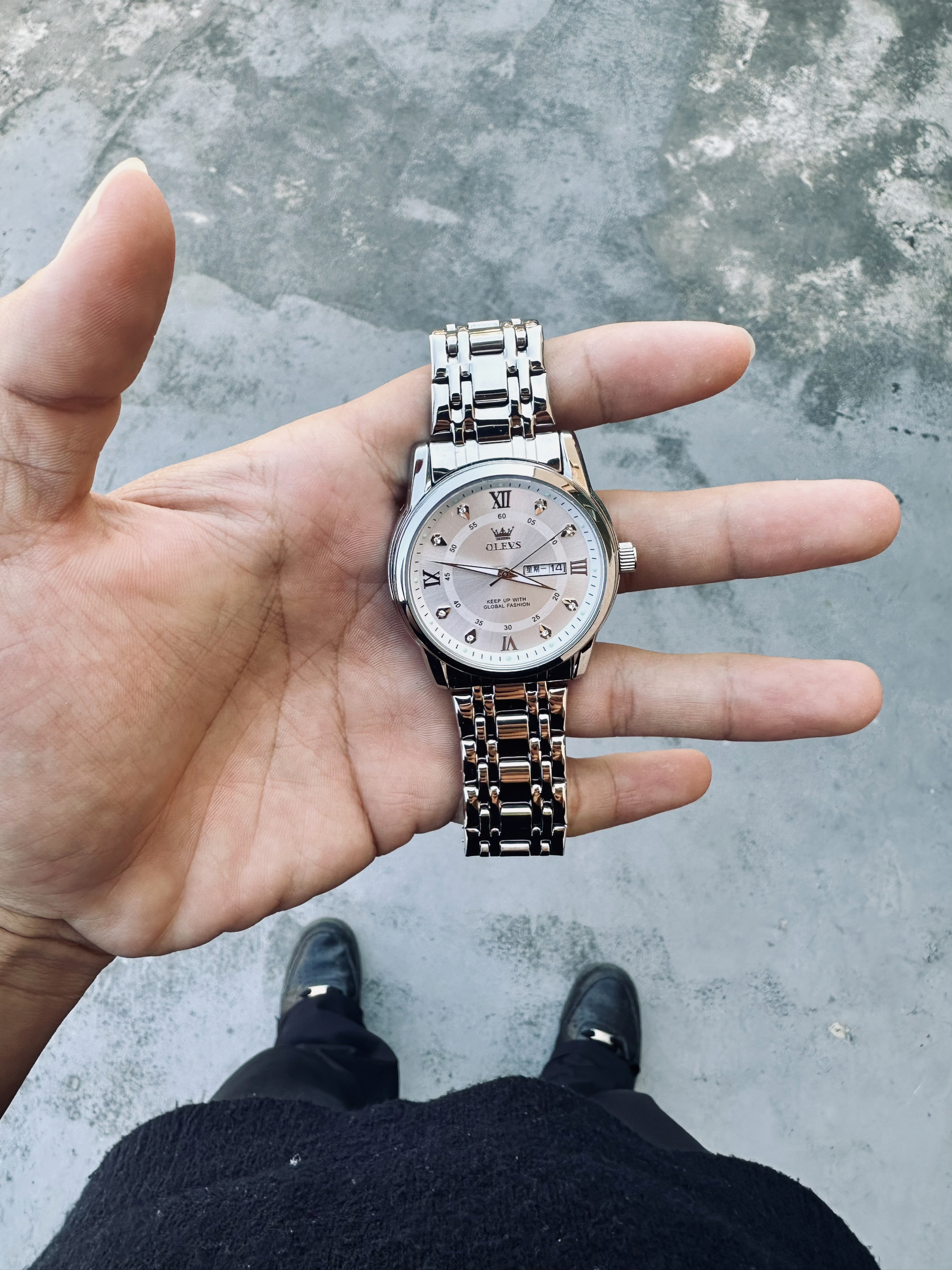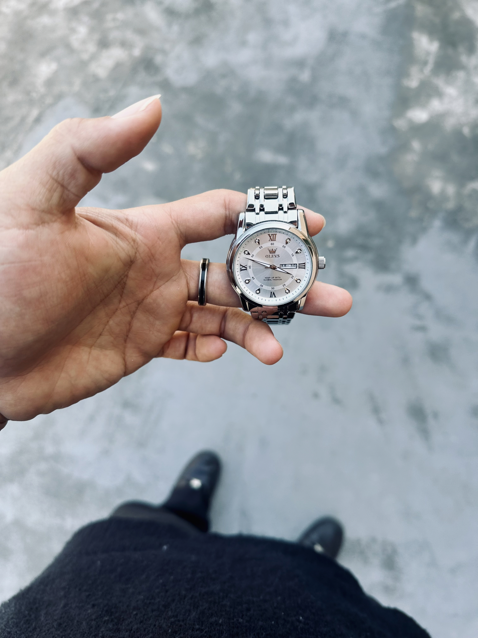 本篇笔记关联了OLEVS/欧利时 玩酷系列 经典时尚小巧钢带镶钻双日历夜光防水电子石英男女同款手表 银色等商品,为用户提供真实的使用体验和购买参考。
