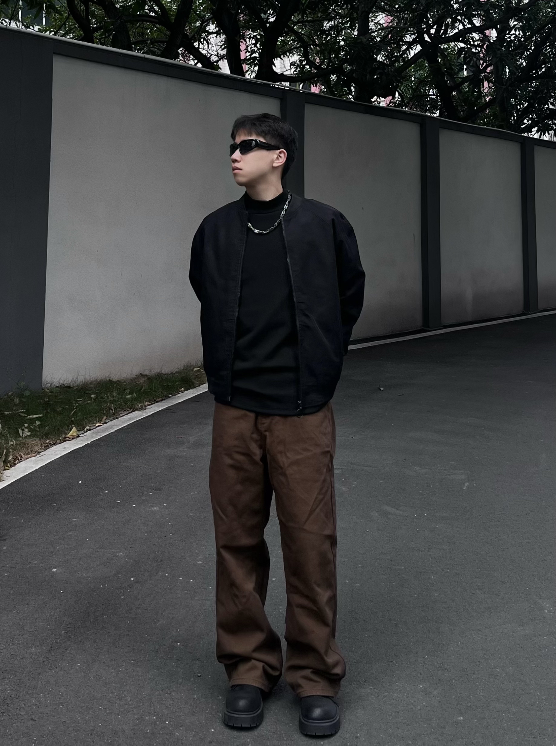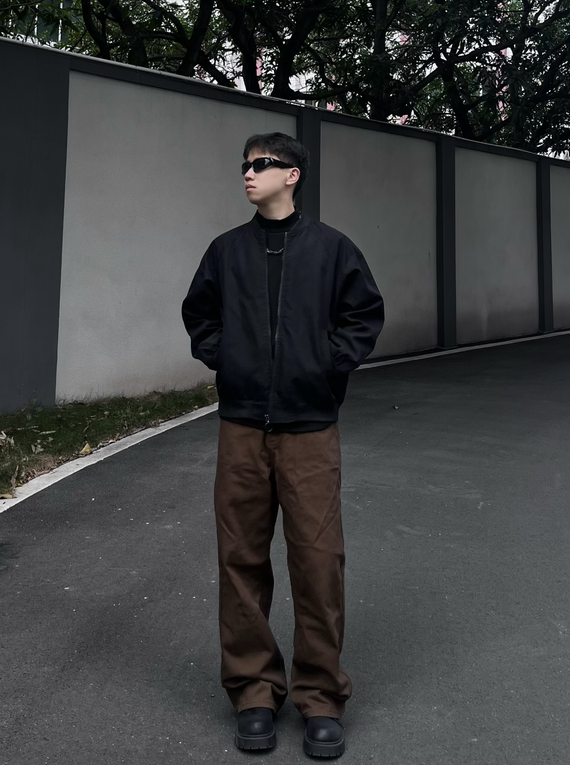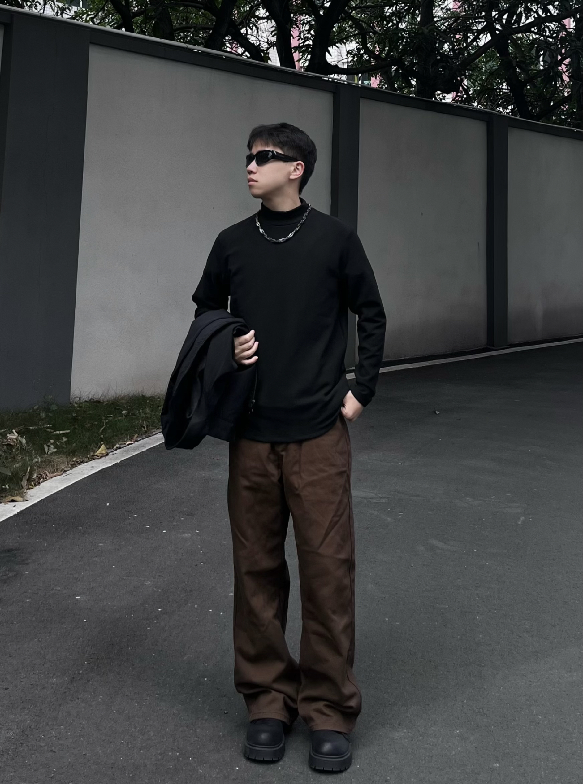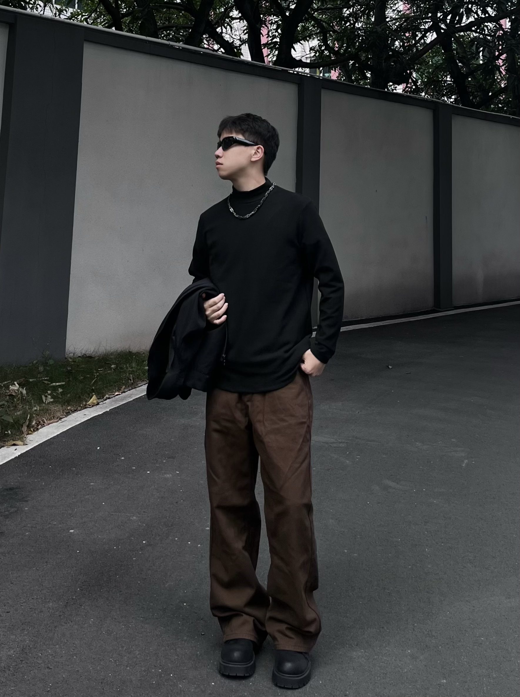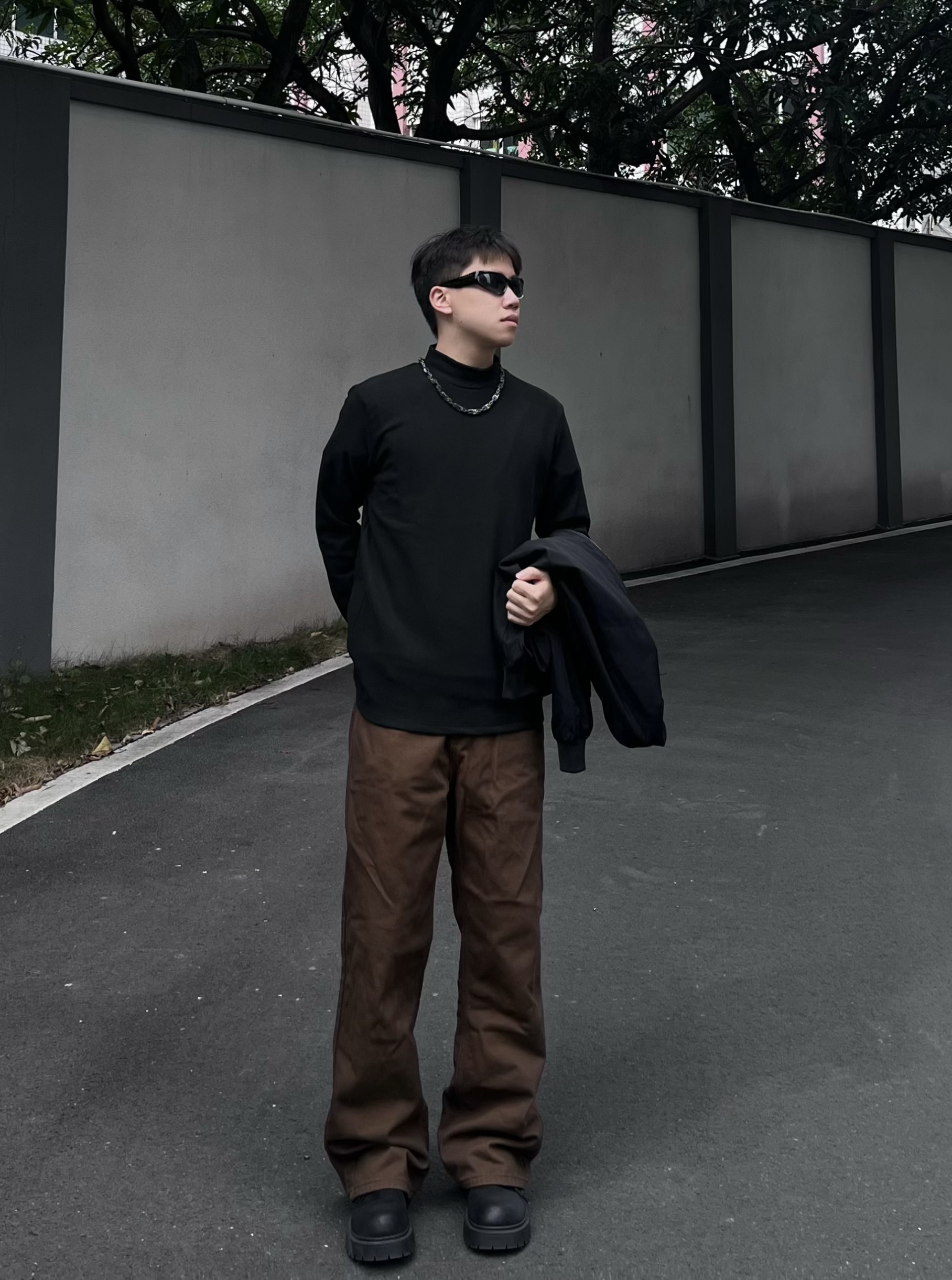 今日运动户外健身风穿搭!主打简约利落+舒适实用,兼顾日常出街和轻运动场景。 • 上衣:黑色高领打底衫,修身版型贴合身形,既能作为健身内搭,也能单穿提升利落感,面料亲肤透气,运动时也不闷汗。 • 外套:黑色棒球服夹克,经典立领+宽松版型,防风保暖,户外出行时可随时穿脱,机能感与街头感并存。 • 下装:深棕色直筒工装裤,垂感优秀,宽松裤型活动自如,耐磨面料适配户外行走与轻健身动作,实用性拉满。 ...