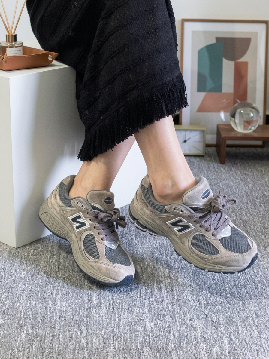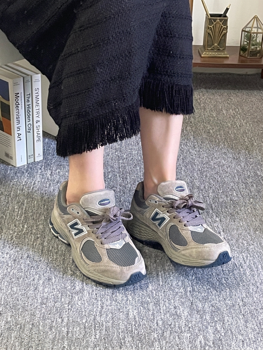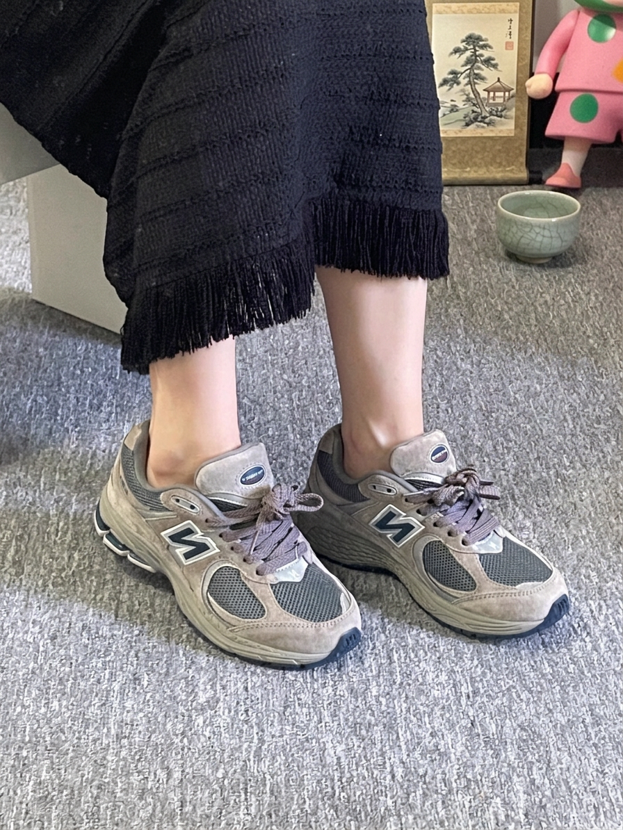 谁懂啊家人们! 这双NB2002R元祖灰真的是年度神鞋👟 上脚直接氛围感拉满 灰调复古感拿捏得死死的 麂皮+网面质感绝了 软乎乎的脚感巨舒服 日常暴走都不累脚 搭配黑色长裙温柔又随性 慵懒韩系风轻松get✅ 百搭又耐看 闭眼入都不会出错!