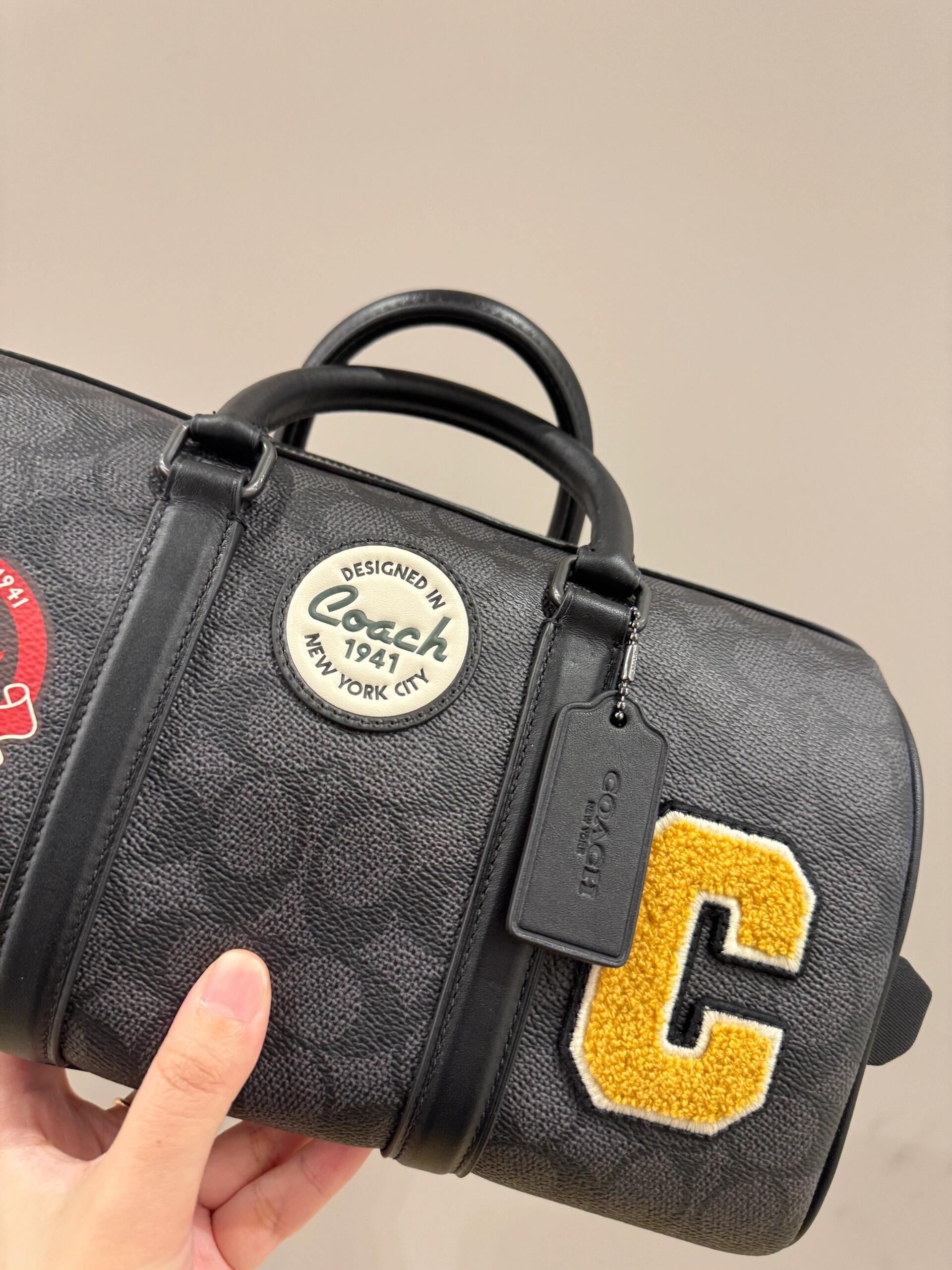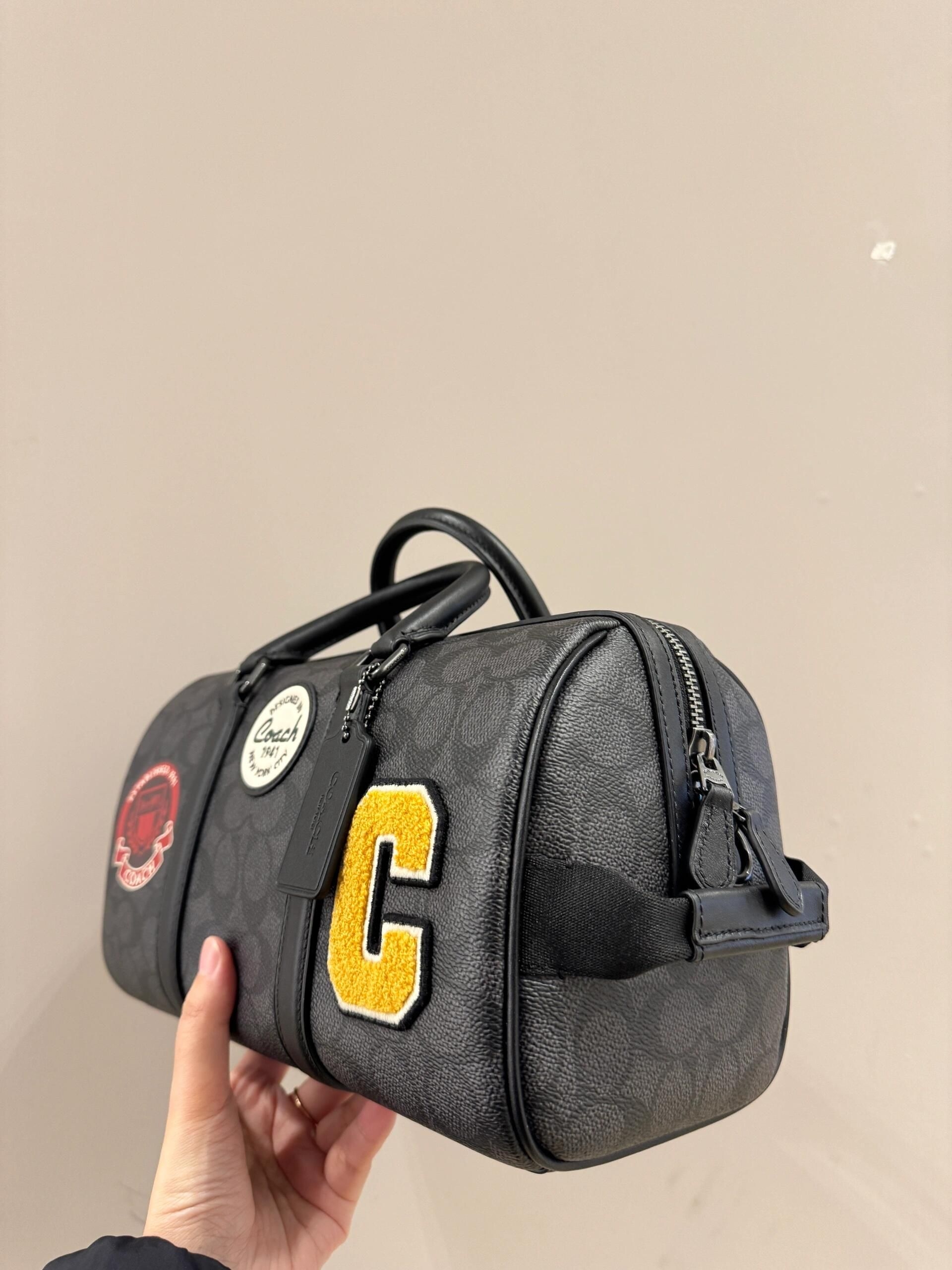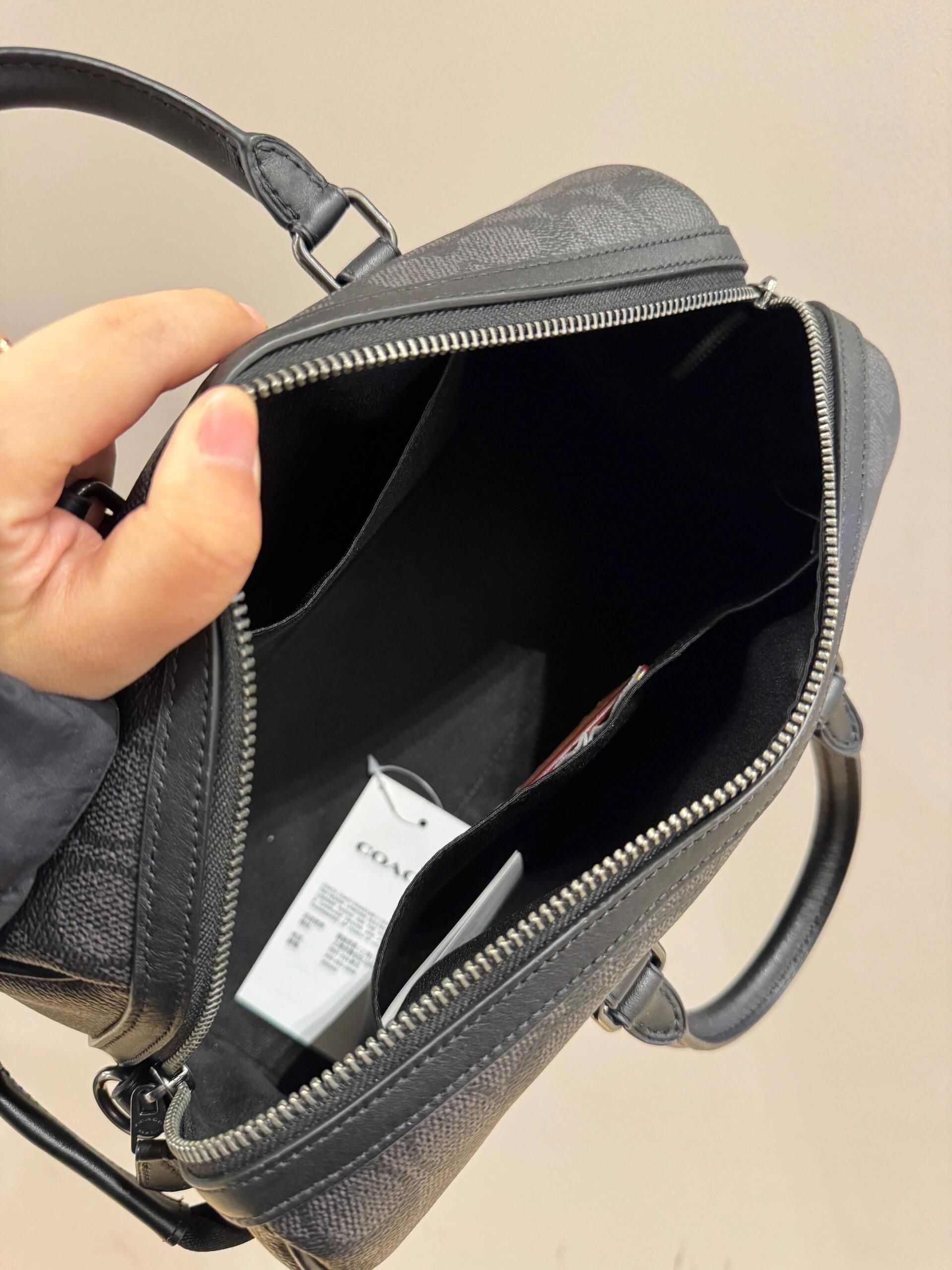 最近入的这款 **Coach男士小号旅行手袋** 真的绝了! ▪️ 黑灰老花 低调又高级,比传统棕色更年轻 ▪️ **小号尺寸** 超适合日常通勤,手机+钱包+钥匙轻松装 ▪️ **贴图老花** 设计,细节感拉满,不会老气 男生们,如果你们在找一款 **百搭不撞款** 的包,选它没错!👌