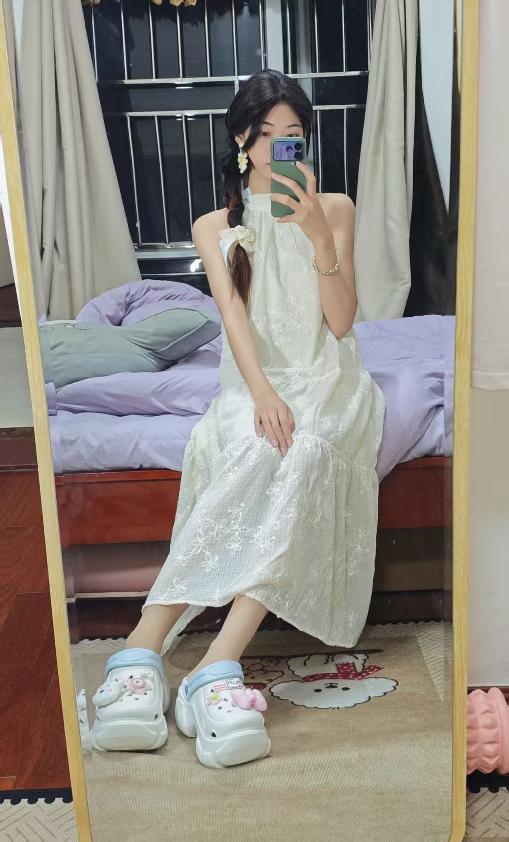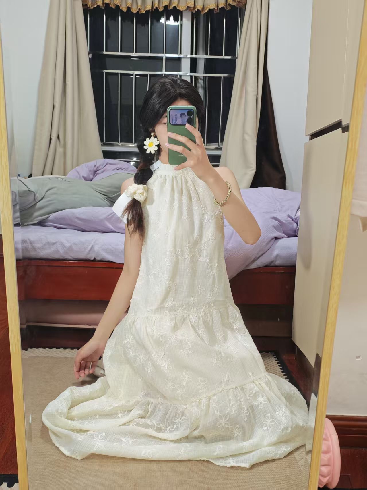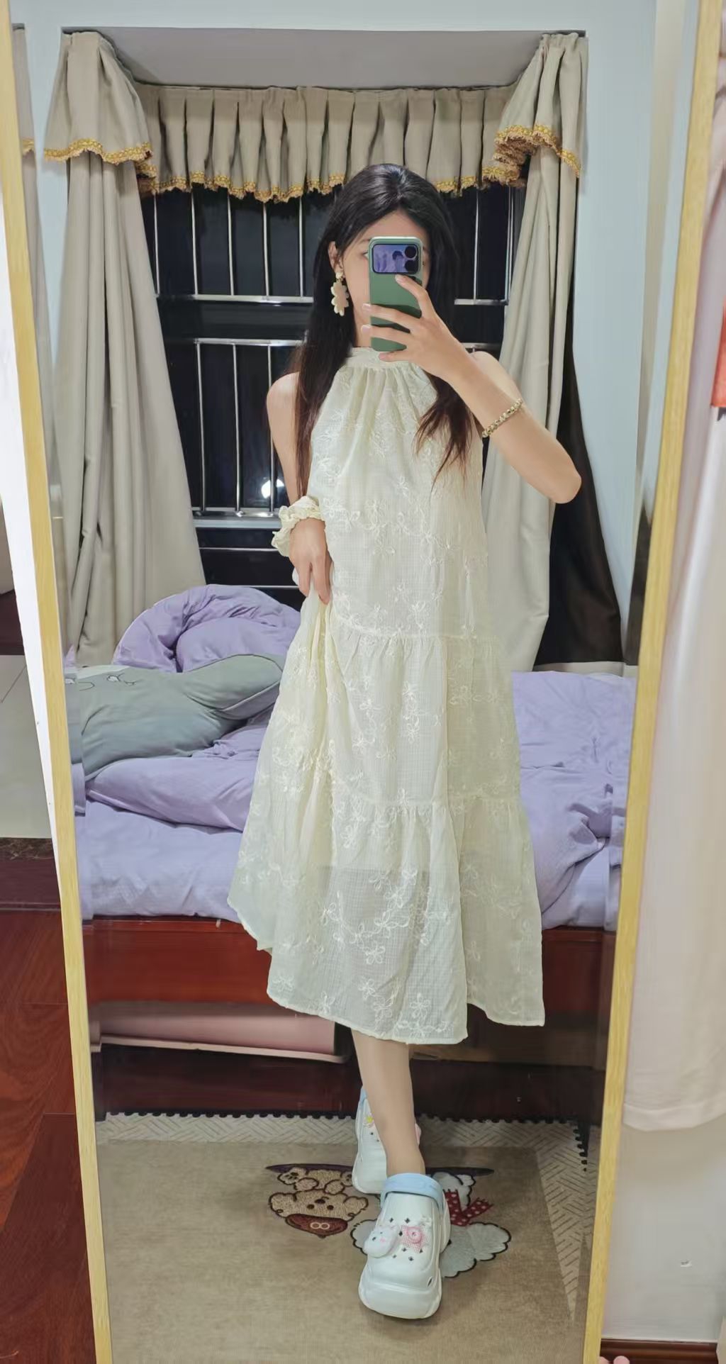 📸160/45kg 小个子穿搭|这条挂脖裙我直接封神! 家人们!挖到宝了!这条奶白挂脖裙也太适合小个子了吧! ✅挂脖设计:露肩不暴露,显肩颈线条,圆脸/短脖子姐妹闭眼入 ✅刺绣面料:质感超棒,透气不闷汗,夏天穿完全没问题 ✅大裙摆设计:遮胯藏肉,梨形身材直接冲,160穿长度刚好,显高又显瘦 ✅奶白色:不挑皮,黄皮姐妹也能穿,温柔感拉满 搭配麻花辫+小雏菊发饰,氛围感直接拉满,约会、拍照、日常穿都超...