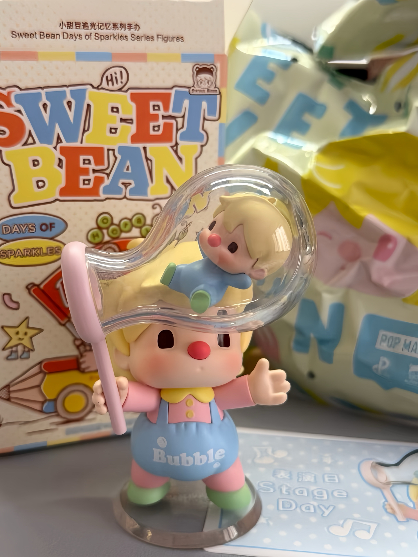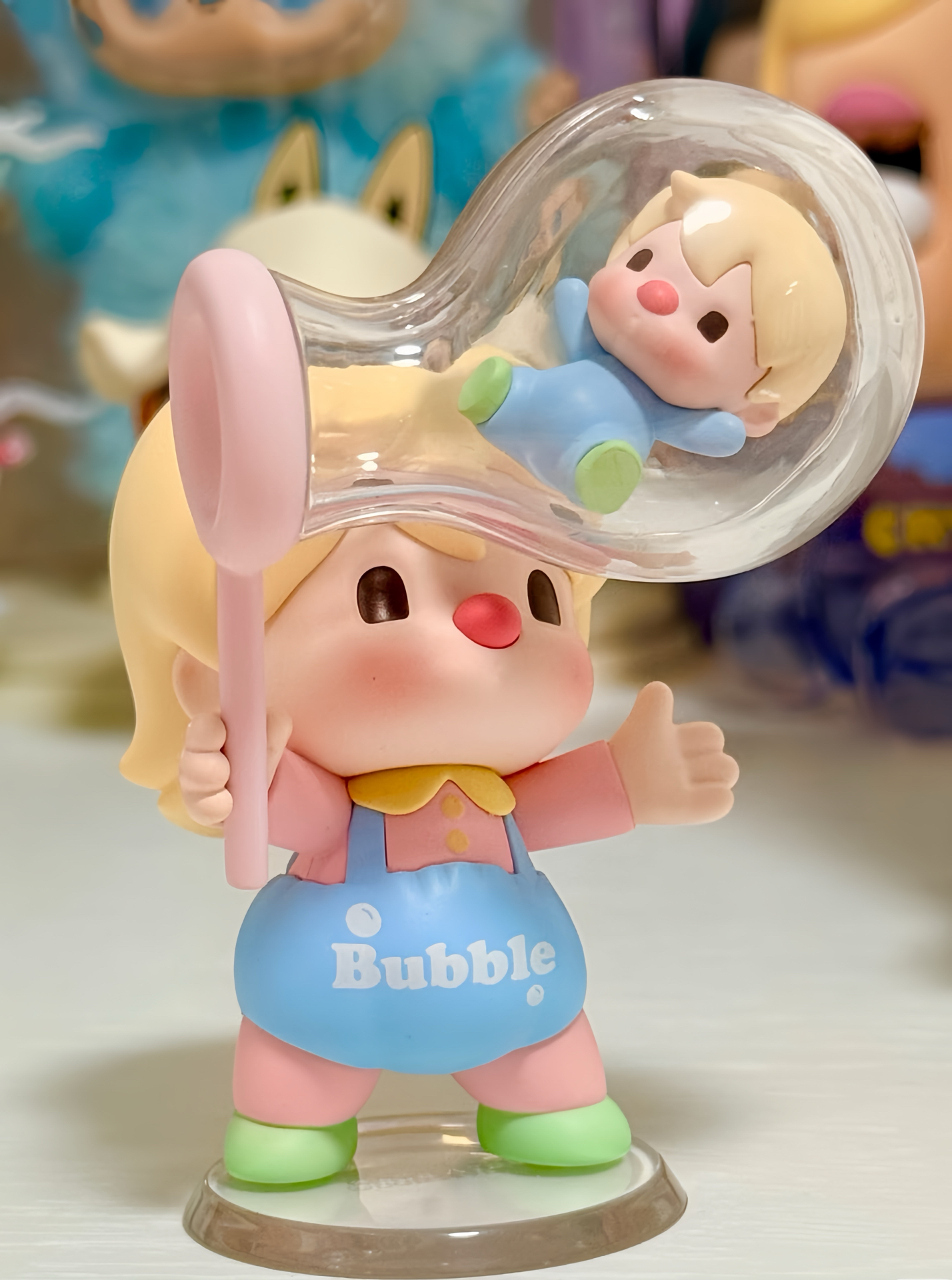 我抽到的这个粉蓝配色真的软萌到心巴上🥰 吹泡泡的设计超有巧思,透明泡泡里还藏着迷你版的自己 摆办公桌上,摸鱼时看一眼都觉得治愈!