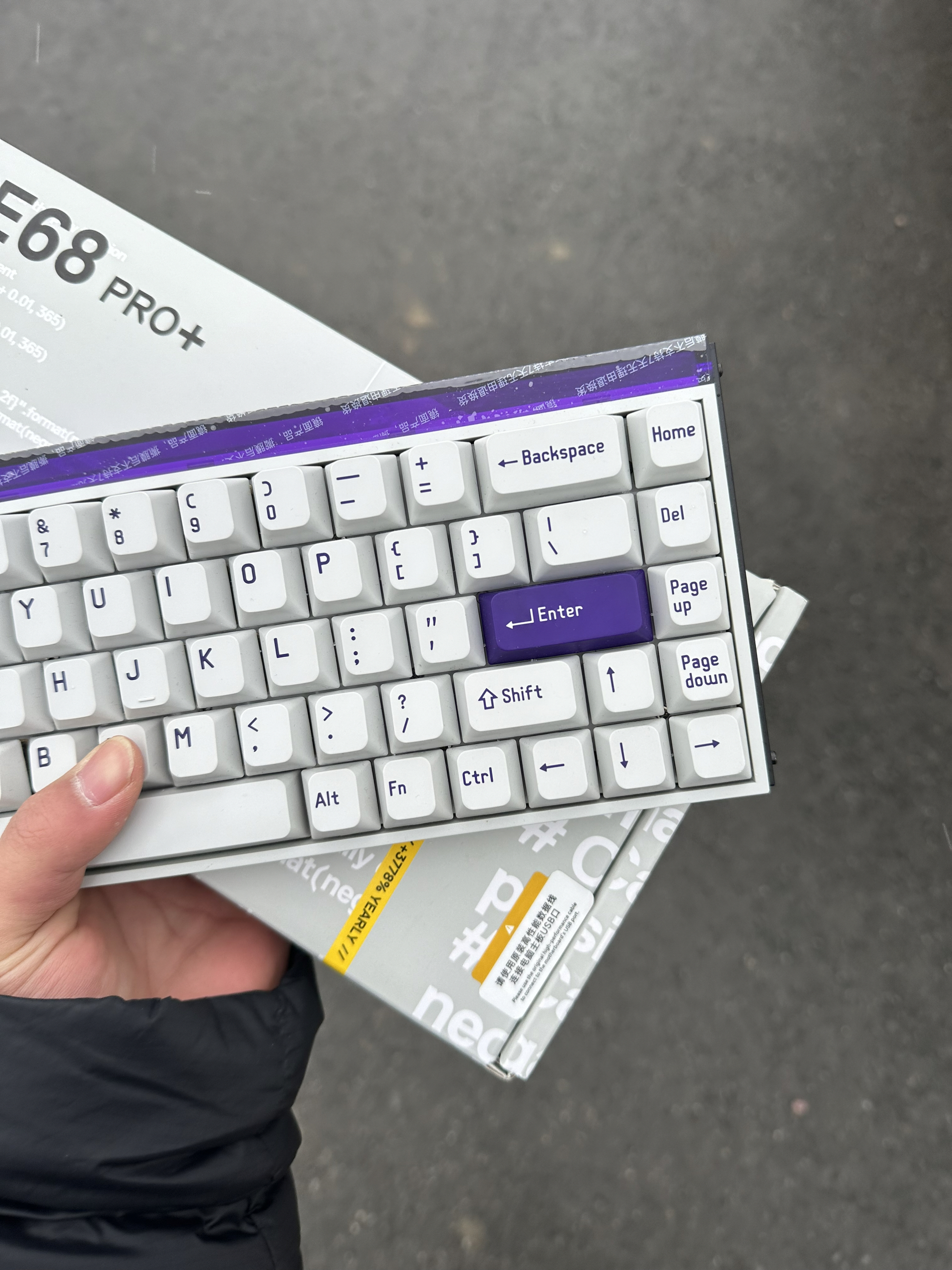 终于拿下了我心心念念的磁轴小蜜蜂Made68pro 白色键帽配上紫色灯箱 是我喜欢的键盘 68键的大小小布局布置 放在桌面上也不占空间 它利用磁力驱动,触发速度快如闪电 手指刚触碰到按键,指令就瞬间传达到游戏里 目前我想着改一下键盘的键帽 大家有推荐的吗?