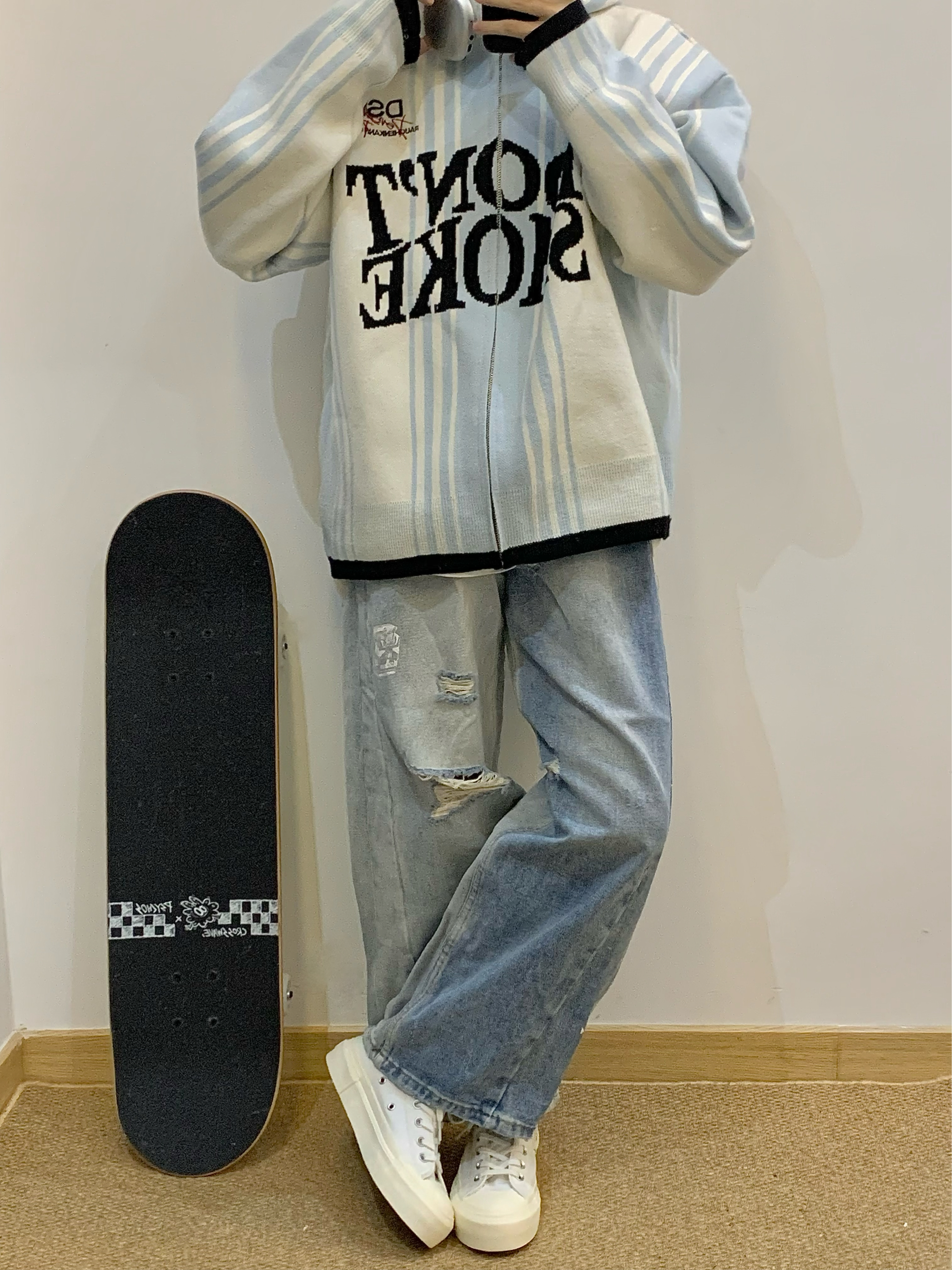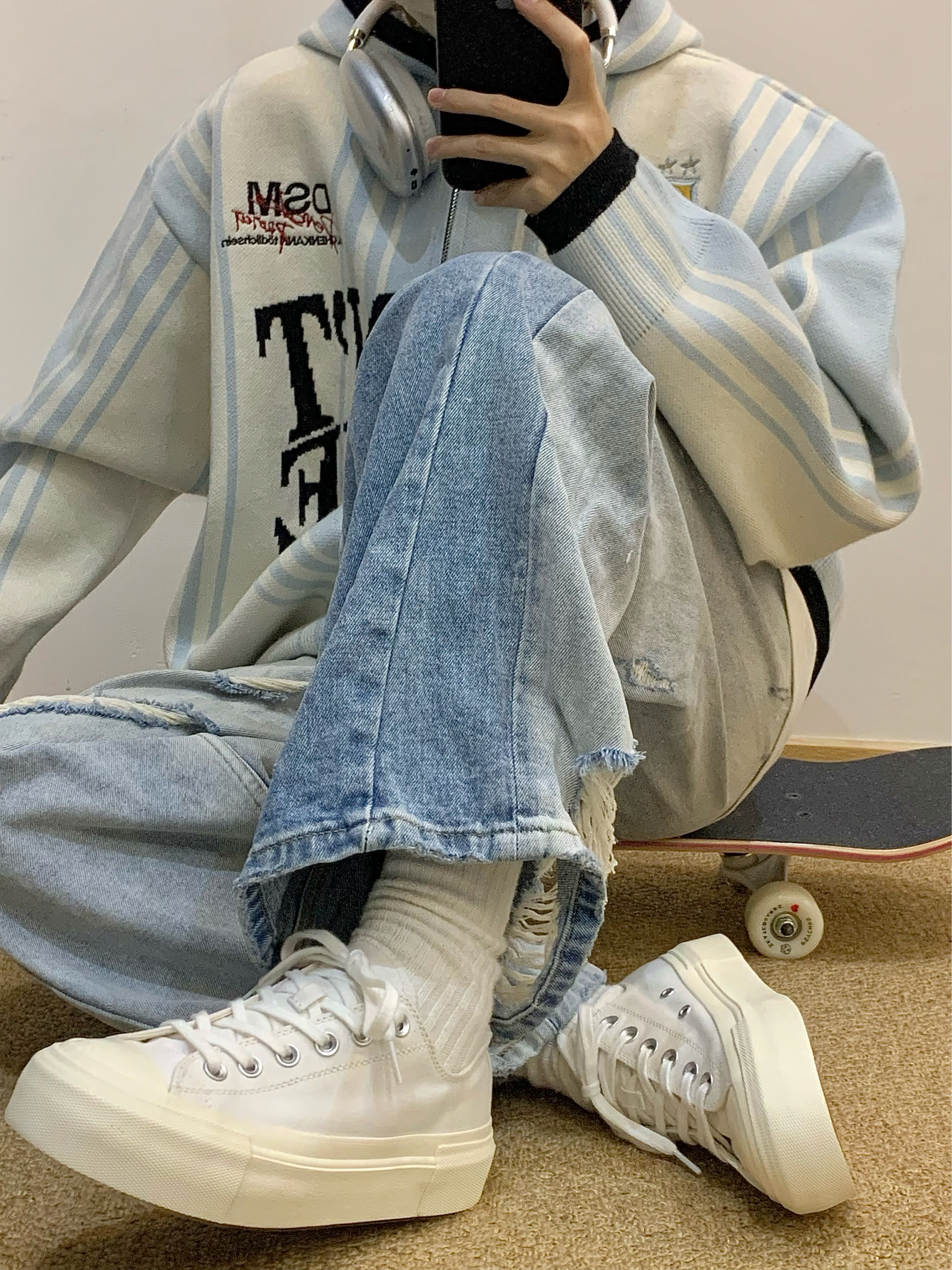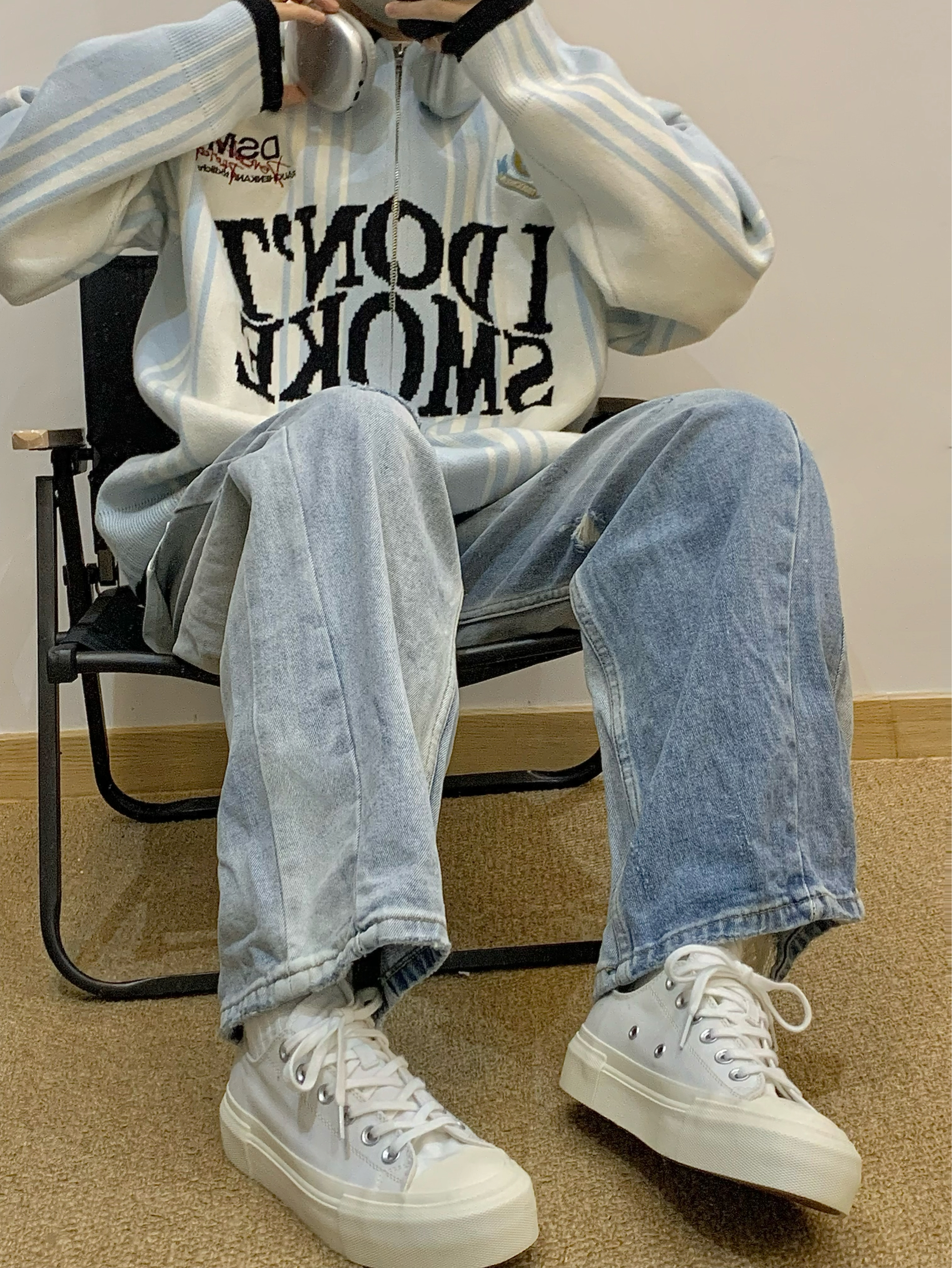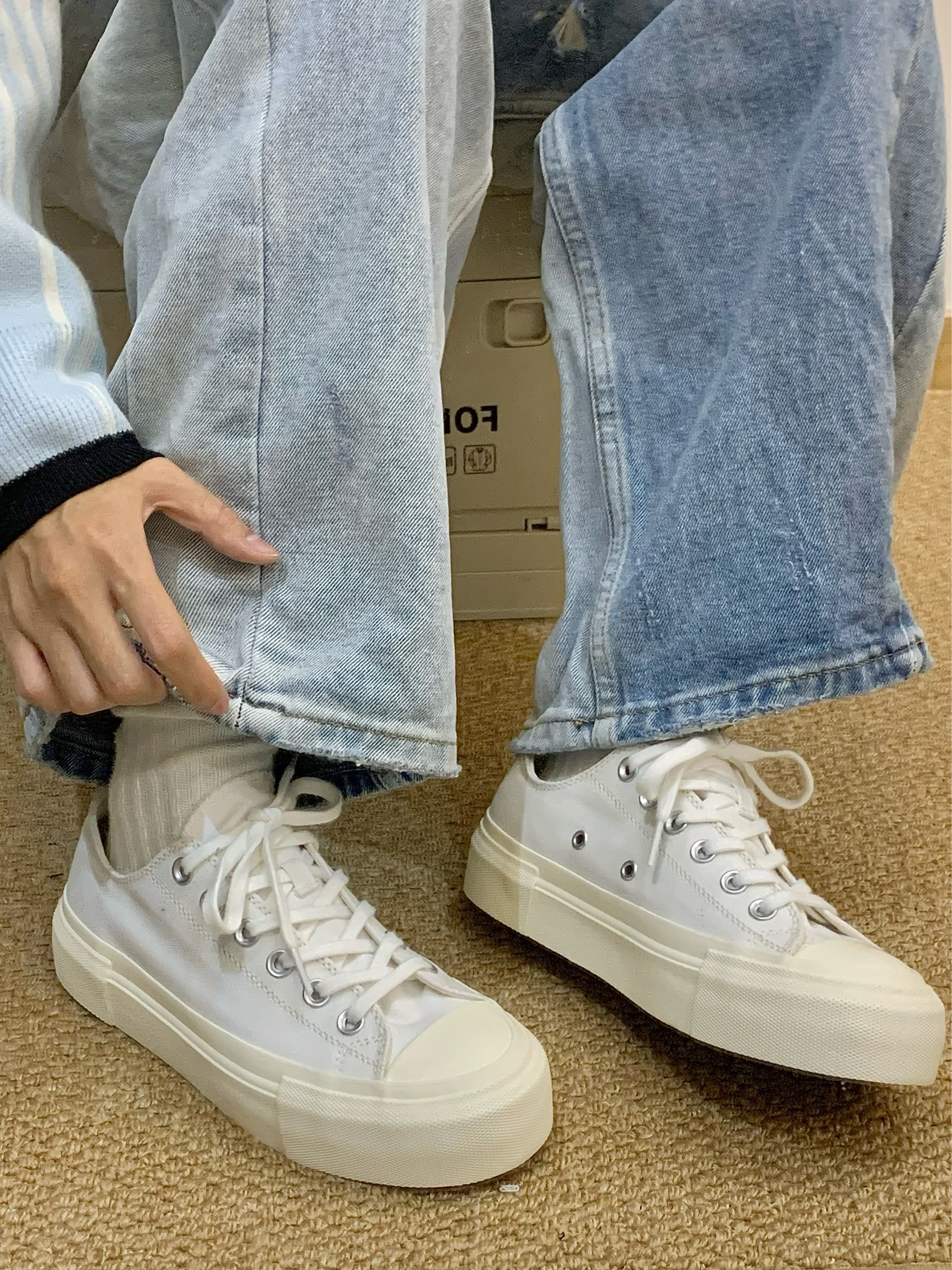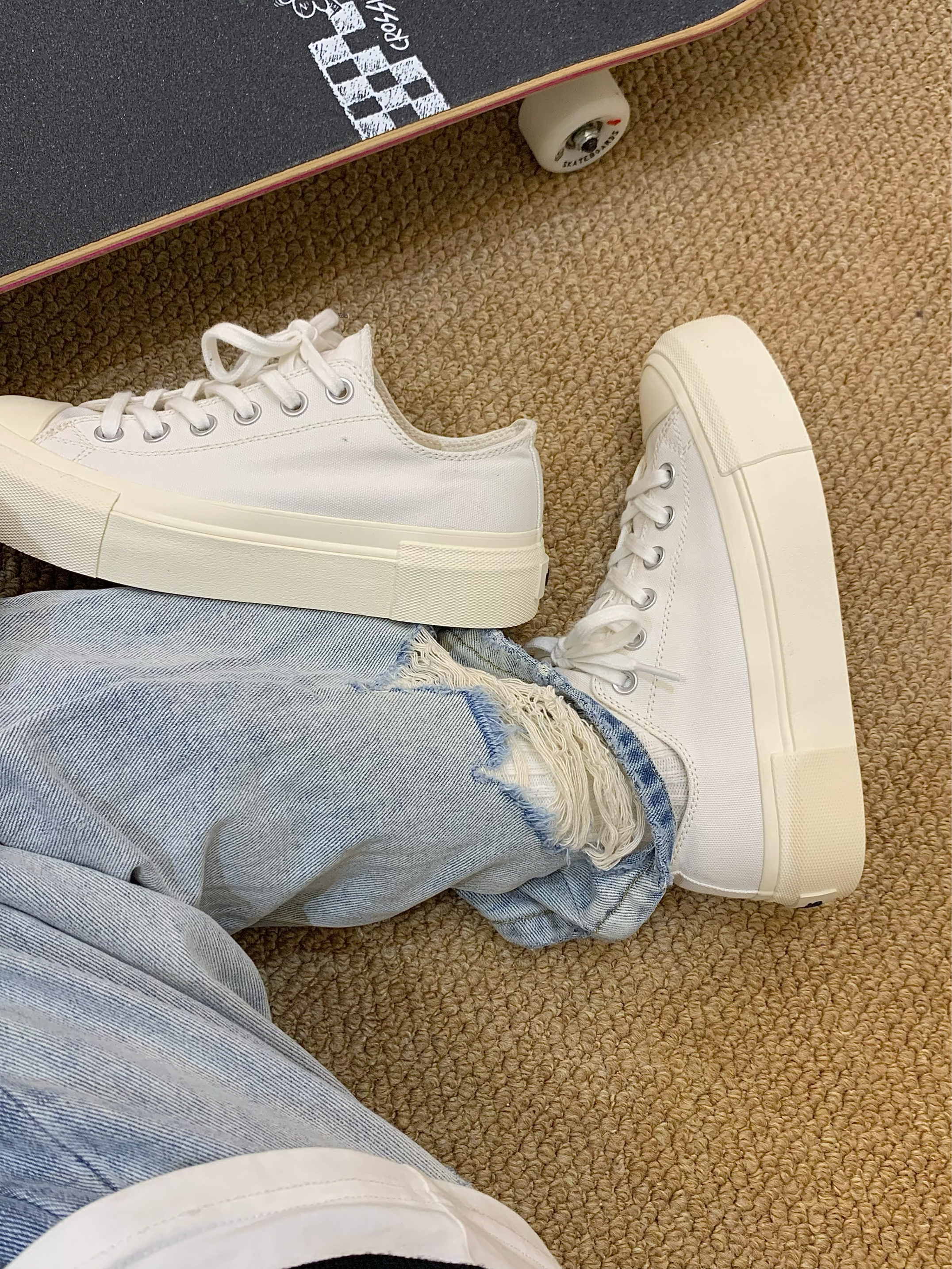 小白鞋真的超百搭 穿搭毫不费力 这种干干净净的颜色真的没有一点抵抗力 上脚柔软 像踩在棉花上一样 还有厚底增高的效果 搭配牛仔裤或者工装裤都很合适! 👟:veemes