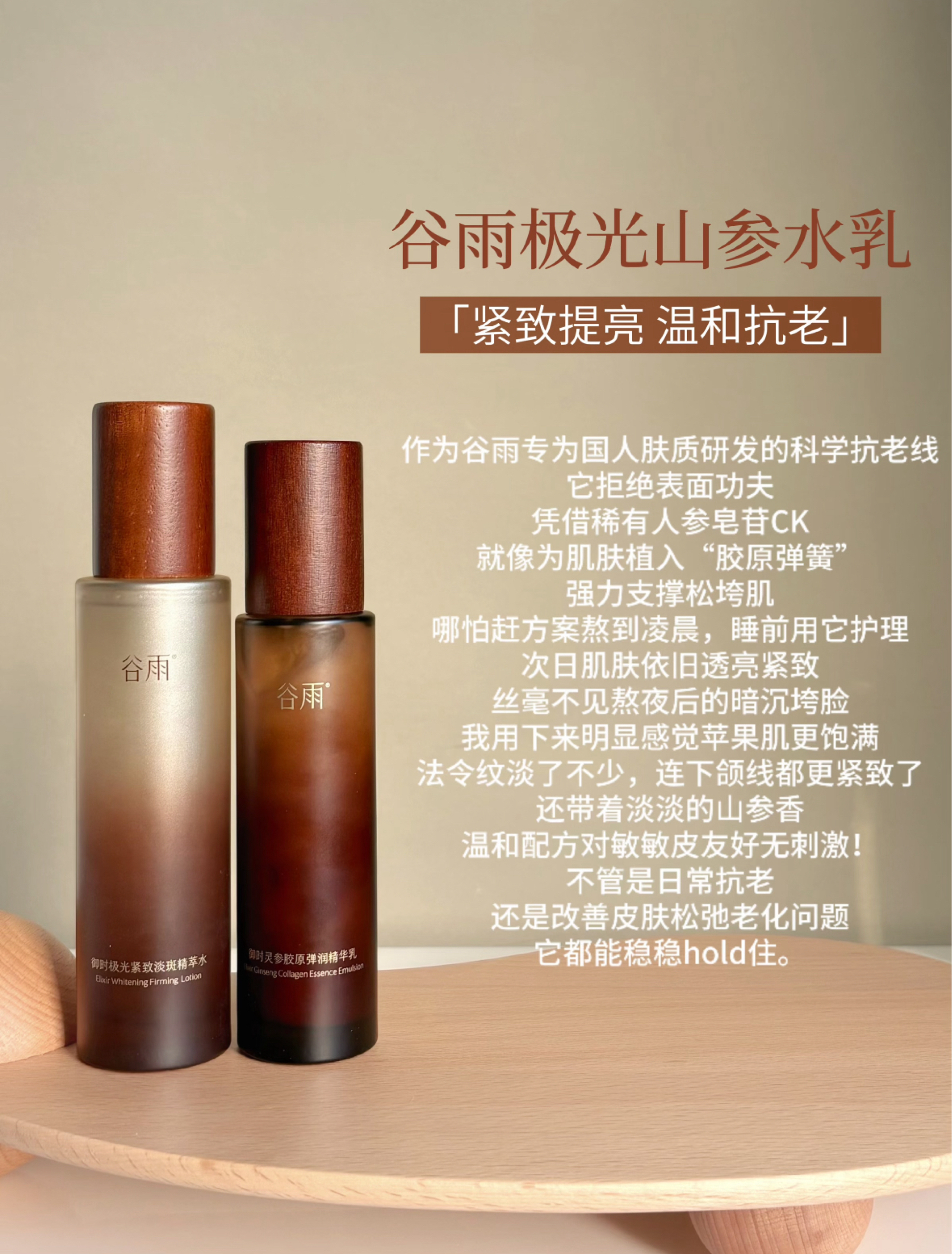 1. 谷雨极光山参水乳:「温和抗老,敏皮天菜」 • 适合肤质:所有肤质,尤其是敏感肌、暗沉松弛肌、有温和抗老需求的肌肤。 • 使用笔记:如果你是那种用猛药容易翻车的敏感皮,又想抗老,选它准没错。核心的稀有人参皂苷CK,是那种润物细无声地把皮肤“撑”起来的感觉。熬夜后用它,第二天脸不会垮掉,依然有光泽感。淡淡的草本参味很治愈,用下来皮肤确实更紧实饱满,法令纹有变浅,而且非常温和,皮肤状态稳得像坐...