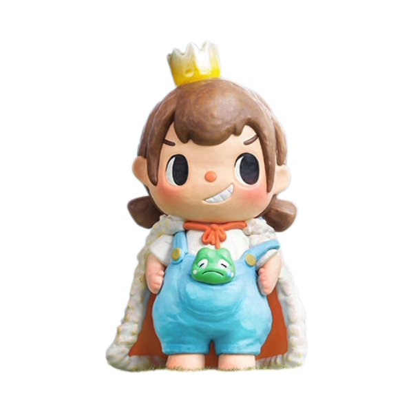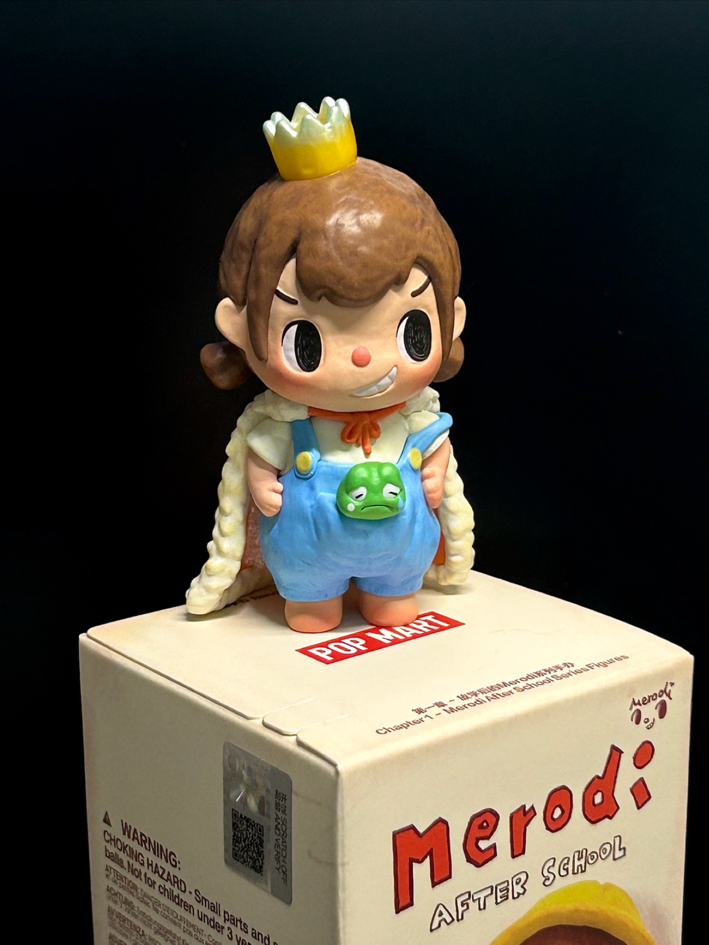 泡泡玛特新IP真的戳中我!👀 这个扎小辫的小丫头,背带裤上的哭唧唧青蛙、披风上的星星细节都超用心✨,摆工位上摸鱼看一眼就治愈!唯一小遗憾是皇冠有点容易蹭到~
