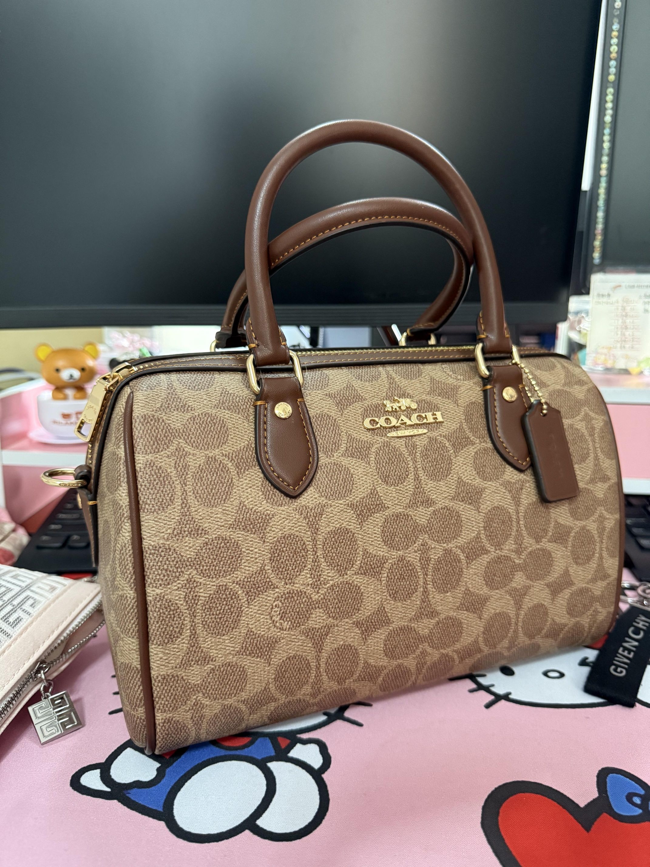 本篇笔记关联了Coach ROWAN 经典标志老花品牌徽标印花拉链开合涂层大容量人造革单肩手提包 棕黄色/棕色等商品,为用户提供真实的使用体验和购买参考。