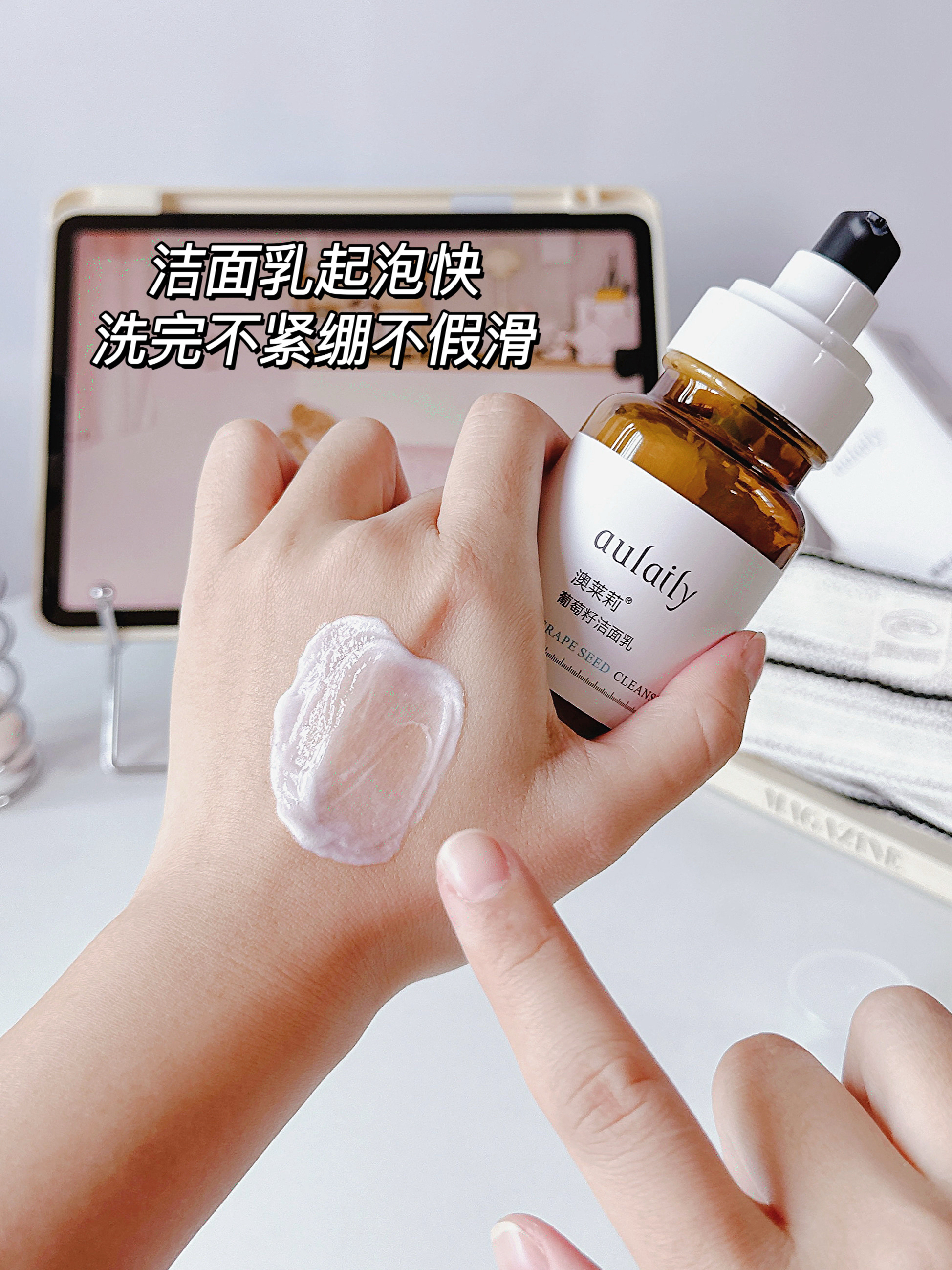 一到换季洗脸就成了难题 之前用的洁面洗完脸绷得难受 最近试了澳莱莉葡萄籽洗面奶 洗完真的有被惊喜到 它的泡沫绵密细腻~ 上脸比较温和不刺激 洗完脸是干净的清爽感 不会紧绷也不会假滑 葡萄籽成分换季用刚好 清洁力在线还能兼顾保湿 鼻翼两侧出油多的地方 我多揉搓几下也能洗干净 这洁面价格对学生党也友好哦 你们换季会换洗面奶吗?