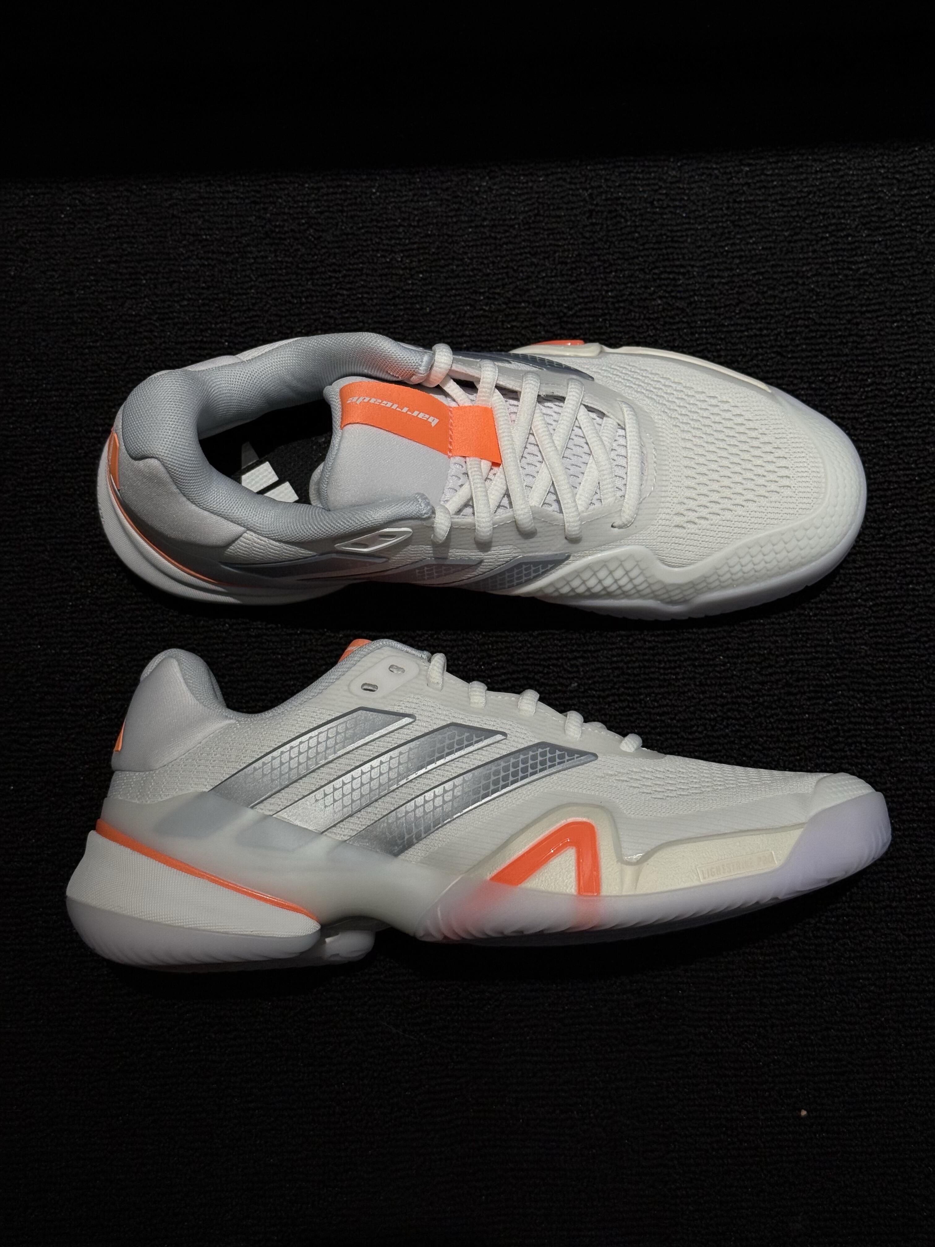 阿迪网球鞋里的硬核实力派来了!Barricade 14 全新上线🔥 adidas BARRICADE 14 真的精准戳中审美与实用双重需求,直接满分种草💯 清爽浅灰搭配活力橙细节,低饱和色调高级又耐看,低调不张扬却自带亮点。不管是上场打球,还是日常配休闲裤、牛仔裤,都百搭又有型,轻松穿出运动高级感。 鞋面采用透气网布材质,通风不闷脚,高强度运动也能保持干爽。鞋底支撑扎实、回弹在线,急停、变向...
