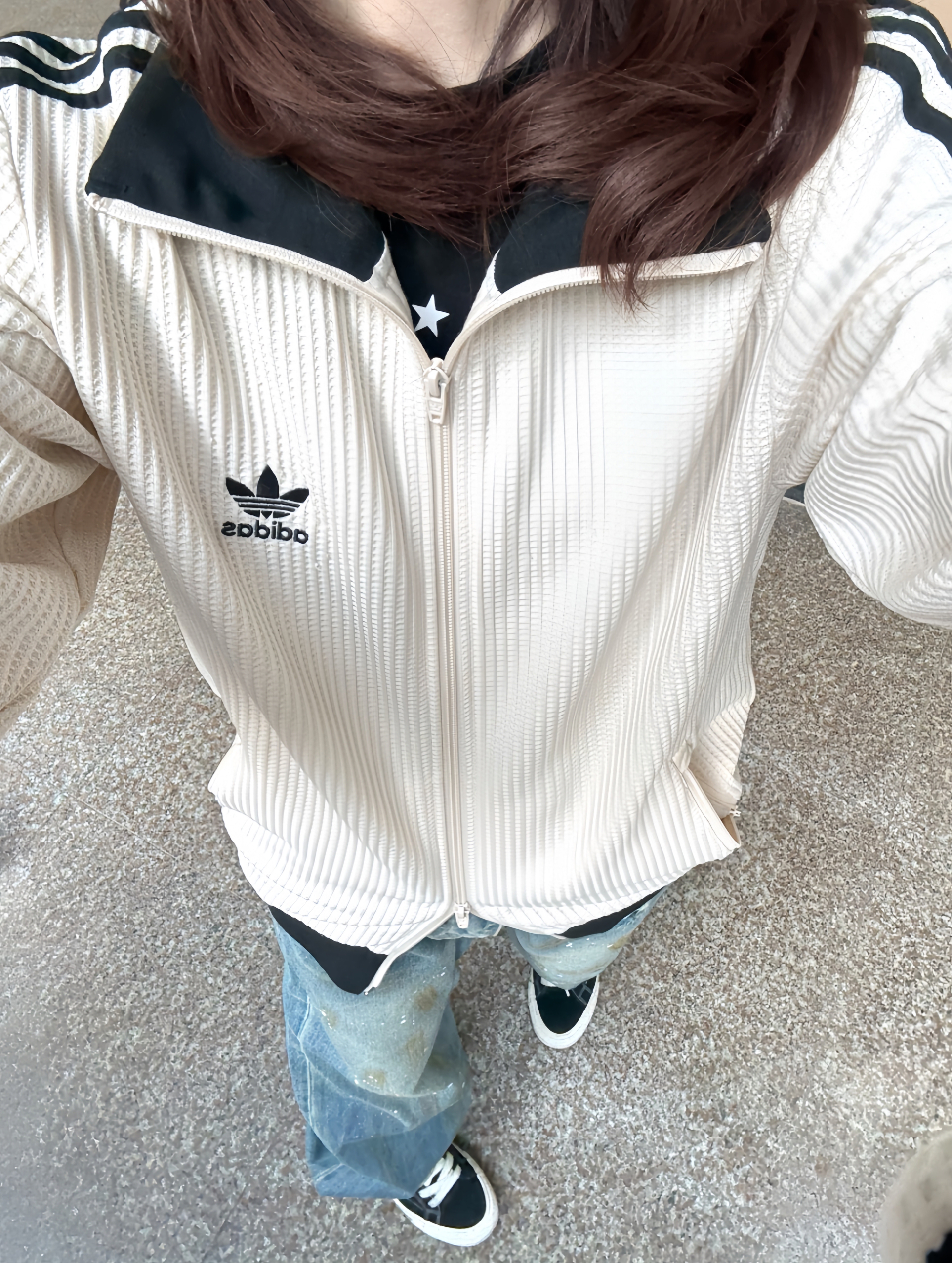 adidas三叶草这件米白色立领夹克真的是我今年挖到的宝藏单品🥹 ✅首先颜值真的没话说 经典三条杠➕三叶草标 米白撞黑的配色真的太戳我了 完全不挑人 随便搭都好看 灯芯绒的面料质感绝了 摸起来软乎乎的 上身巨舒服 宽松版型对身材包容度超高 藏肉显瘦一把好手 春秋单穿 冬天内搭都合适 实用性拉满✨ ❌也有几个小缺点要跟大家说清楚 首先价格确实不算便宜 1k+的预算要考虑好☘️还有就是洗的时候要注...