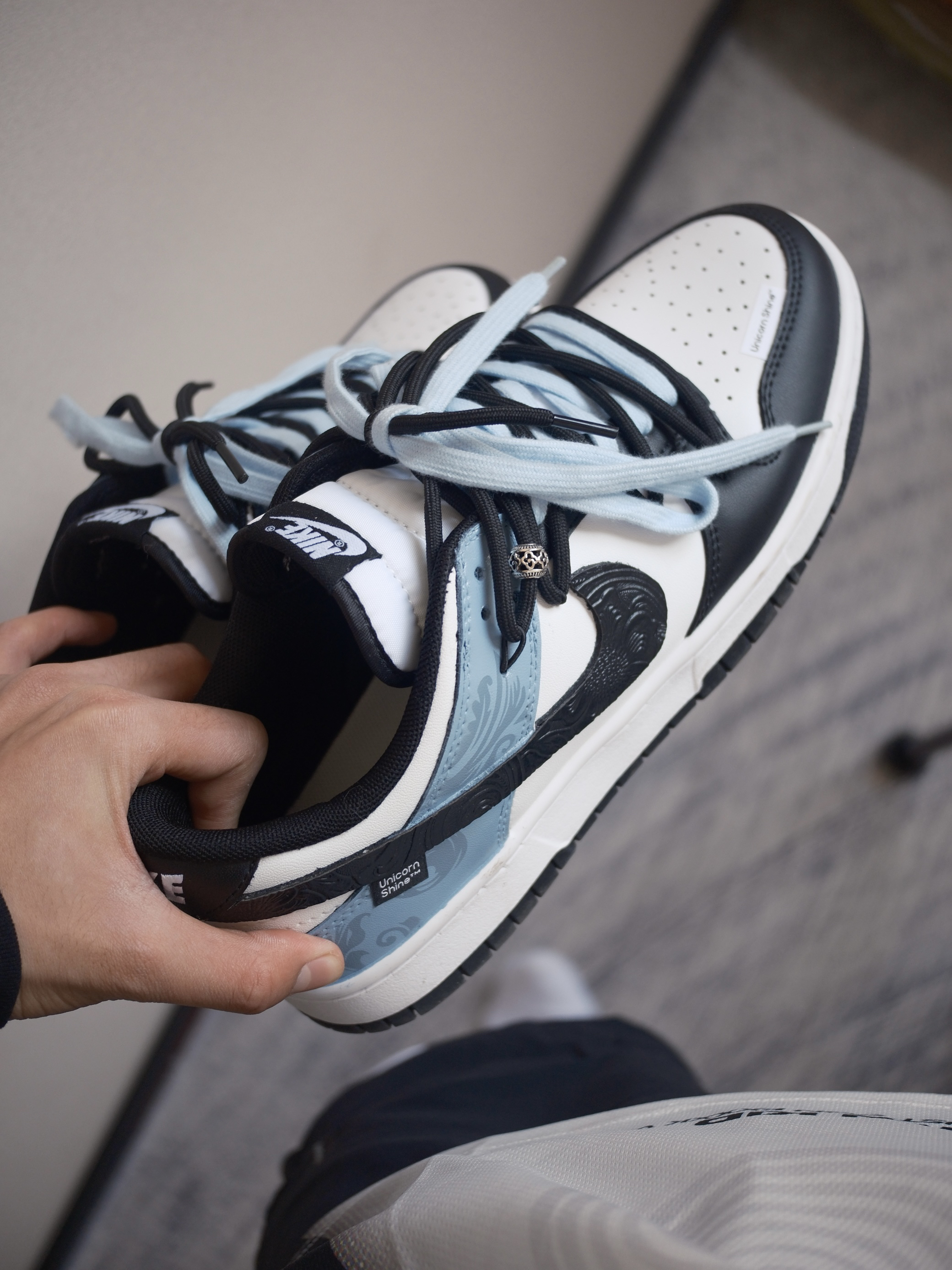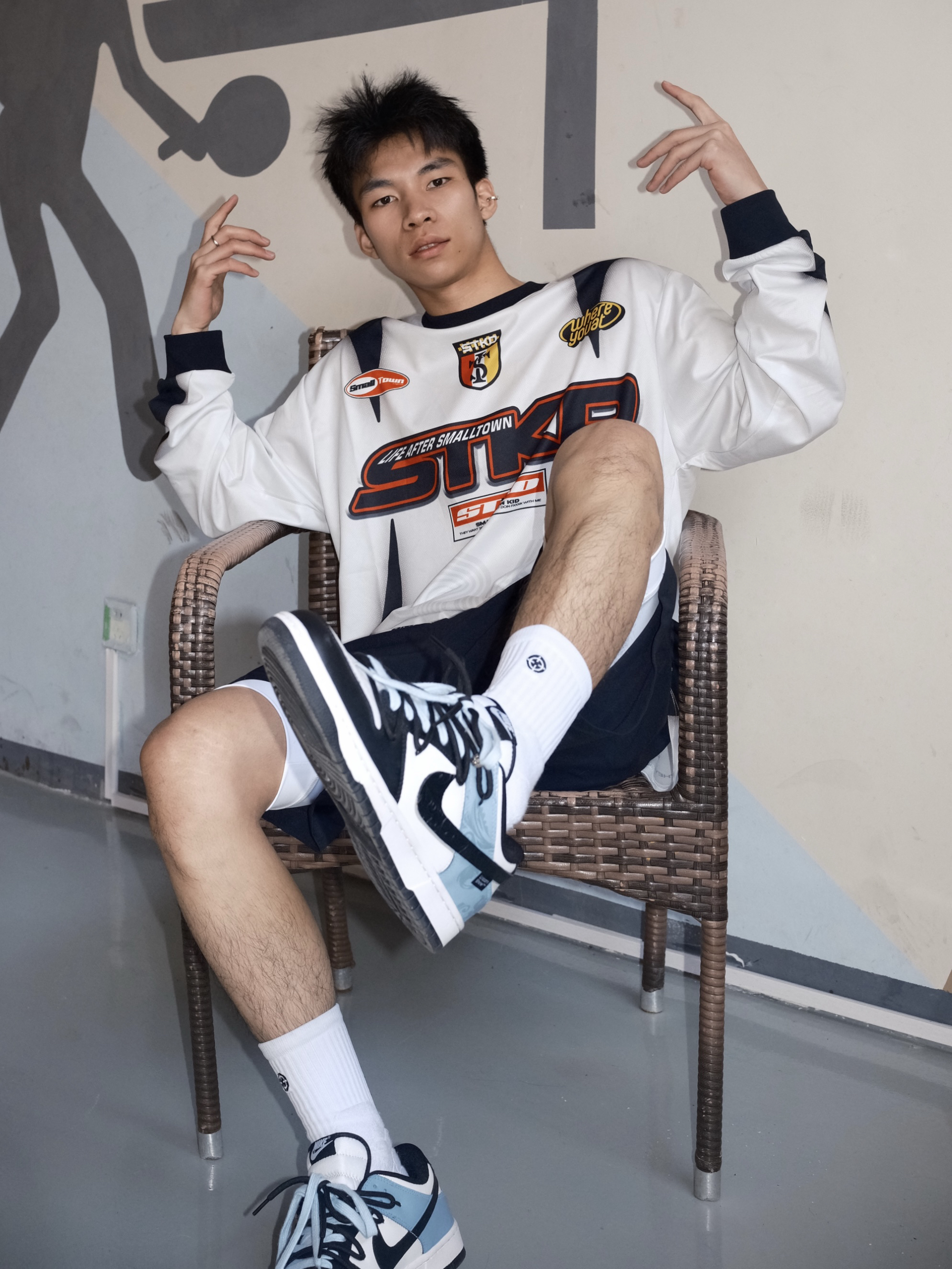 简单穿搭也能穿出态度📸 今天的穿搭是黑白撞色球衣+运动短裤 用一双Nike球鞋点亮整体造型 现在的球鞋可以定制了 这双nike赢鱼配色 在基础款DUNK的基础上做了改进 我很喜欢他的鞋带设计 一共有两条 颜色白蓝上脚也是非常百搭 脚踩经典鞋款,每一步都自带气场。 日常出街不用复杂搭配,舒服自在就好 让球鞋成为整套look的点睛之笔👟👟