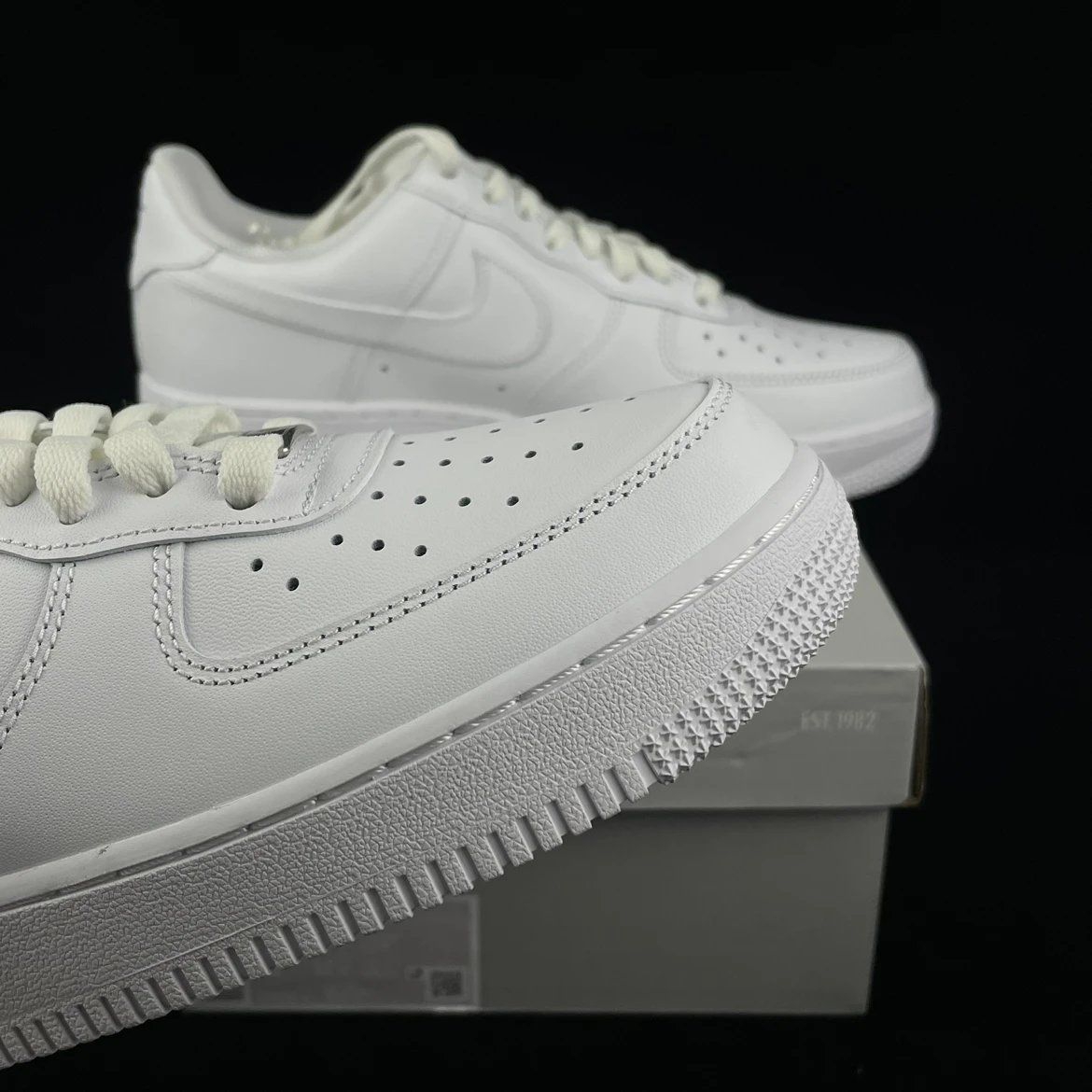 经典永不过时的Air Force 1,纯白配色自带干净高级感,全粒面皮革质感细腻,走线工整,不管是学生党还是通勤族都能轻松驾驭,是鞋柜里的百搭刚需款。 厚实的Air气垫缓震舒适,久穿不累脚,经典橡胶外底防滑耐磨,日常走路、轻度运动都适配。鞋型修饰脚型,低帮设计露出脚踝,显腿长效果拉满。 纯白底色自带改造空间,DIY涂鸦、换鞋带都能玩出花样,耐脏易打理,轻微污渍一擦即净。作为出道四十余年...
