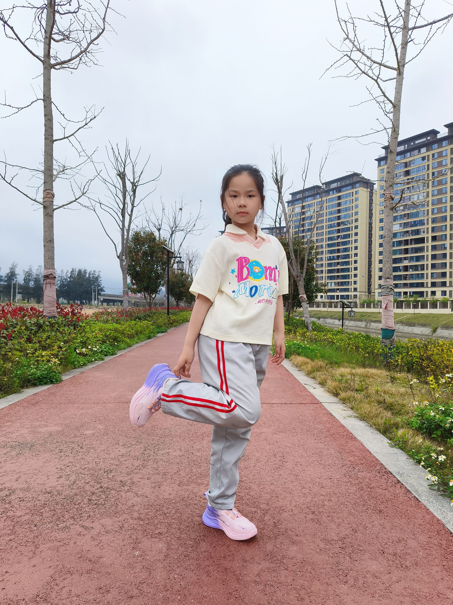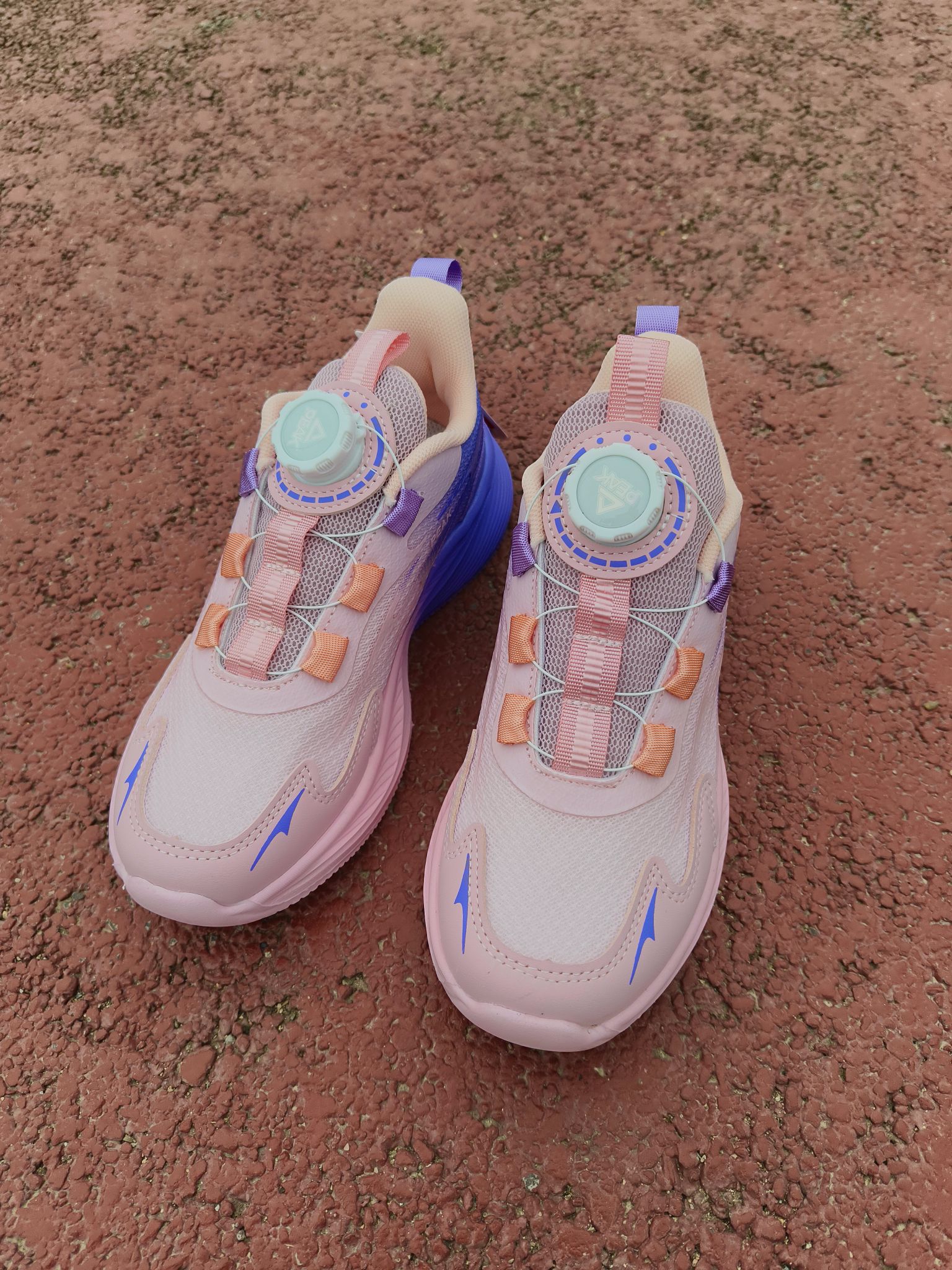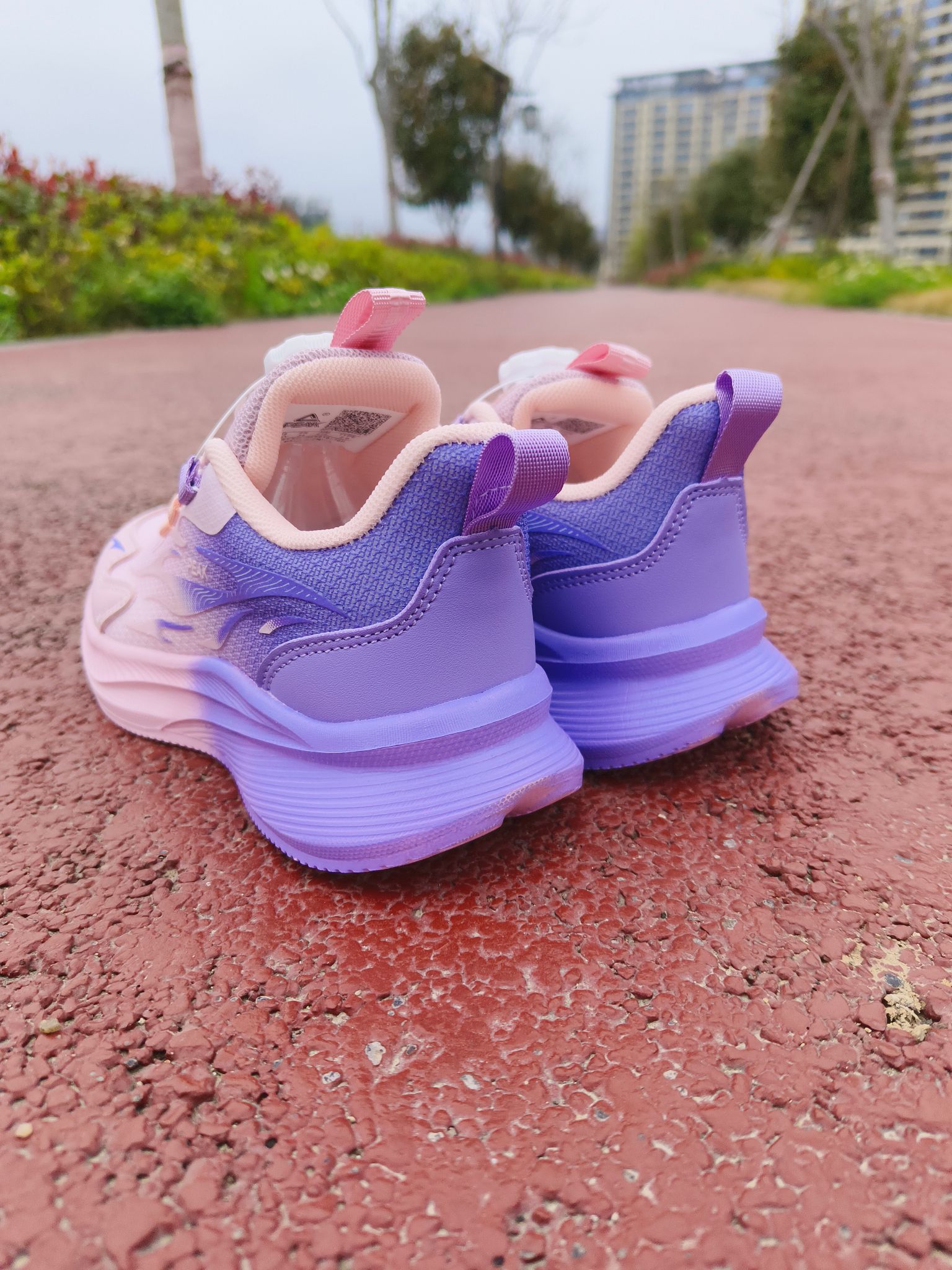 穿脱是真省心,不用系鞋带,那个旋钮一拧一按就行。娃自己就能搞定,早上出门能快好几分钟,对我这种懒人家长太友好!✨鞋拿手上就没什么分量,孩子穿上说跟没穿一样,跑起来没负担。🏃♂️天天在学校石子路、塑胶跑道来回造,鞋底花纹深,抓地挺稳的,没见他打滑过。下雨天踩瓷砖地也放心了点。蹦跳的时候能感觉鞋底把劲儿接住了,跑起来有那种回弹感,对膝盖好。