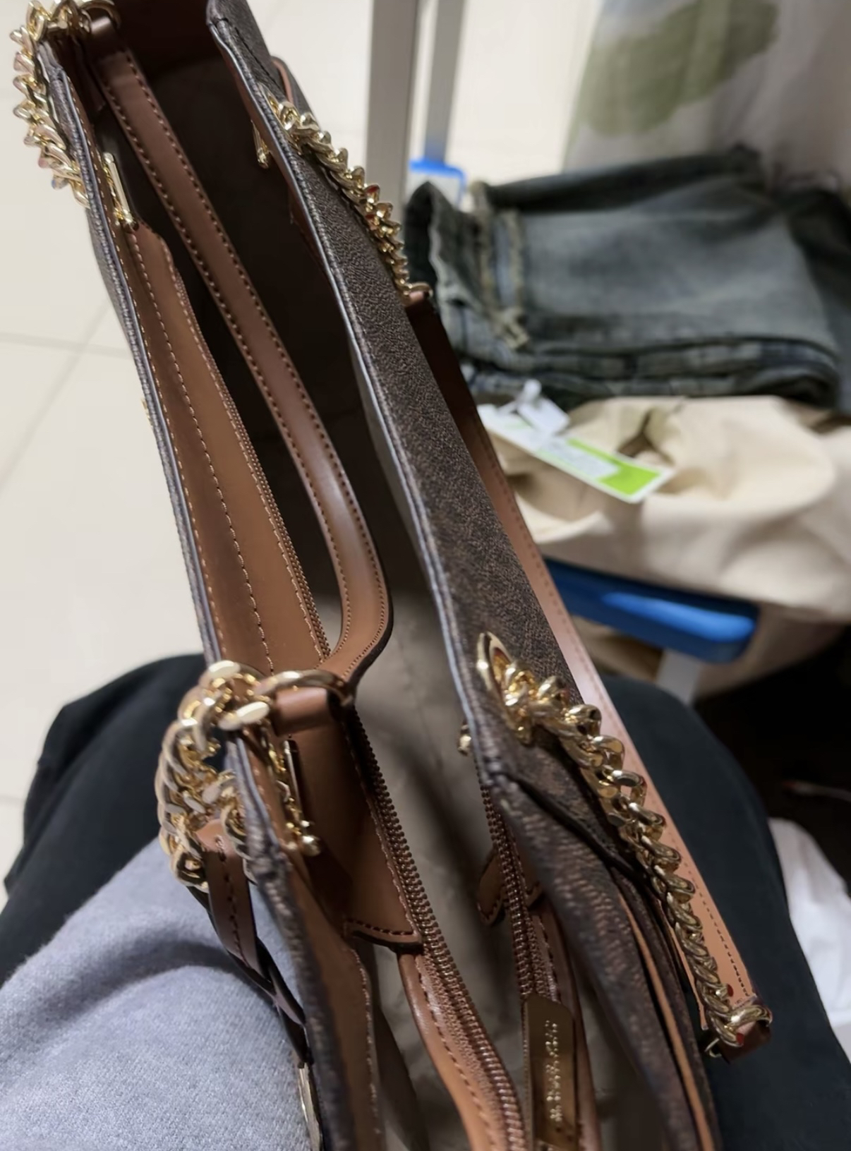 本篇笔记关联了Michael Kors 大号 金属色徽标印花拉链开合涂层帆布手提单肩包 棕色 等商品,为用户提供真实的使用体验和购买参考。