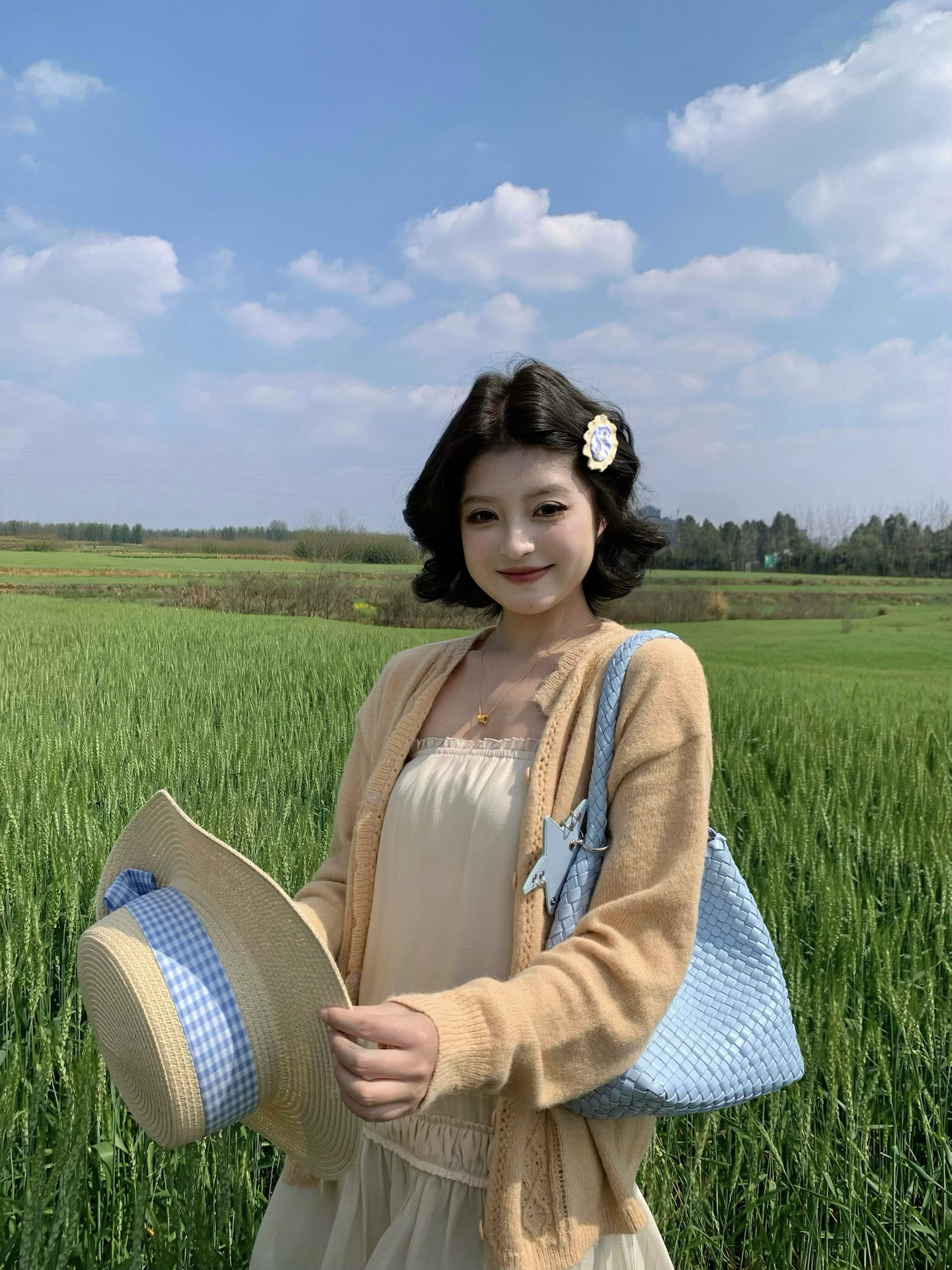 周末去麦田撒野,特意背了刚入的浅蓝编织包💙,奶fufu的颜色和春日草地太搭了,拍照巨出片!容量够大,装得下遮阳帽、水杯和补妆品,日常通勤也能用。唯一小缺点是没有夹层,找东西得翻半天,不过百元价位能有这质感,学生党、喜欢田园风的姐妹都能冲~ 图源网络侵删