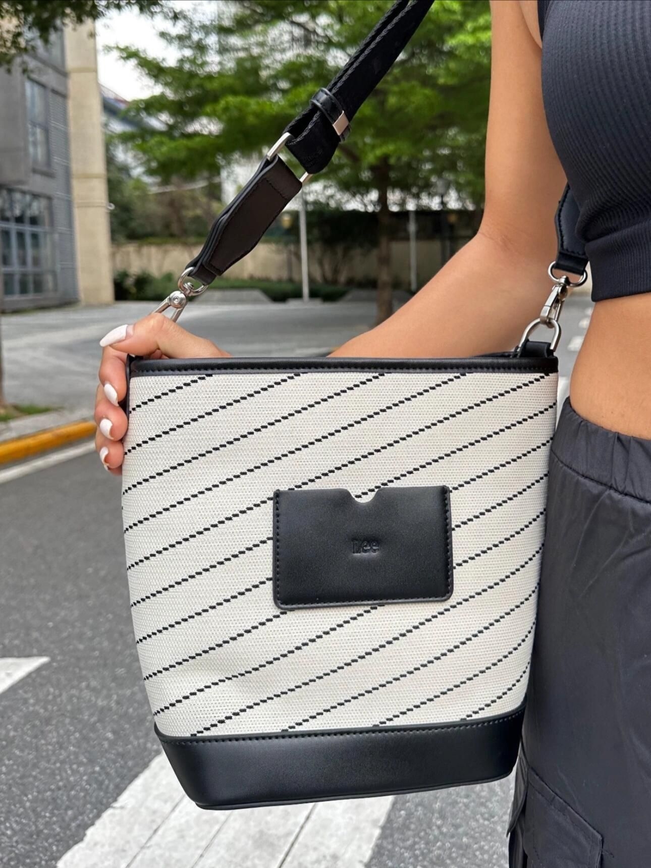 休闲打扮是我我日常通勤穿搭 就很喜欢随性松弛感的感觉 夏日包包我还是喜欢用轻便的! 全皮的包包太重了, city walk或者上班,里面东西放多了背着特别重 推荐这只 Lee 帆布拼皮水桶包 自重很轻🪶质感满满💯 不经意间流露出休闲的气质👍 黑白🐼的设计很好搭配任何服装, 而且特别能装, 平时经常需要带的雨伞☂️水壶啊什么的 都可以装得进去! 实用性满满