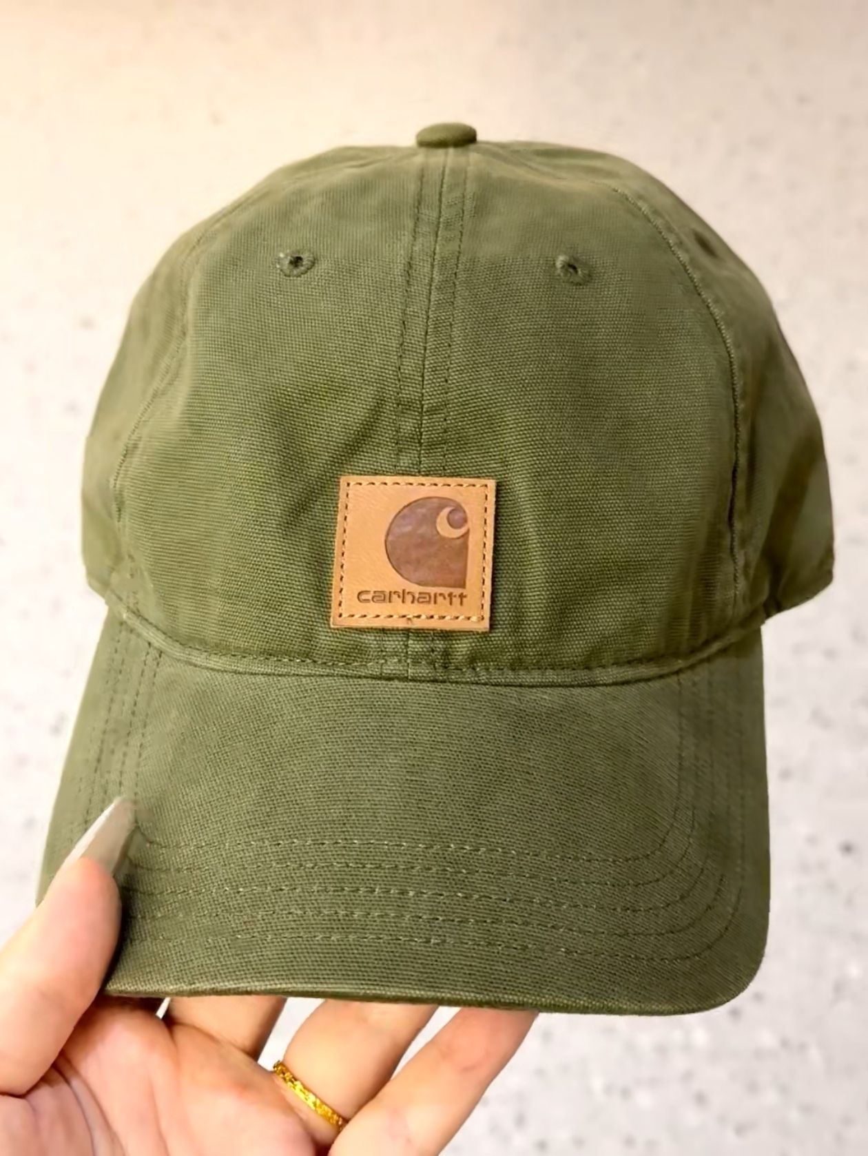 carhartt刺绣暗绿色帽子尊嘟好好看 暗绿色非常耐看 帽子很轻,带上不会不舒服 帽檐也不压眼镜 大头围友好!