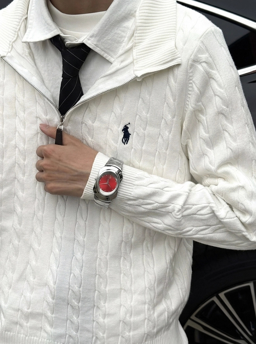 我选的这款腕间配饰,红表盘配钢表带,复古感拉满,搭休闲装、通勤装都合适。精钢表带贴着手腕挺舒服,50米防水日常洗手不用摘。就是表径偏大,手腕细的朋友得先试试。我日常通勤、周末出街都戴着,挺省心的😎