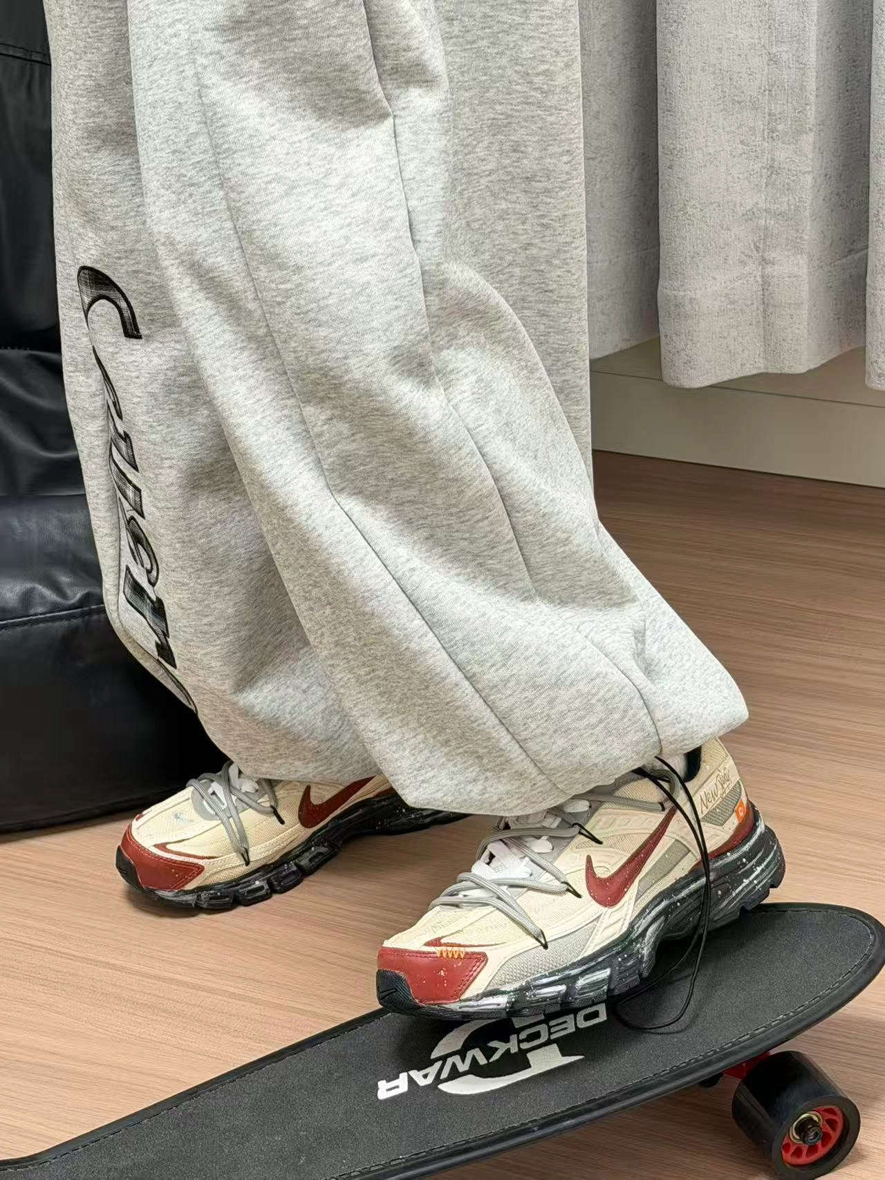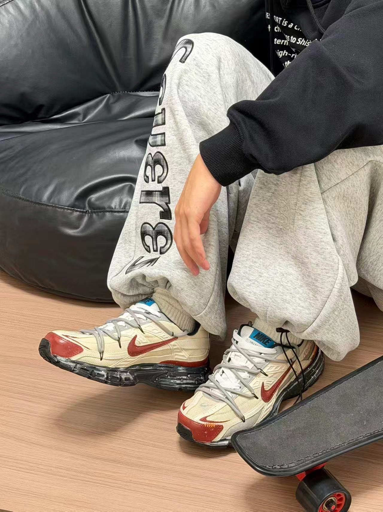 我最近又双叒叕挖到宝了! 介双新年限定的Nike新鞋, 配色太有设计了吧! 直接搭配我的浅灰色运动裤, 休闲又时髦,不愧是天菜!😍 这个鞋子不仅颜值能打, 上脚还特别舒适, 缓震效果尊嘟好, 走再久都不会累!