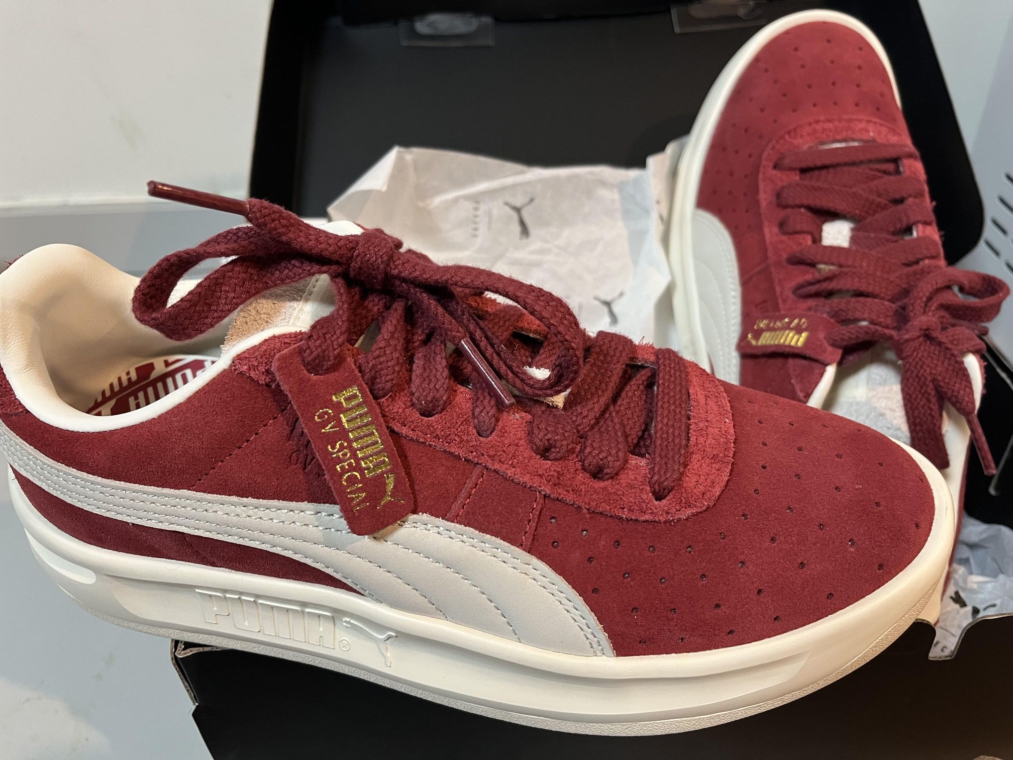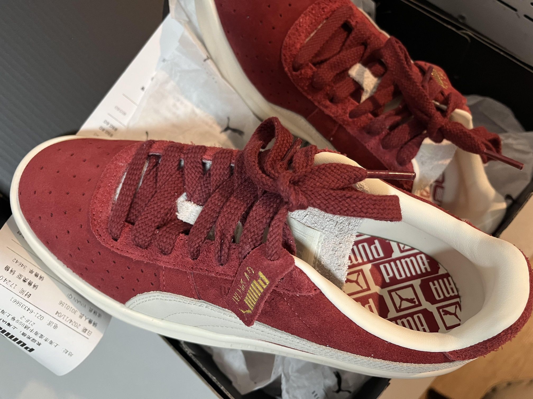🍷PUMA Park Luna SD板鞋,酒红麂皮+米白皮革拼接,复古又简约,低帮设计超百搭!橡胶鞋底防滑耐磨,日常穿搭或轻运动都OK✨。鞋舌和鞋带细节很有质感,舒适又时髦,秋冬季节搭牛仔裤、休闲裤都很出彩,轻松打造复古街头风👟。
