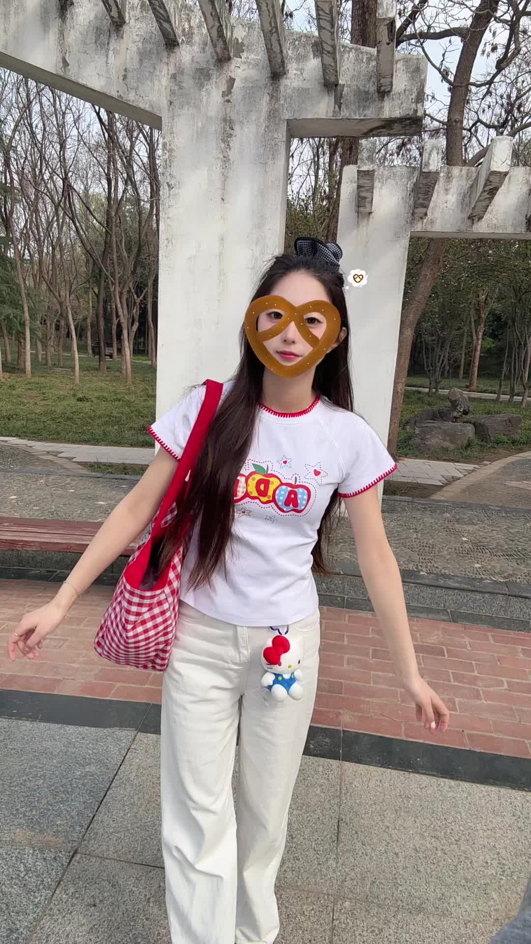 白红搭配短袖➕白色牛仔裤 搭配上红色条纹🎒包包 简直不要太夏天