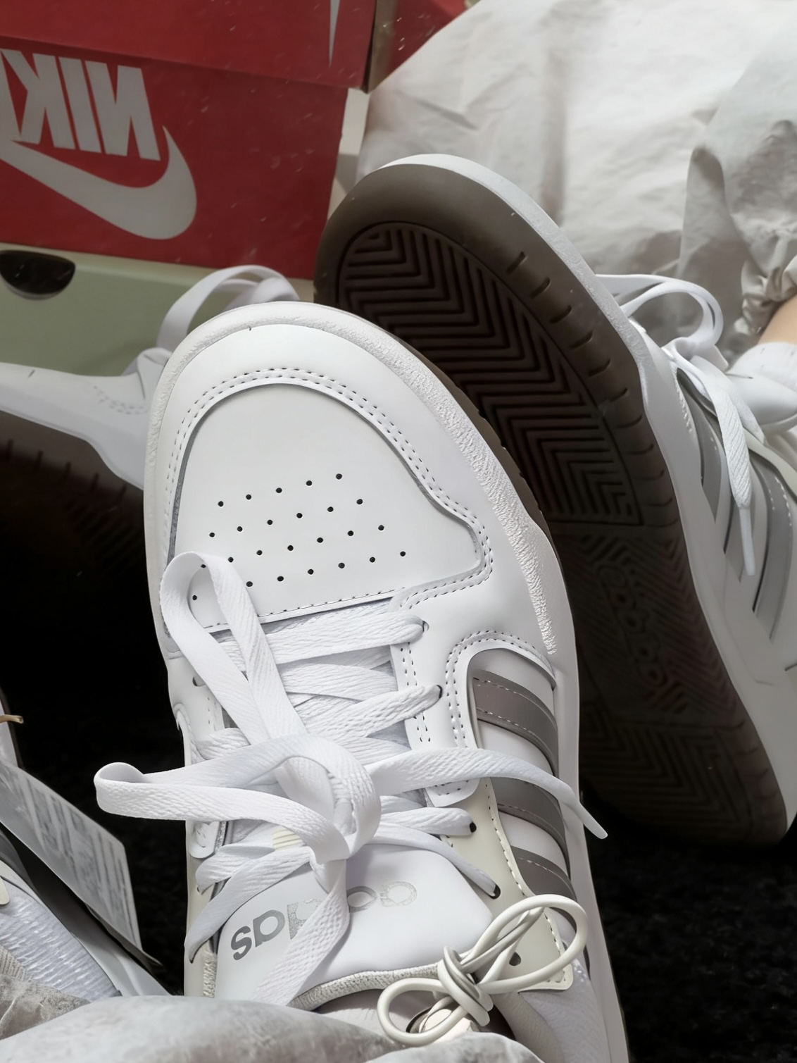只能说阿迪的设计师真nb…… 这经典款的都穿不腻耶 颜色是百搭的那种板鞋🤓 初春很合适嘿嘿嘿