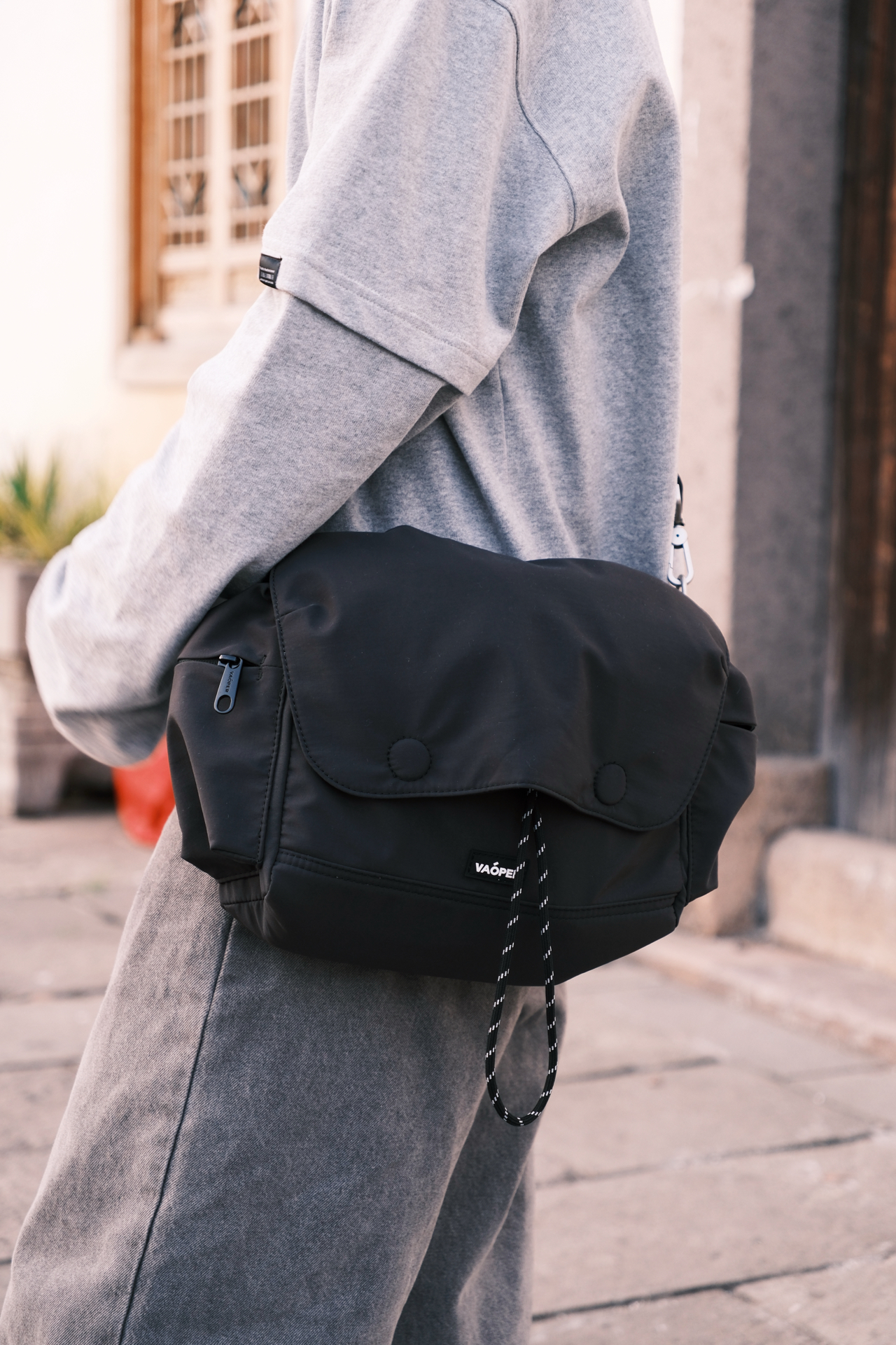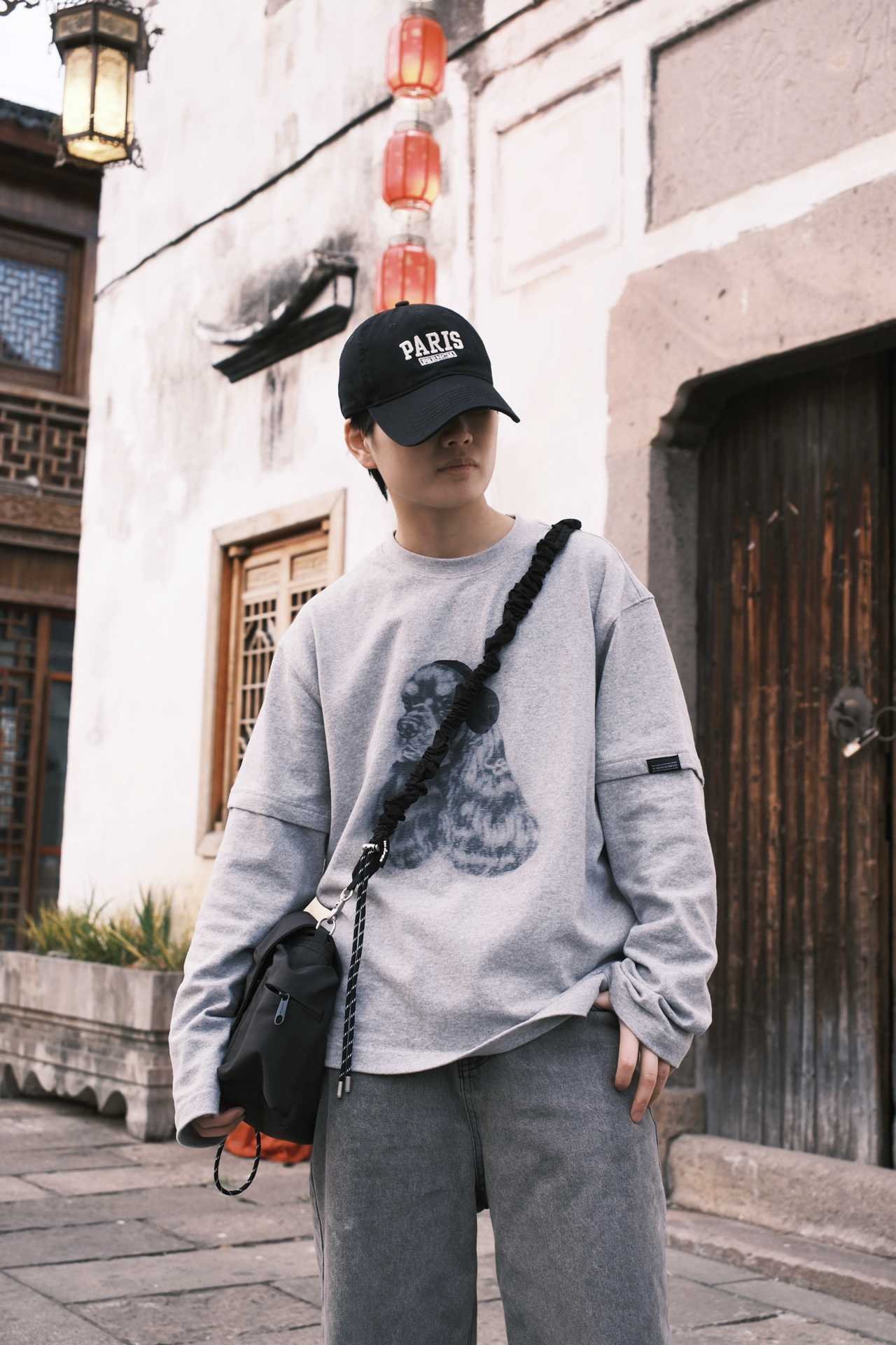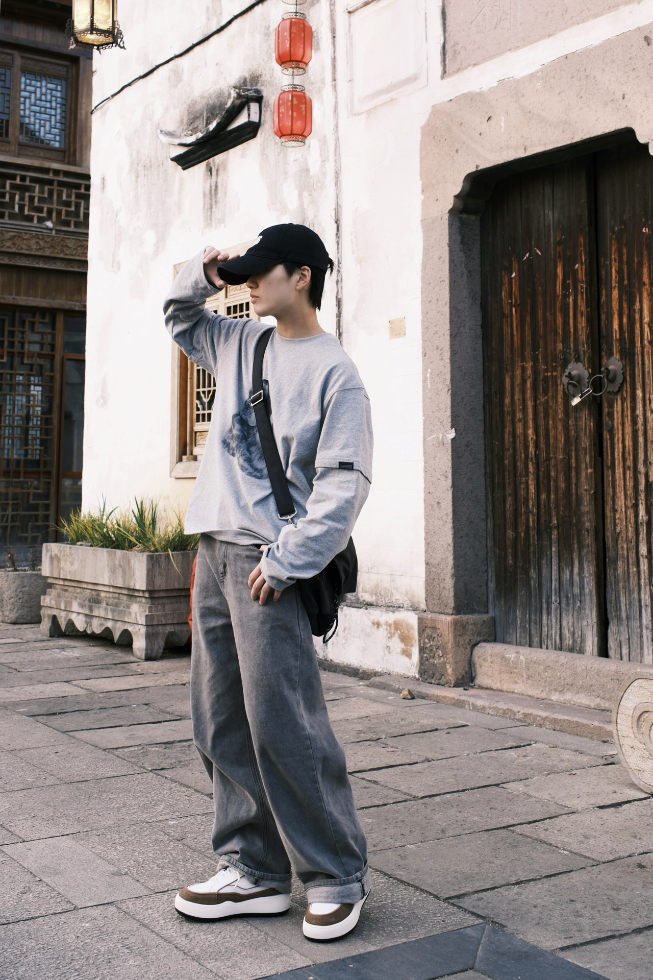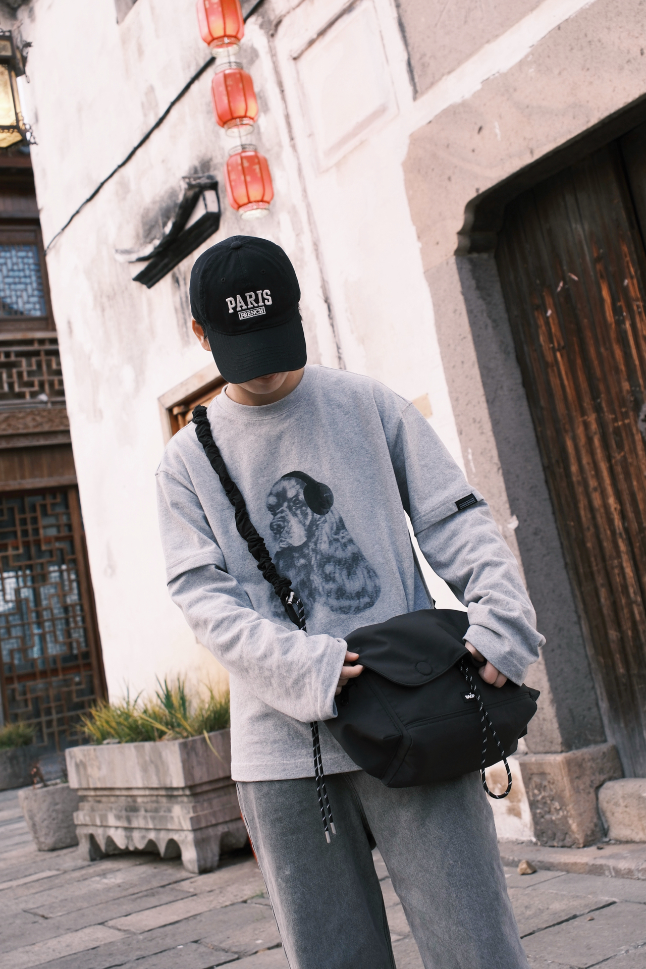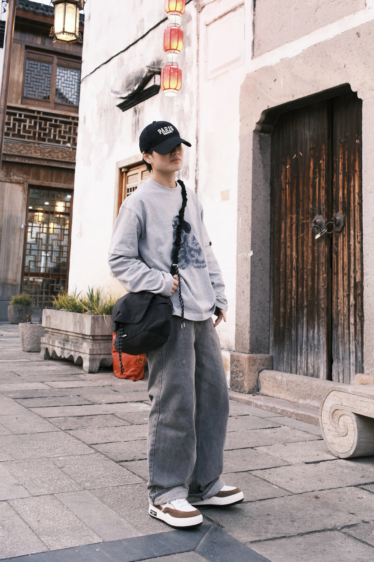 ☝🏻一个周末的午后 踩着碎光钻进江南的老巷 不想穿得太刻意🙅 就用一身灰调的松弛感🩶 浅灰的假两件长袖带小狗印花 🤔斜挎包是这次出门的默契搭档 黑色尼龙面料摸起来扎实又轻便 翻盖设计带着日系简约感 两款肩带自由选择搭配👻 板鞋是整套穿搭的点睛之笔 白棕拼色刚好和灰调衣裤形成对比 麂皮与皮革的拼接让质感升级 厚底设计悄悄增高了几厘米 其实穿搭从来不是为了迎合谁 而是在日常里找到自己最舒服状态 👜:...